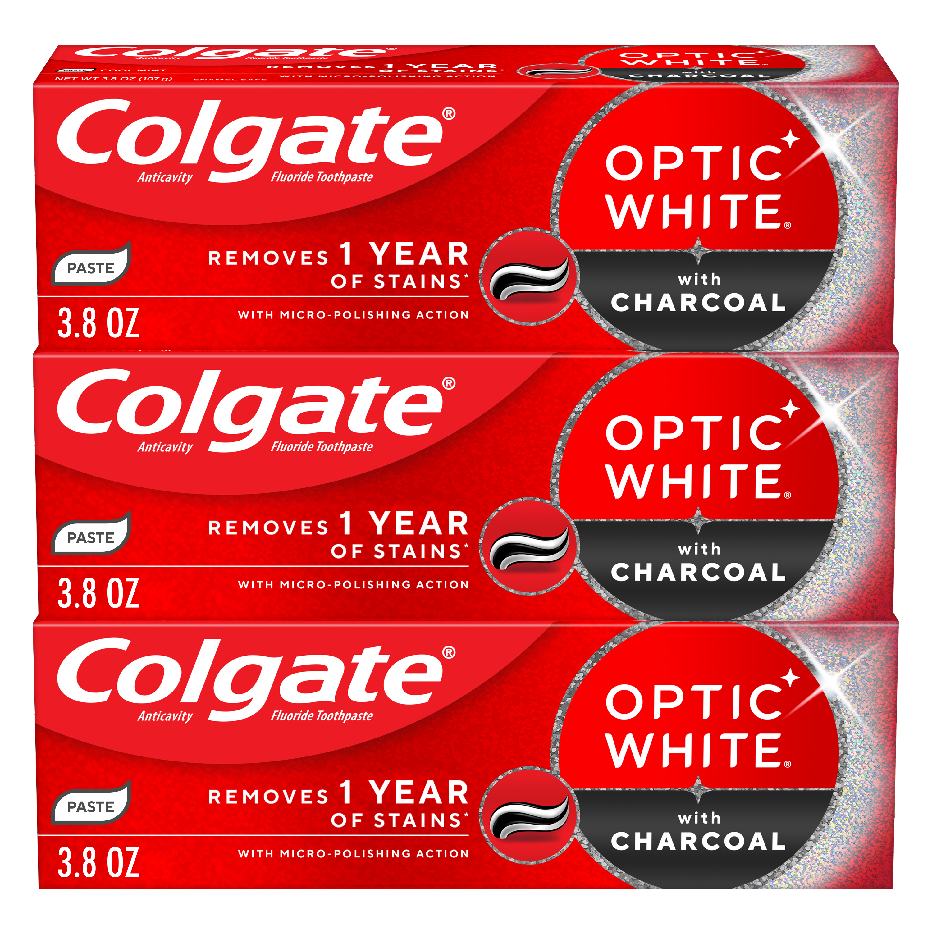 Colgate Optic White with Charcoal Teeth Whitening Toothpaste, Anticavity Toothpaste with Fluoride, Cool Mint Flavor, 3.8 OZ, 3 Pack