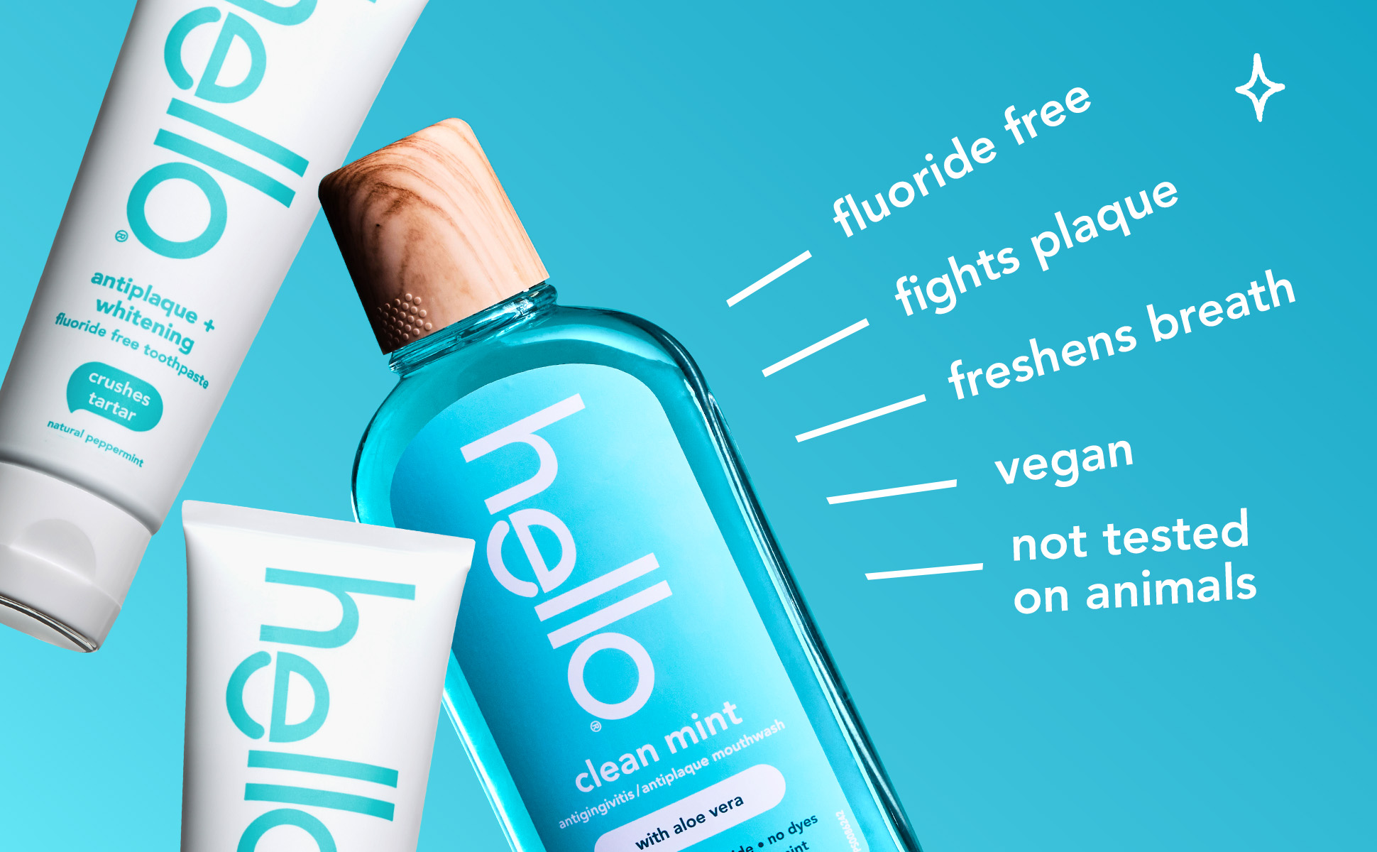 hello Antiplaque Whitening Fluoride Free Toothpastes and Clean Mint Alcohol Free Mouthwash Bundle Pack, Whitening Toothpaste and Antigingivitis Gum Mouthwash Pack, No Alcohol for Zero Burning