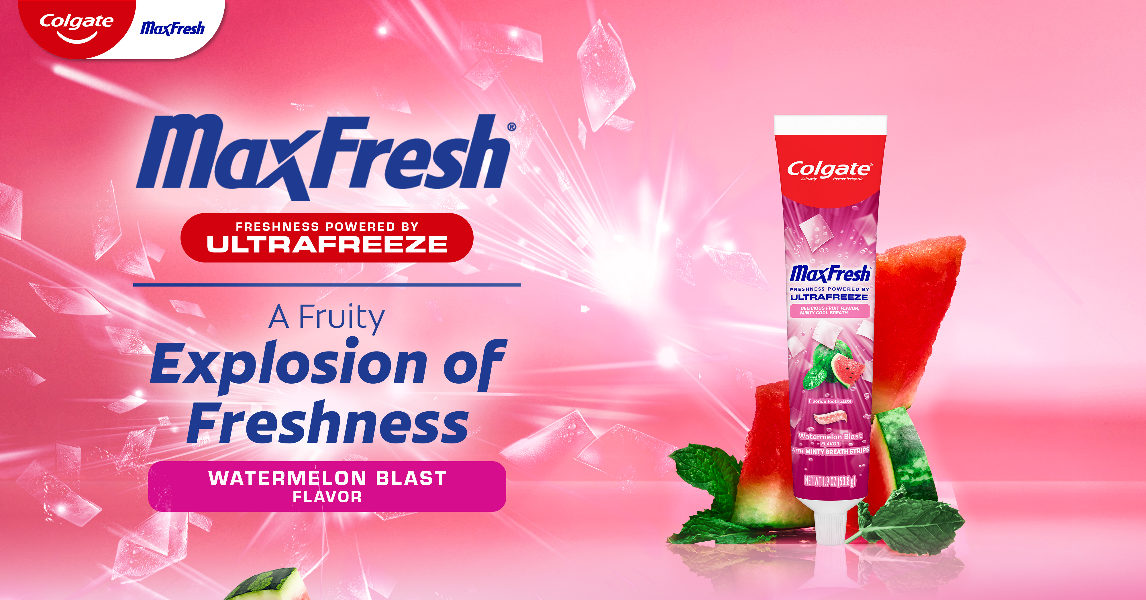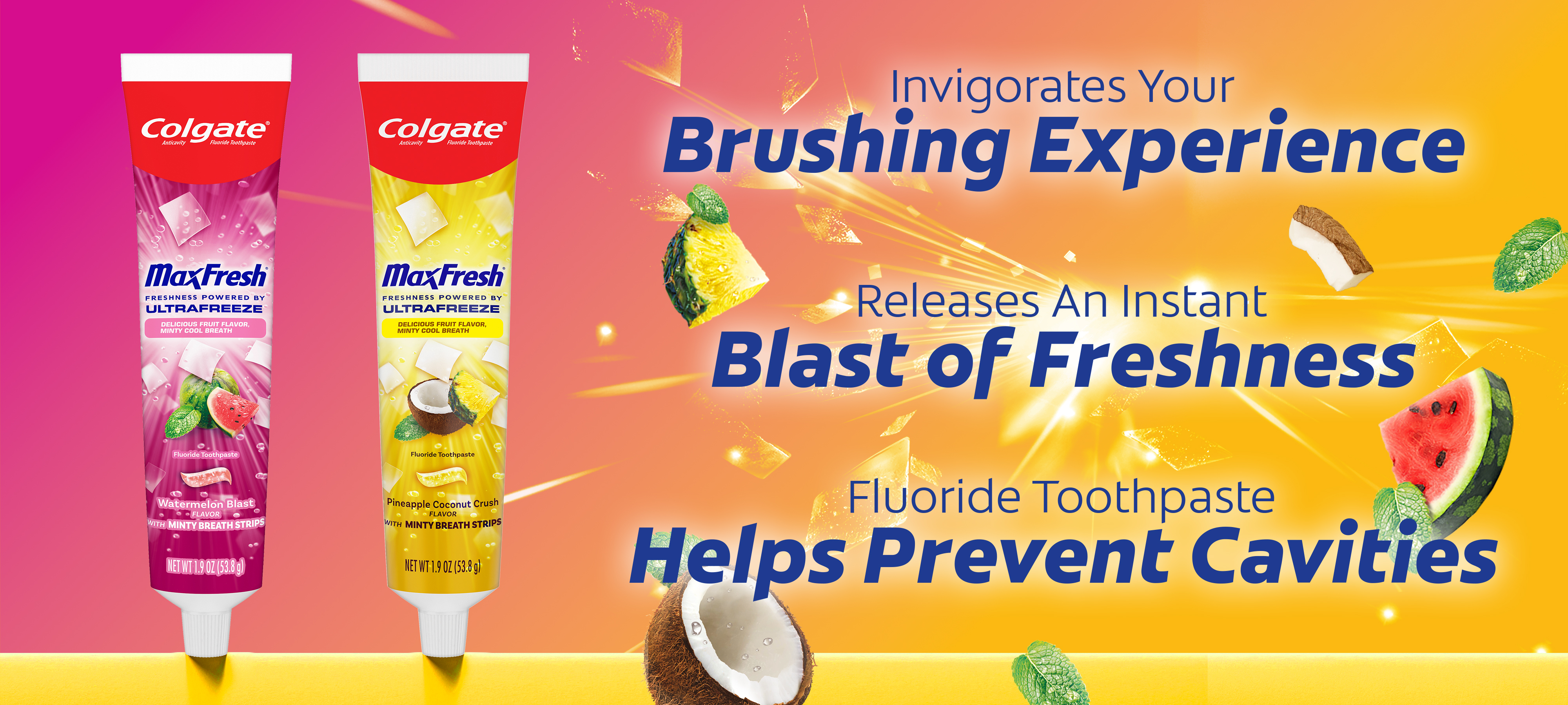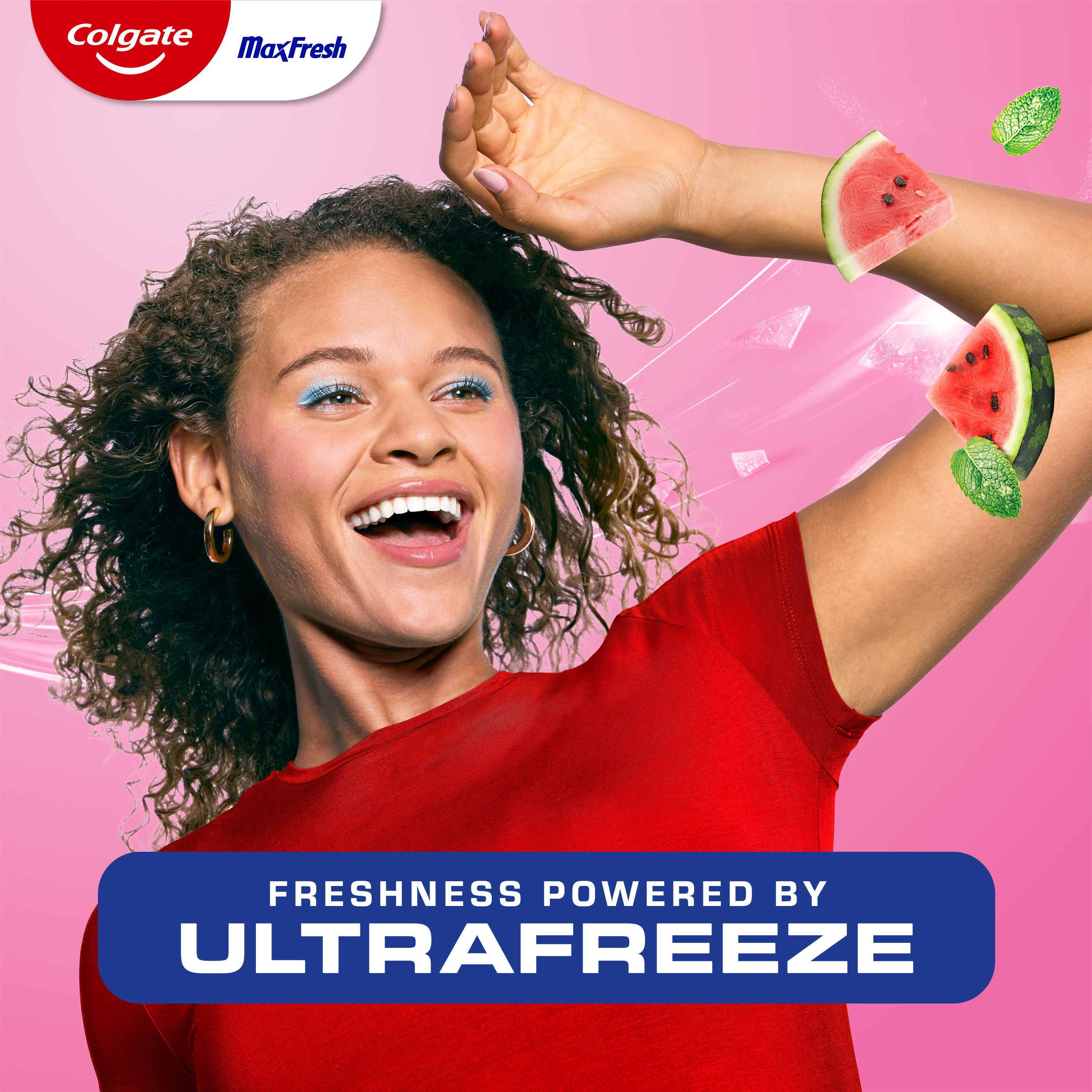SKU 61058478 Consumer Unit - GTIN 00827854031383 Case - GTIN 10827854031380 Product Category Oral Care Product Sub Category Toothpaste Product Equity (Brand) Colgate Product Sub Brand Colgate Max Fresh TP Product Title Colgate Max Fresh Anticavity Travel Size Toothpaste, Watermelon Blast with Mint, 1.9 oz Product Description Release an instant blast of fruit-flavored freshness with Colgate Max Fresh Anticavity Fresh Breath Toothpaste in Watermelon Blast with Mint. This travel size toothpaste delivers a refreshing blend of tropical fruit and mint flavor every time you brush during your travels. Infuse your brushing routine with delicious juicy watermelon flavor and minty freshness with Colgate Max Fresh Toothpaste. Powered by Ultrafreeze, this mint toothpaste provides delicious fruit flavor and minty cool breath. This fruit-flavored watermelon toothpaste is formulated with hundreds of mini breath strips and releases an instant blast of freshness every time you brush. Invigorate your brushing experience with this deliciously fruity and refreshingly minty tube of Colgate Max Fresh Toothpaste. Colgate Max Fresh Toothpaste is more than just an adult toothpaste for bad breath. It is also a fluoride toothpaste and helps prevent cavities. Packed with hundreds of mini breath strips, Colgate Max Fresh Watermelon Blast Toothpaste offers delicious fruit flavor and a refreshing cool. Get long-lasting fresh breath with Colgate Max Fresh Toothpaste. eCommerce Copy- Long Description Release an instant blast of fruit-flavored freshness with Colgate Max Fresh Anticavity Fluoride Toothpaste in Watermelon Blast with Mint. This fresh breath toothpaste delivers a refreshing blend of fruit and mint flavor every time you brush. Enjoy the vibrant fruity flavor of juicy watermelon and infuse your brushing routine with delicious fruit flavor and minty freshness with this anticavity toothpaste. Invigorate your brushing experience with this deliciously fruity and refreshingly minty tube of Colgate Max Fresh Toothpaste. Powered by Ultrafreeze, this cooling mint toothpaste offers a refreshingly cool taste that leaves your breath feeling minty fresh. The fruit-flavored watermelon toothpaste is formulated with hundreds of mini breath strips and releases an instant blast of freshness every time you brush. Colgate Max Fresh cavity protection toothpaste is an adult toothpaste for bad breath. It is a fluoride toothpaste that helps prevent cavities and is packed with hundreds of mini breath strips. Colgate Max Fresh Watermelon Blast Toothpaste offers delicious fruit flavor and a refreshing cool. The fluoride-based gluten free toothpaste formula helps fight cavities. Get long-lasting fresh breath with Colgate Max Fresh Toothpaste. Bullet 1 Includes one (1) 1.9 oz tube of Colgate Max Fresh Anticavity Fresh Breath Toothpaste, Travel Size Toothpaste for Adults in Watermelon Blast with Mint Bullet 2 This travel size fresh breath toothpaste delivers a refreshing blend of juicy watermelon flavor with a hint of mint Bullet 3 Powered by Ultrafreeze, Colgate Max Fresh Toothpaste offers a refreshingly cool taste that leaves your breath feeling minty fresh Bullet 4 More than just an adult toothpaste for bad breath, Colgate Max Fresh Toothpaste uses a fluoride-based formula to fight cavities Bullet 5 This fruity flavored mint toothpaste, with hundreds of mini breath strips, releases an instant blast of freshness every time you brush Bullet 6 Experience a fruity explosion of minty and fruity freshness when you brush with Colgate Max Fresh Watermelon Blast Adult Toothpaste Bullet 7 Refresh your daily oral care routine and get long-lasting fresh breath with Colgate Max Fresh Toothpaste Active Ingredients Sodium Fluoride 0.24% (0.14% w/v fluoride ion)