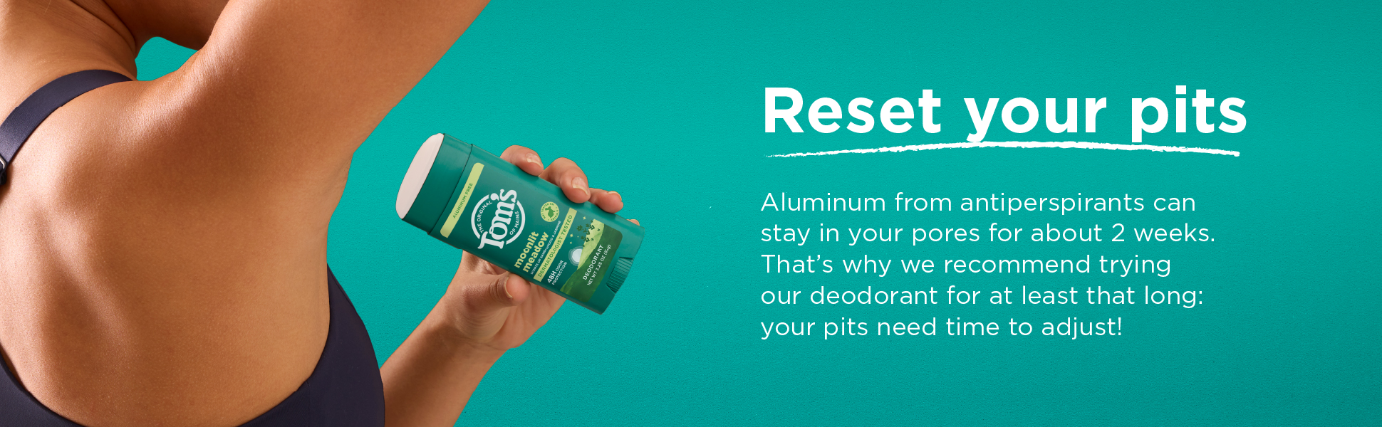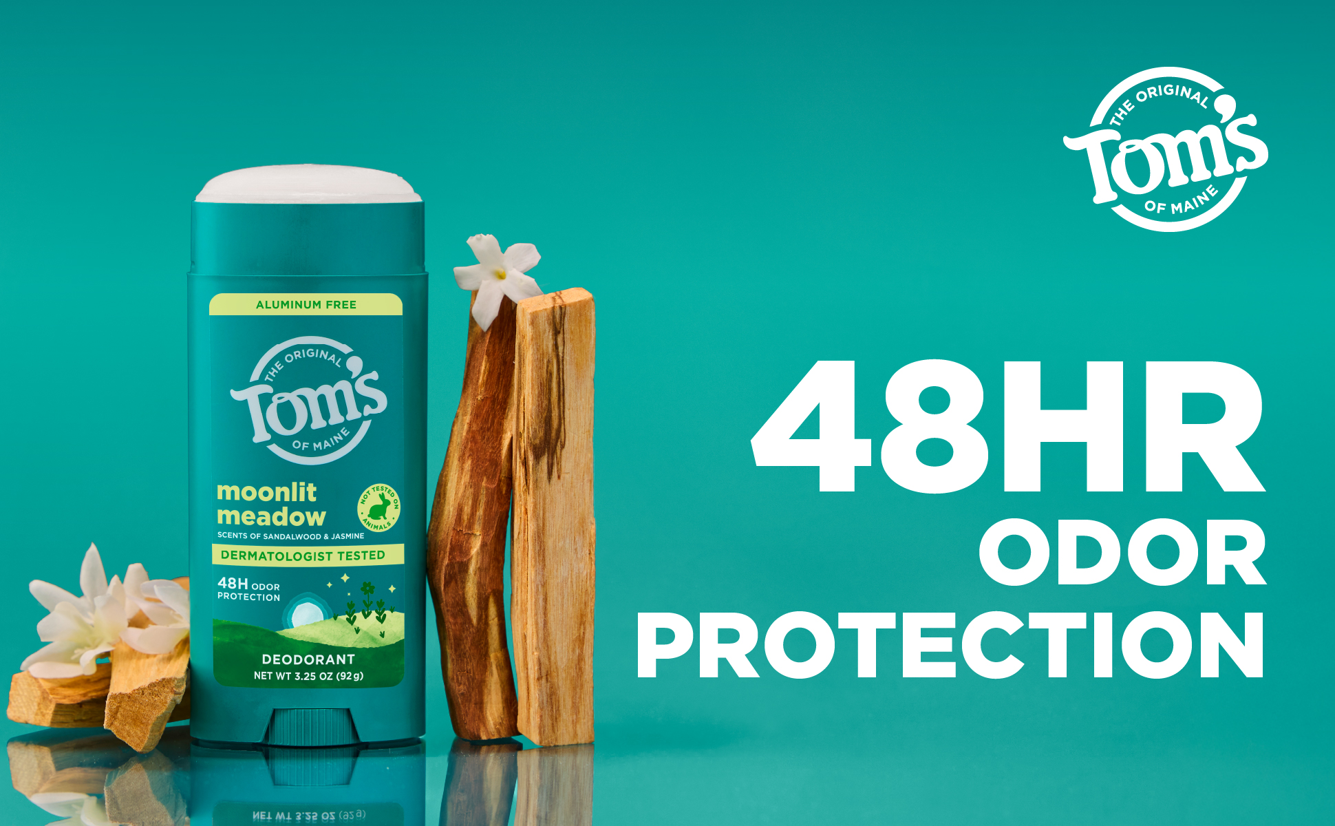 SKU 61058606 Consumer Unit - GTIN 00827854031475 Case - GTIN 10827854031472 Product Category Personal Care Product Sub Category AP > Deo Product Equity (Brand) Tom's of Maine Product Sub Brand Tom's AP/Deo Product Title Tom’s of Maine Moonlight Meadow Natural Deodorant for Men and Women, Aluminum Free, No Artificial Fragrances, Dyes, or Preservatives, Baking Soda Free, 48-Hour Odor Protection, 3.25 oz (2 Pack) Product Description Tom’s of Maine Moonlight Meadow Deodorant is crafted for men and women seeking natural odor protection. This dermatologist tested, aluminum free deodorant uses naturally sourced and derived moisture locking ingredients for 48-hour odor protection. The formula is vegan, cruelty free, baking soda free, and paraben free, with no artificial fragrances, dyes, or preservatives; making it perfect for everyday use. Our stick deodorant features smooth sandalwood with jasmine and a slightly sweet vanilla base. Aluminum from antiperspirants can stay in your pores for about 2 weeks. That’s why we recommend trying our natural deodorant for at least that long—your pits need time to adjust! Count on long-lasting protection for active lifestyles and everyday routines. This formula is designed for a smooth glide and goes on clear and stays clear. Keep this trusted personal care product in your gym bag, travel bag, or bathroom. The 3.25 oz container is made from 100% recycled plastic*. Choose Tom’s of Maine for freshness and confidence every day, the natural way. *excluding label eCommerce Copy- Long Description Tom’s of Maine Moonlight Meadow Deodorant is crafted for men and women seeking natural odor protection. This dermatologist tested, aluminum free deodorant uses naturally sourced and derived moisture locking ingredients for 48-hour odor protection. The formula is vegan, cruelty free, baking soda free, and paraben free, with no artificial fragrances, dyes, or preservatives; making it perfect for everyday use. made with no artificial fragrances, our stick deodorant features smooth sandalwood with jasmine and a slightly sweet vanilla base. Aluminum from antiperspirants can stay in your pores for about 2 weeks. That’s why we recommend trying our natural deodorant for at least that long—your pits need time to adjust! Count on long-lasting protection for active lifestyles and everyday routines. This formula is designed for a smooth glide and goes on clear and stays clear. Keep this trusted personal care product in your gym bag, travel bag, or bathroom. The 3.25 oz container is made from 100% recycled plastic*. Choose Tom’s of Maine for freshness and confidence every day, the natural way. *excluding label Bullet 1 Includes two 3.25 oz sticks of Tom’s of Maine Moonlight Meadow Deodorant; featuring smooth sandalwood with jasmine and a slightly sweet vanilla base Bullet 2 Our underarm deodorant for everyone offers 48-hour odor protection, keeping you dry throughout the day Bullet 3 Goes on clear and stays clear with a formula designed for a smooth glide that keeps you confident all day Bullet 4 Tom’s deodorant is aluminum-free, made without artificial fragrances, dyes, preservatives, or baking soda, and is not tested on animals Bullet 5 We’re doing our part with a container made entirely from recycled plastic* Bullet 6 This stick deodorant is designed for women, men, teens, and anyone seeking gentle care Bullet 7 Keep this trusted personal care product in your gym bag, travel bag, or bathroom for on-the-go freshness Amazon RPC B0G7M1VJWV AMZ URL https://www.amazon.com/dp/B0G7M1VJWV