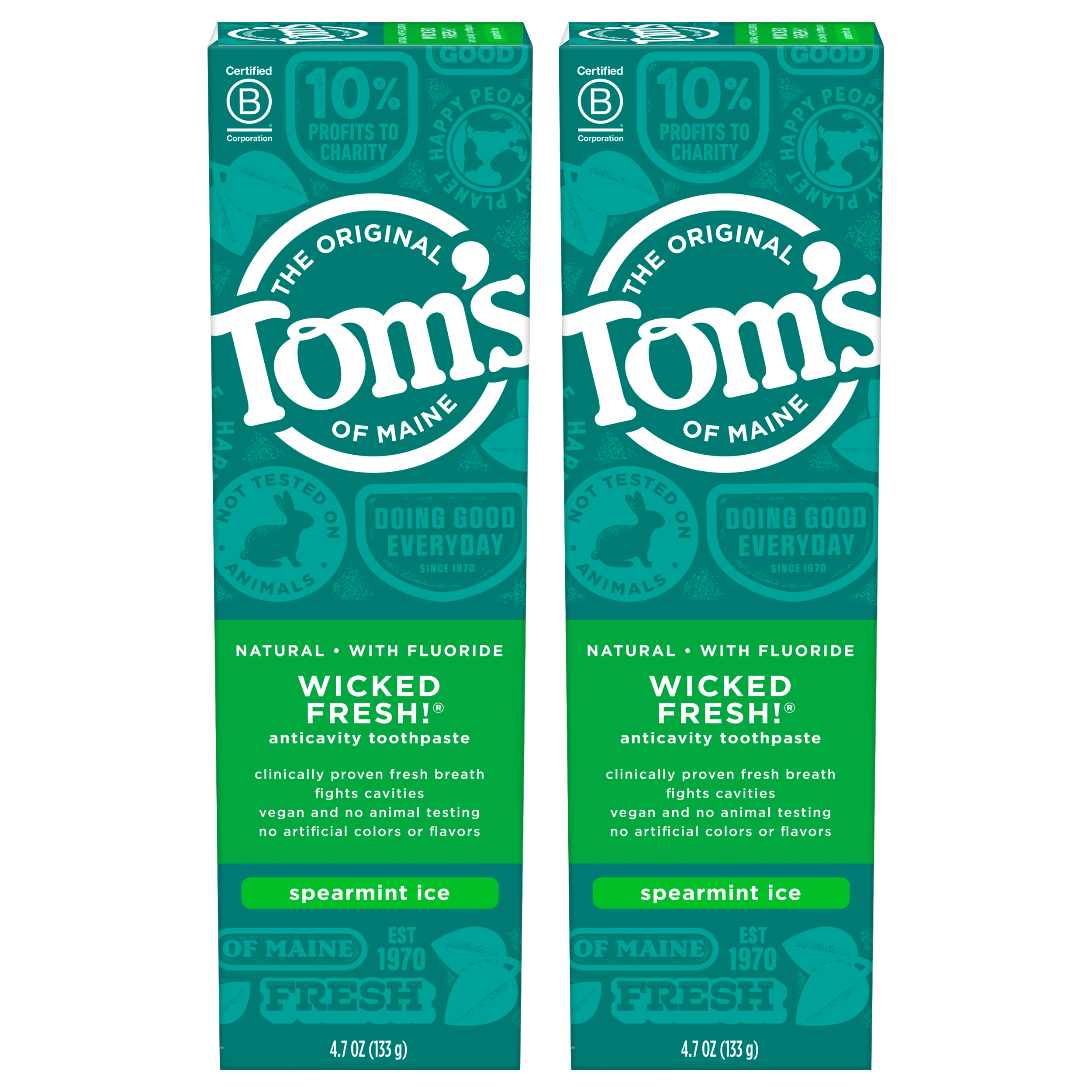 SKU 683373 Consumer Unit - GTIN 00077326833735 Case - GTIN 10077326833732 Product Category Oral Care Product Sub Category Toothpaste Product Equity (Brand) Tom's of Maine Product Sub Brand Tom's Wicked Fresh TP Product Title Tom's of Maine Natural Wicked Fresh! Fluoride Toothpaste, Spearmint, 4.7 oz. 2-Pack Product Description Longer-lasting fresh breath is only a brush away with Tom's of Maine Wicked Fresh! Fluoride Toothpaste. This natural toothpaste contains licorice root extract to help block bad breath germs from producing odor. The fluoride helps strengthen enamel and fight cavities to promote a healthier smile. Finish it all off with the cool, natural taste of Spearmint. Order Tom's of Maine Toothpaste, and try their other natural dental care products. Tom's of Maine products use only ingredients that meet its stewardship standards for natural, sustainable and responsible, helping empower families to live more naturally. Tom's of Maine is a Certified B Corp and meets the highest standards of social and environmental performance, as well as public transparency. The company donates 1% of profits to charities committed to children's health, education and the environment. Thank you for supporting Tom's of Maine. eCommerce Copy- Long Description Longer-lasting fresh breath is only a brush away with Tom's of Maine Wicked Fresh! Fluoride Toothpaste. This natural toothpaste contains licorice root extract to help block bad breath germs from producing odor. The fluoride helps strengthen enamel and fight cavities to promote a healthier smile. Finish it all off with the cool, natural taste of Spearmint. Order Tom's of Maine Toothpaste, and try their other natural dental care products. Tom's of Maine products use only ingredients that meet its stewardship standards for natural, sustainable and responsible, helping empower families to live more naturally. Tom's of Maine is a Certified B Corp and meets the highest standards of social and environmental performance, as well as public transparency. The company donates 10% of profits to charities committed to children's health, education and the environment. Thank you for supporting Tom's of Maine. Bullet 1 WHAT YOU'LL GET: Two 4.7-ounce tubes of Tom's of Maine Wicked Fresh! Natural Toothpaste with Fluoride in Spearmint Flavor Bullet 2 FRESHENS BREATH: Licorice root extract helps block bad breath germs for fresh breath Bullet 3 CAVITY PROTECTION: Fluoride toothpaste cleans and strengthens teeth to promote a healthier mouth Bullet 4 SMILE WITH TOM'S: Clinically proven to freshen breath and fight cavities Bullet 5 NATURAL & RESPONSIBLE: Contains no artificial sweeteners, preservatives, colors or flavors and is not tested on animals Active Ingredients Sodium monofluorophosphate 0.76% (0.13% w / v fluoride ion) Amazon RPC B00JUJ1BKU AMZ URL https://www.amazon.com/dp/B00JUJ1BKU