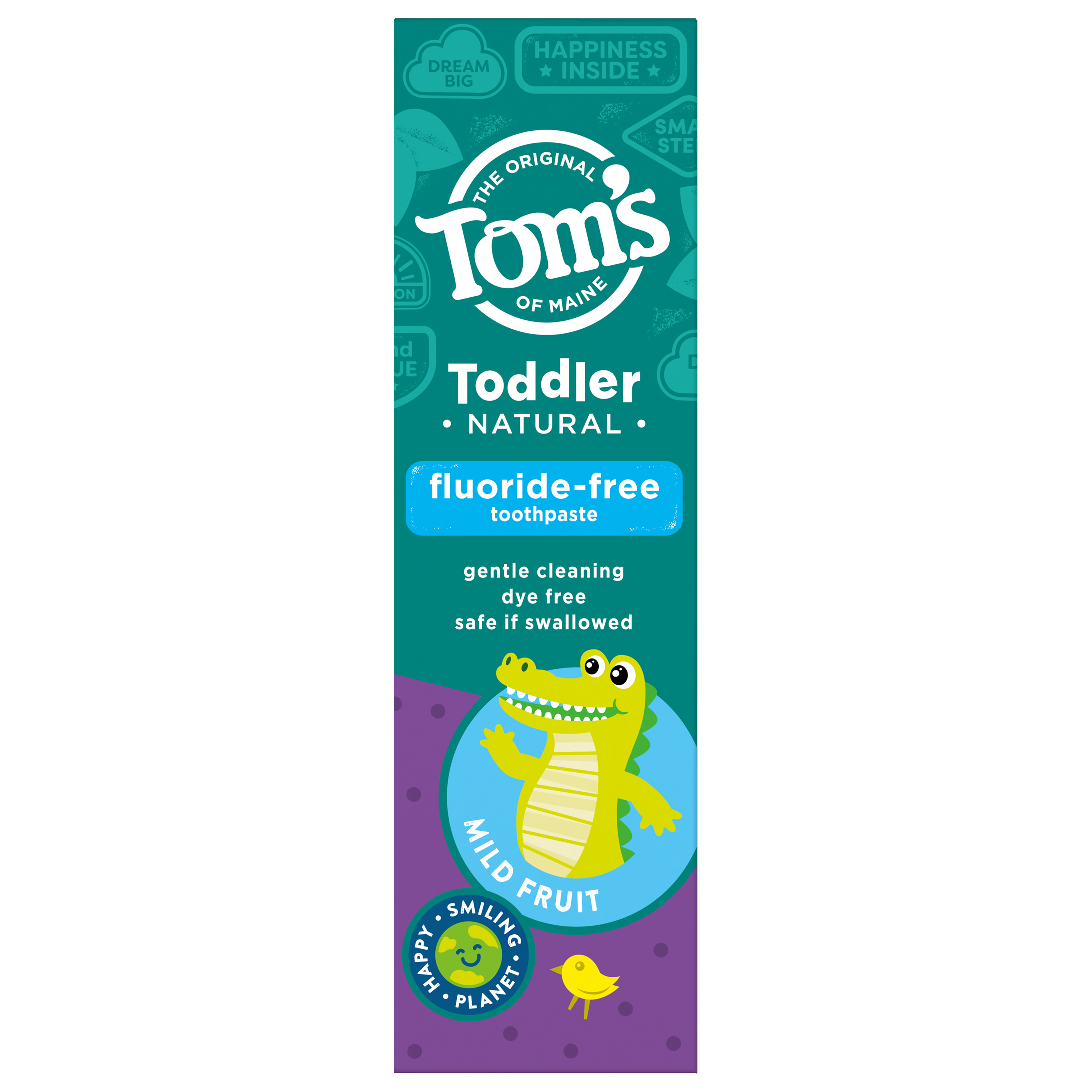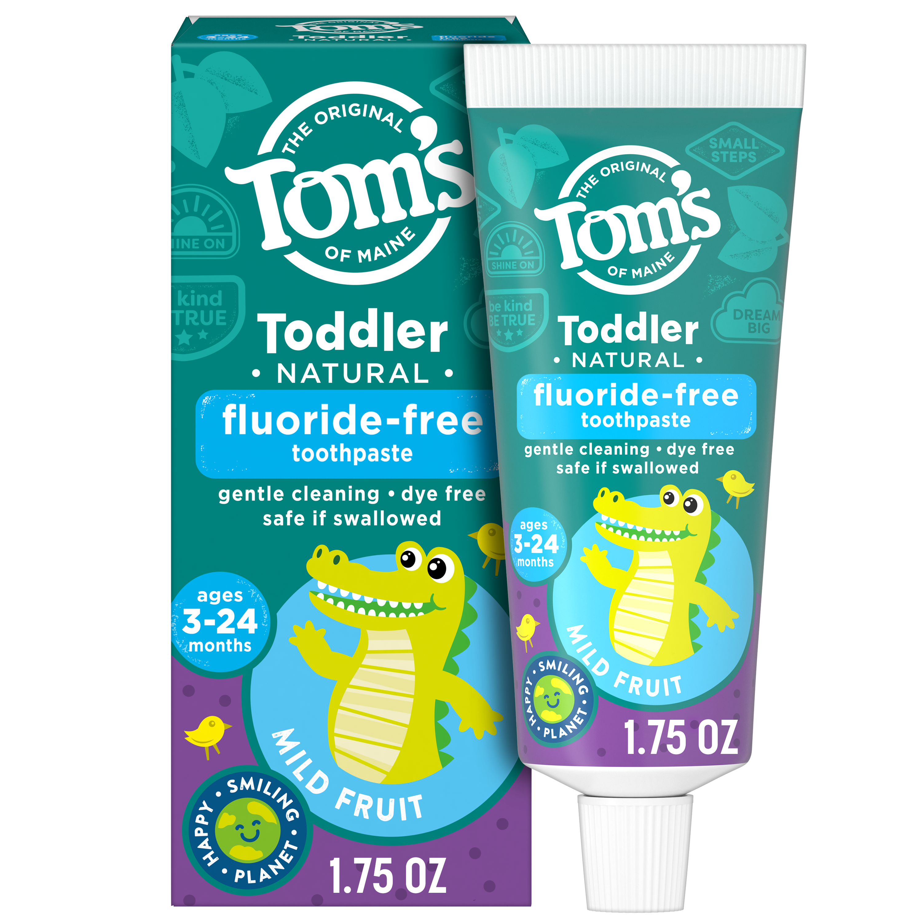 SKU 683435 Consumer Unit - GTIN 00077326833773 Case - GTIN 00077326834350 Product Category Oral Care Product Sub Category Toothpaste Product Equity (Brand) Tom's of Maine Product Sub Brand Tom's Kids TP Product Title Tom’s of Maine Fluoride Free Toddler Training Toothpaste, Mild Fruit Gel, 1.75 oz Product Description Introduce your little one to good brushing habits with the Tom’s of Maine Fluoride Free Toddler Training Toothpaste. Tom’s of Maine Fluoride Free Training Toothpaste for Toddlers is designed for children ages 3 months to 24 months and gently cleans your little one’s teeth without using fluoride. Plus, it’s a safe if swallowed toddler toothpaste which means less worries if more toothpaste ends up in their tummy than the sink. When it comes to oral hygiene for kids, it’s important to encourage them to begin brushing early and frequently. Tom’s of Maine Mild Fruit Gel Toddler Toothpaste has a great tasting mild fruit flavor that toddlers will love brushing with again and again. In addition to the great taste, the clear fluoride free kids toothpaste gel is safe if swallowed and comes with an easy to dispense, no-mess top to help make brushing even easier for kids ages 3 months to 2 years old. With Tom’s of Maine Fluoride Free Toddler Training Toothpaste, you can feel confident knowing your child’s toddler toothpaste contains toothpaste ingredients that are naturally sourced and naturally derived. With no artificial sweeteners, flavors, dyes, or preservatives this kids natural toothpaste is fun for kids to brush with and effective enough for parents. Plus, this Toms training toothpaste is vegan, gluten free, and not tested on animals. eCommerce Copy- Long Description Take gentle care of your favorite little mouth. Tom's of Maine Fluoride-Free Toddler Training Toothpaste is specially formulated for ages 3 to 24 months. The clear gel baby toothpaste gently cleans teeth and gums — and is safe if swallowed. That's a relief! Plus, your toddler will love brushing with the great-tasting Mild Fruit flavor again and again. And when you're done using your toothpaste, you can recycle the tube! Check to be sure that your tube has the blue recycling flag on it, squeeze out as much of the toothpaste from the tube as you can, replace the cap, and place the tube in your recycling bin. At Tom's of Maine, we want to empower families to live more naturally. With more than 50 years experience combining scientific know-how, naturally derived ingredients and a bit of ingenuity, we make products that are good for you and the planet. As a Certified B Corp, we hold ourselves to the highest social and environmental standards. Plus, we're committed to supporting local communities for meaningful change, donating 10% of our profits to charities supporting health, education and the environment. We call this "doing good, for real," and it impacts everything we do. Bullet 1 Includes one (1) 1.75 oz tube of Tom’s of Maine Fluoride Free Toddler Training Toothpaste Bullet 2 This safe if swallowed, fluoride free kids toothpaste gel comes in a Mild Fruit flavor that toddlers will love brushing with again and again Bullet 3 The toddler toothpaste is safe for kids ages 3 months to 2 years old and is free of dyes, artificial sweeteners, flavours, and preservatives Bullet 4 The fluoride free training toothpaste gel formula helps gently clean teeth without using fluoride to help brighten little smiles Bullet 5 Tom’s of Maine Fluoride Free Toddler Training Toothpaste features an easy to dispense, no-mess toothpaste top to help make brushing time even easier Bullet 6 Make brushing time a fun activity for kids with this Mild Fruit flavored kids toothpaste that tastes great Bullet 7 Encourage good brushing habits early on with the Tom’s of Maine Fluoride Free Training Toothpaste for Toddlers Walmart RPC 38688244 Walmart URL (Computed) https://www.walmart.com/ip/a/38688244 Target RPC 15425161 Target URL https://www.target.com/p/a/-/A-15425161