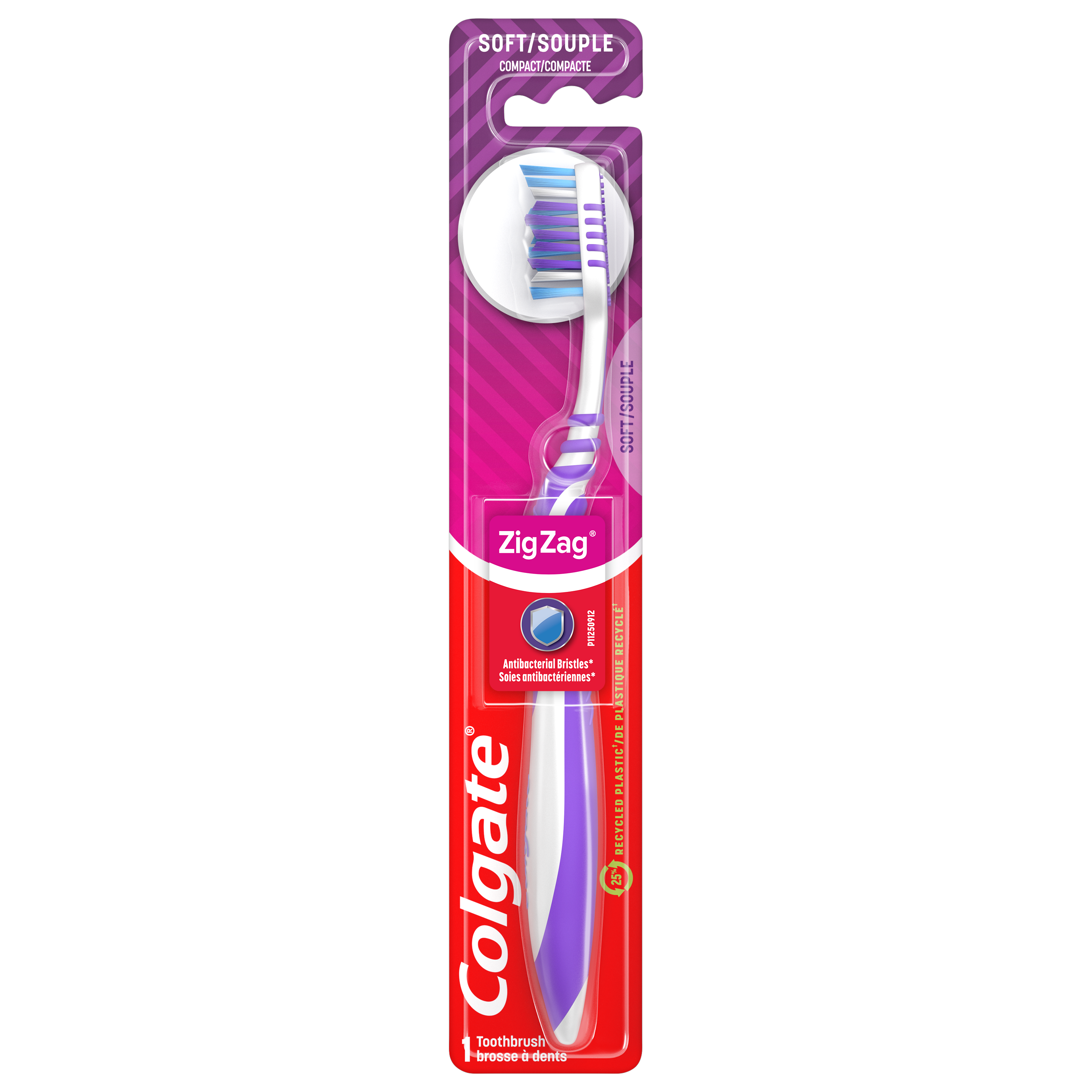 SKU 731059 Consumer Unit - GTIN 09777777777770 Product Category Oral Care Product Sub Category Manual TB Product Equity (Brand) Colgate Product Sub Brand Colgate Zigzag Man TB Product Title Colgate® ZigZag® Toothbrush Product Description Colgate® ZigZag® is a soft toothbrush designed with multi-angle cross bristles to reach deep between teeth for an effective clean that reaches the right places. This toothbrush also has a soft tongue cleaner that gently removes odor-causing bacteria from your tongue and cheeks. Not only comfortable to allow more control during your brushing routine, the Colgate ZigZag Toothbrush is also responsibly made.* Made in a zero true waste, LEED-certified facility, the ZigZag toothbrush features a 25% recycled plastic toothbrush handle and a 1% recycled paperboard backer card. (* To learn more, visit www.colgatepalmolive.com/responsibly-made) eCommerce Copy- Long Description Colgate® ZigZag® is a soft toothbrush designed with multi-angle cross bristles to reach deep between teeth for an effective clean that reaches the right places. This toothbrush also has a soft tongue cleaner that gently removes odor-causing bacteria from your tongue and cheeks. Not only comfortable to allow more control during your brushing routine, the Colgate ZigZag Toothbrush is also responsibly made.* Made in a zero true waste, LEED-certified facility, the ZigZag toothbrush features a 25% recycled plastic toothbrush handle and a 100% recycled paperboard backer card. (* To learn more, visit www.colgatepalmolive.com/responsibly-made) Bullet 1 Soft bristles Bullet 2 Multi-Angle, Cross-Bristle Bullet 3 Compact head Bullet 4 25% recycled plastic handle Bullet 5 Superior bacteria removal (vs. brushing teeth alone with an ordinary toothbrush) Bullet 6 Cross bristles designed to reach deep between teeth for an effective clean Bullet 7 Soft tongue cleaner gently removes odor-causing bacteria