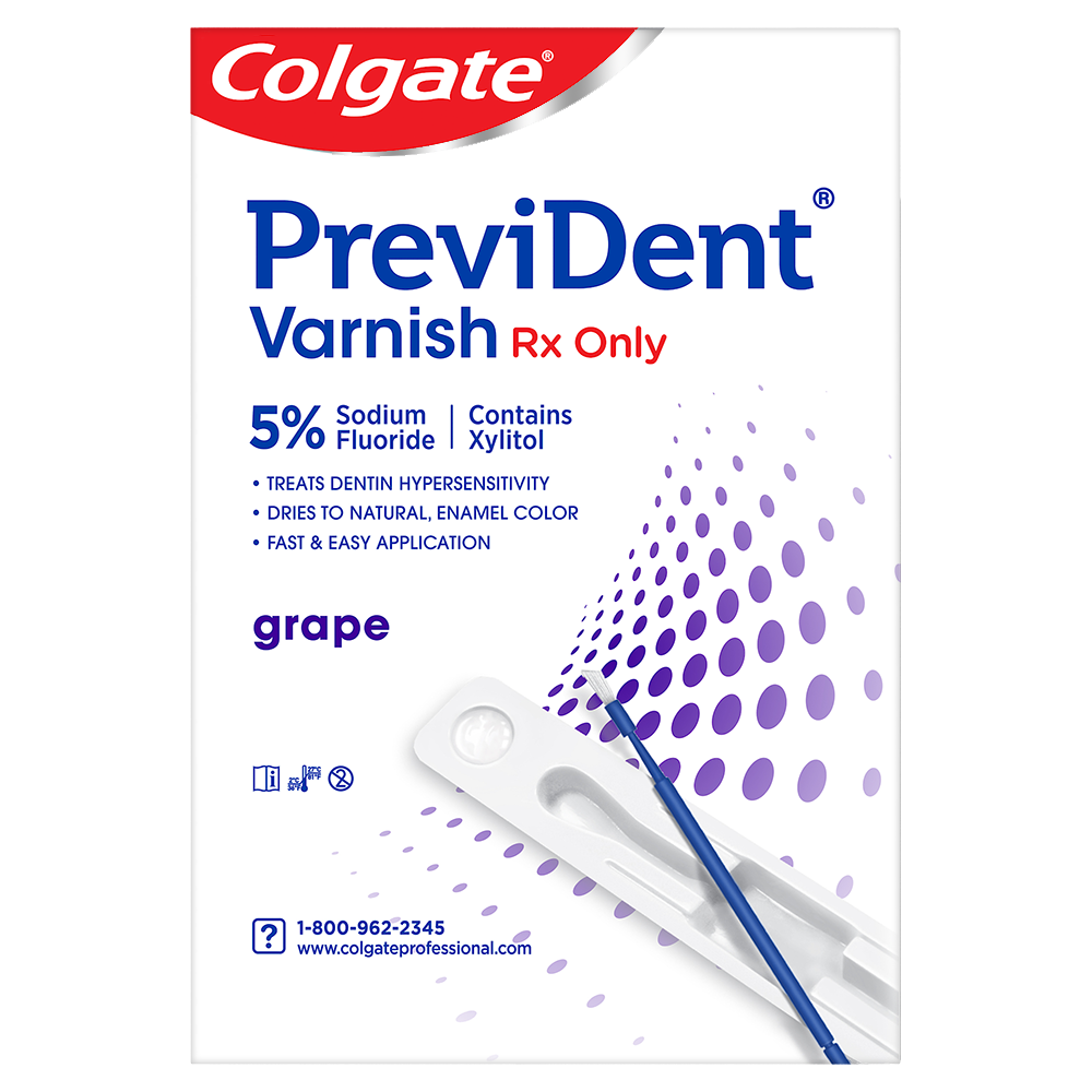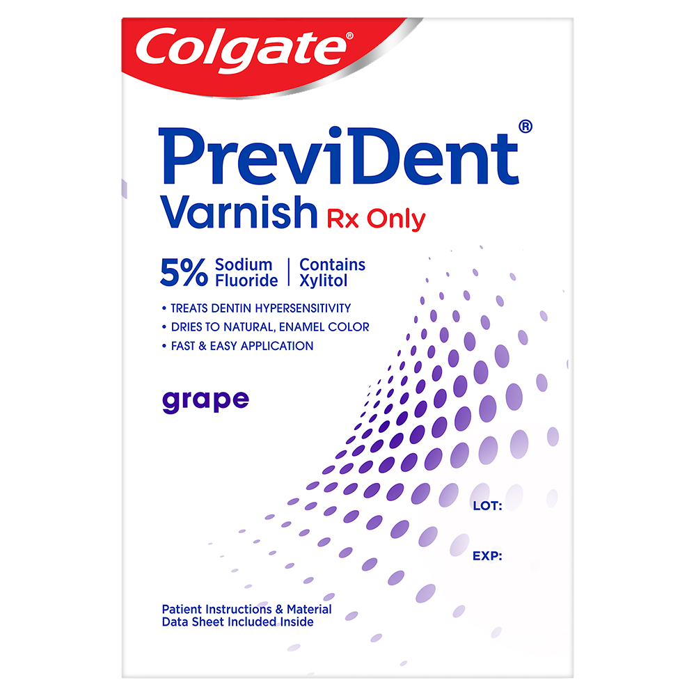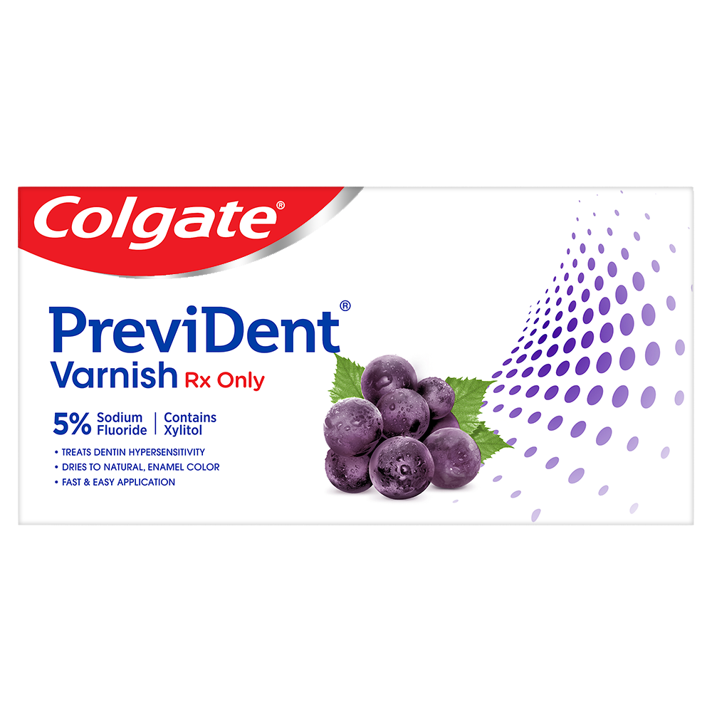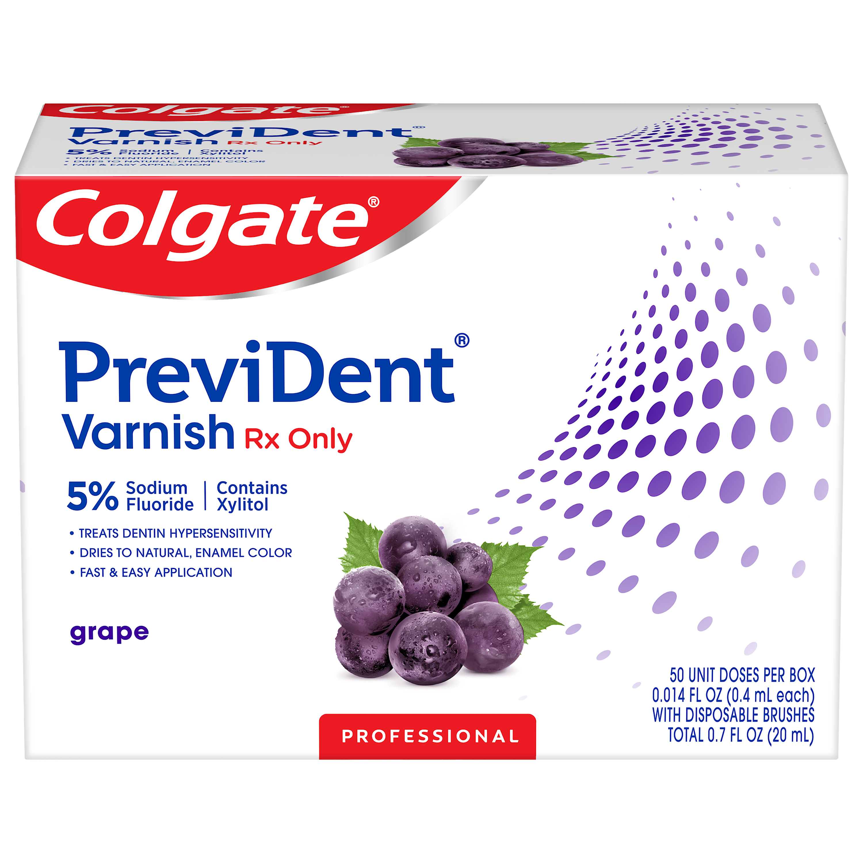 | Product Title | Colgate® PreviDent® Varnish, In Office Fluoride, 5 Units, Dose 5% NaF, Grape, .4 mL (Rx Only) |