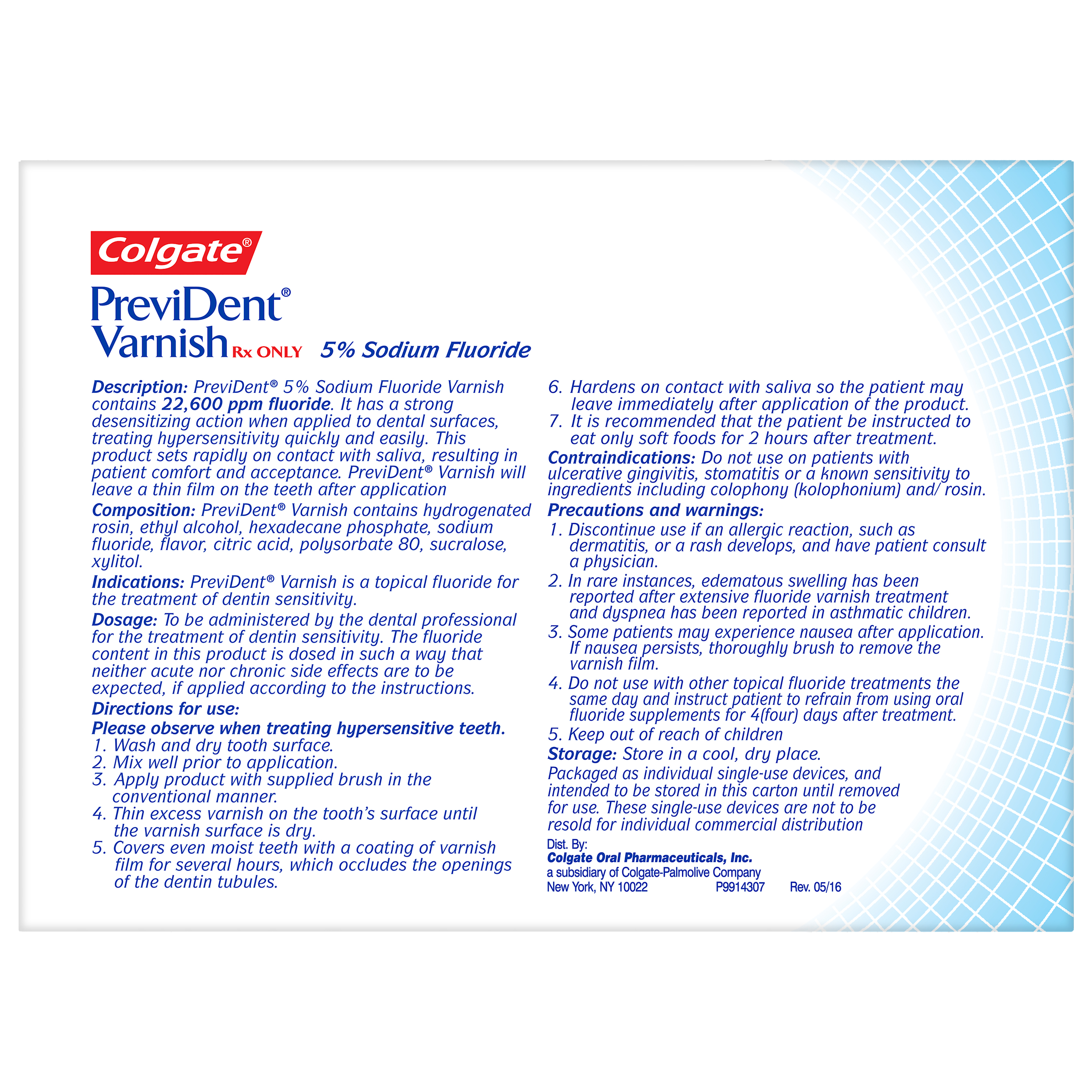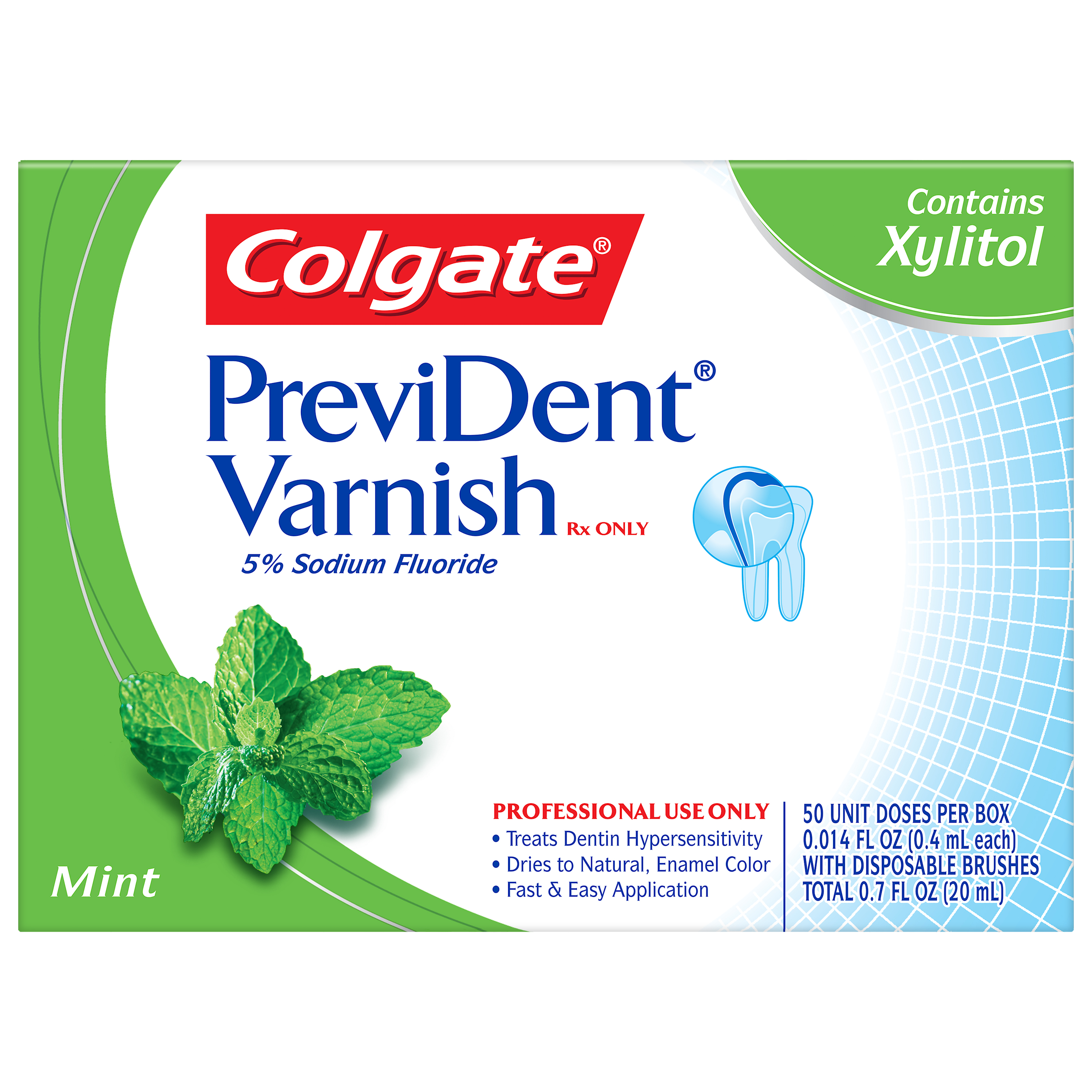 | Product Title | Colgate® PreviDent® Varnish, In Office Fluoride, 5 Units, Dose 5% NaF, Mint, .4 mL (Rx Only) |