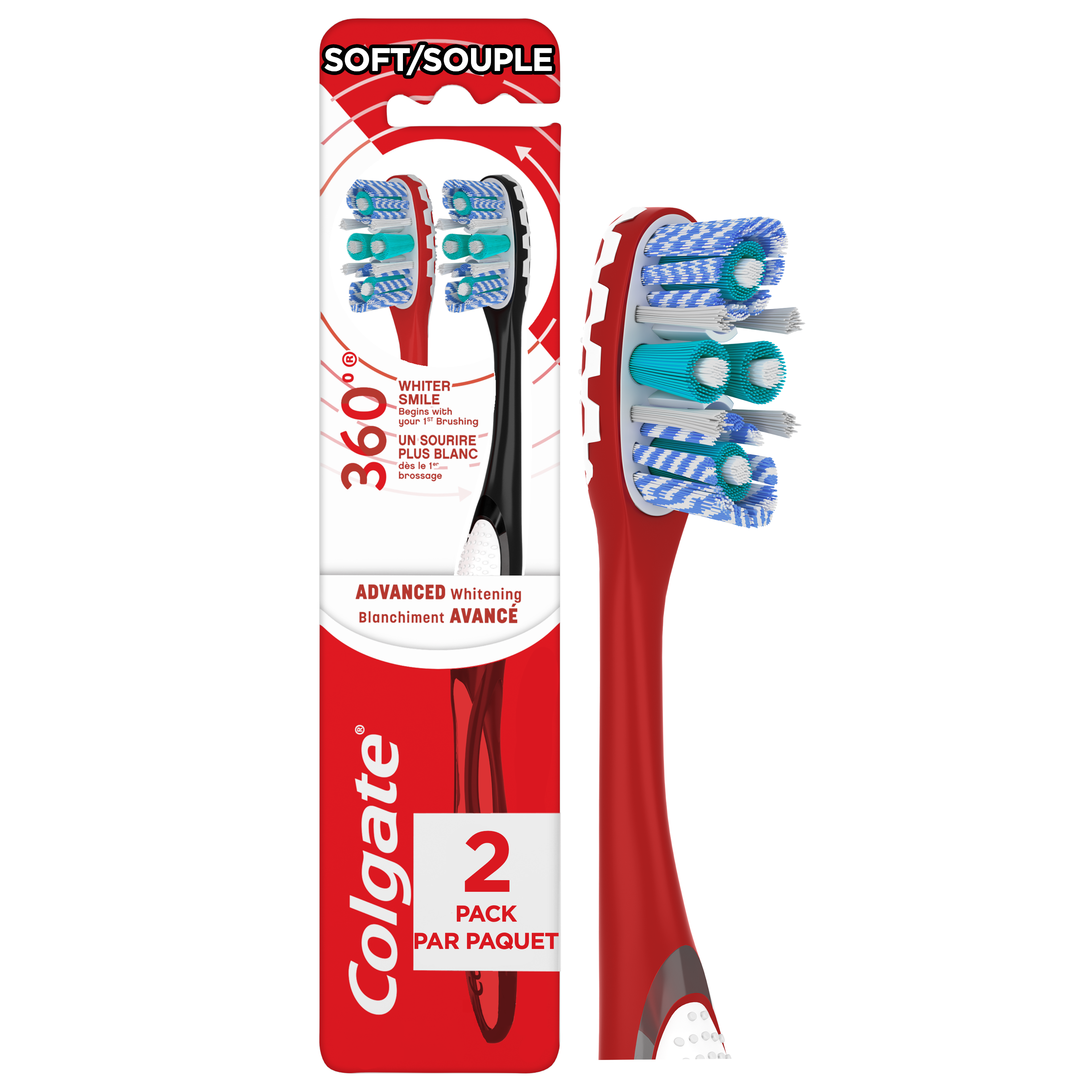 Colgate 360 Optic White Advanced soft adult manual toothbrush, 2pk