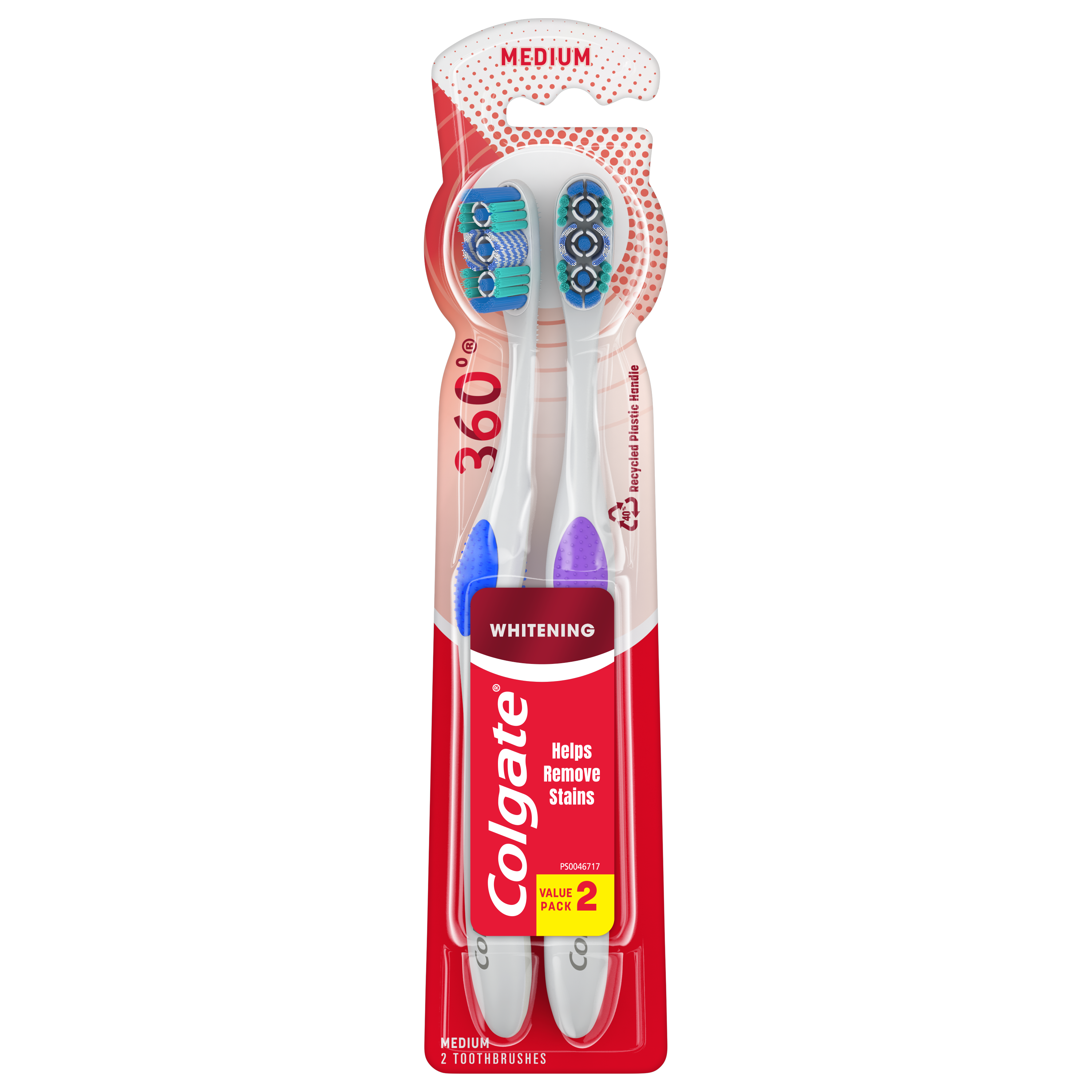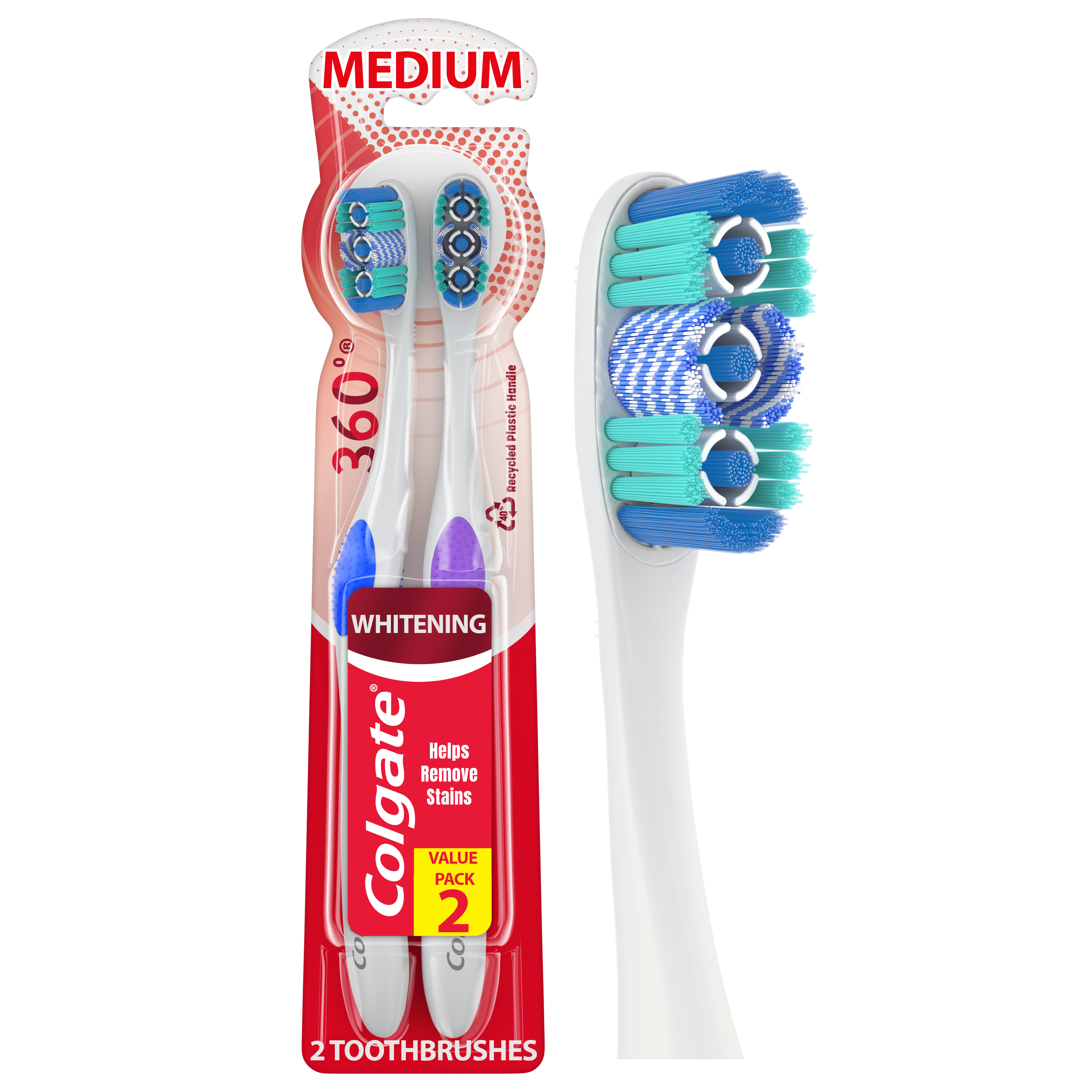 Colgate 360° Optic White Whitening Toothbrush, Medium - 2 Count
