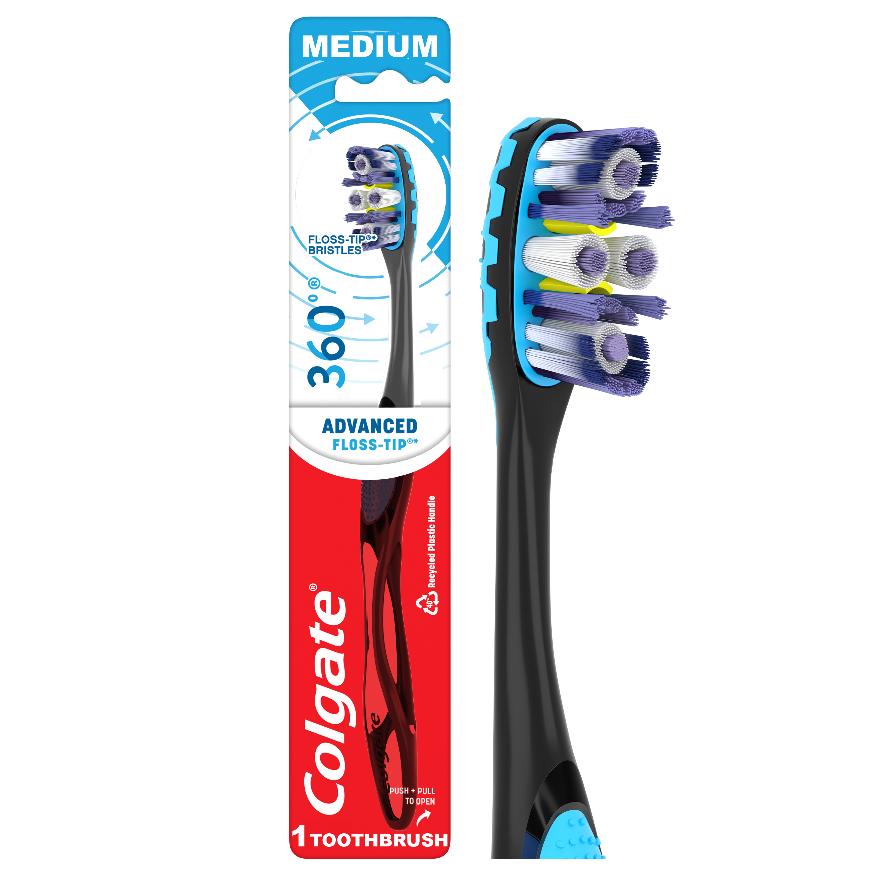 Colgate 360° Advanced Floss-Tip Bristles Toothbrush, Medium