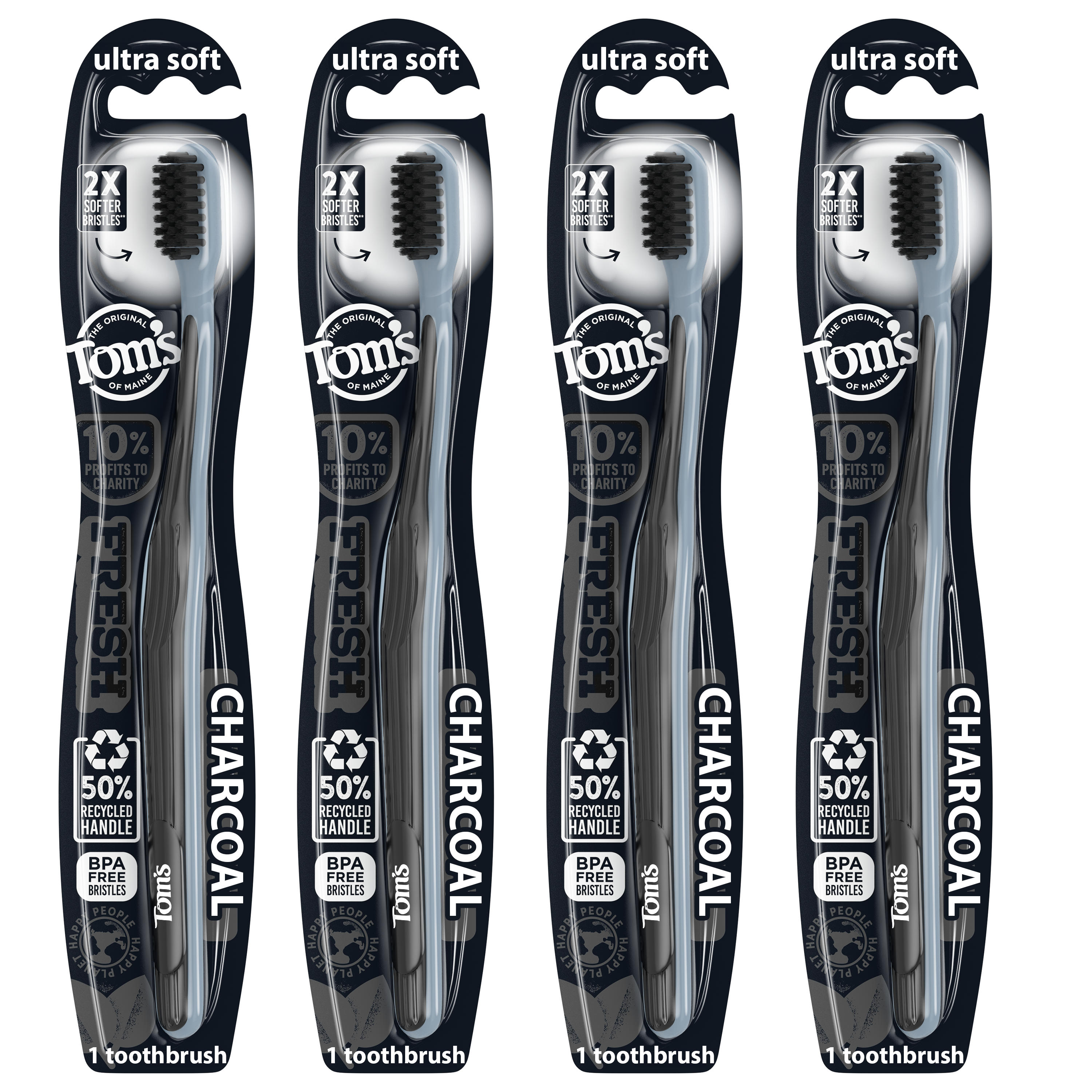 Tom's of Maine Gentle Soft Charcoal Toothbrush for Stain Removal, 4-Pack