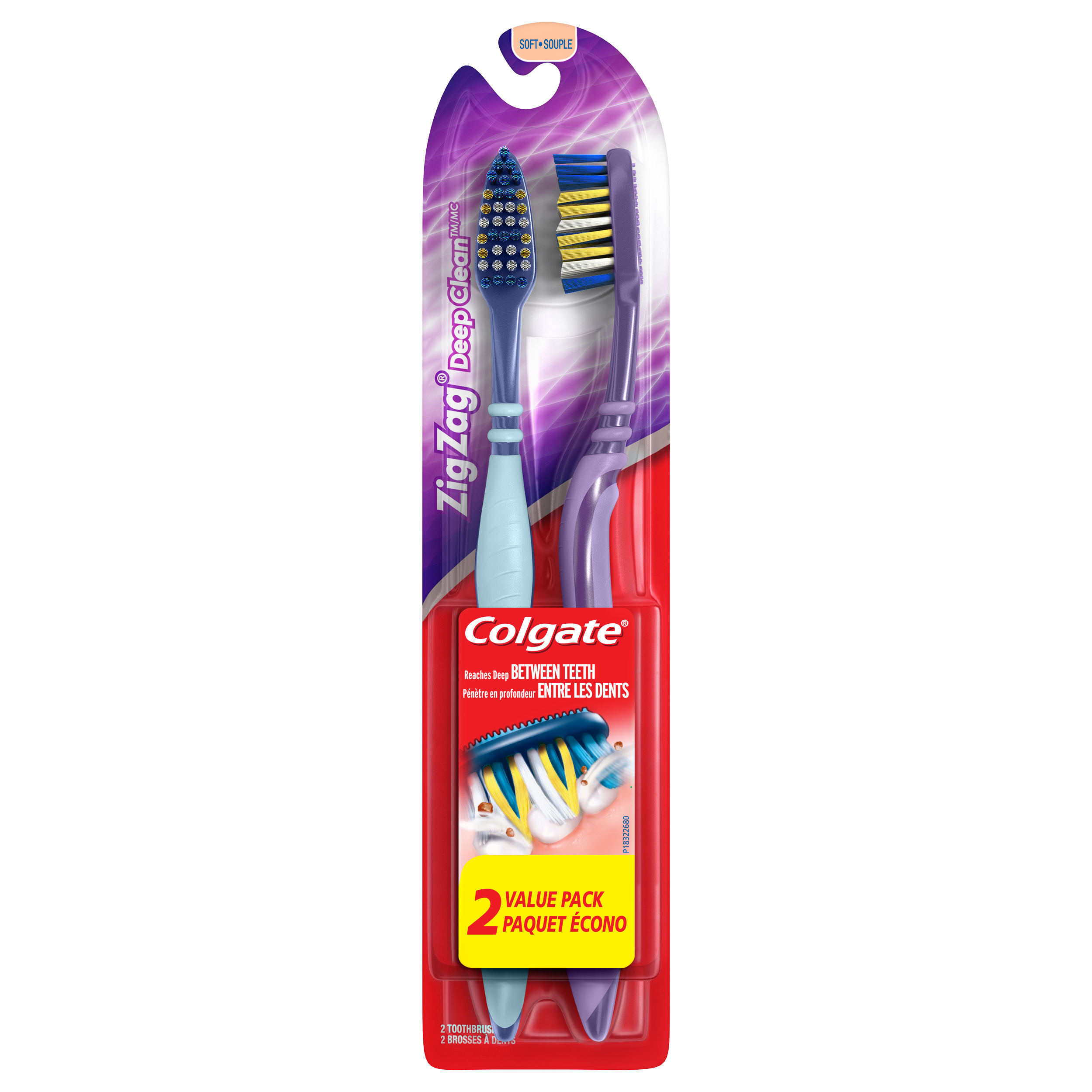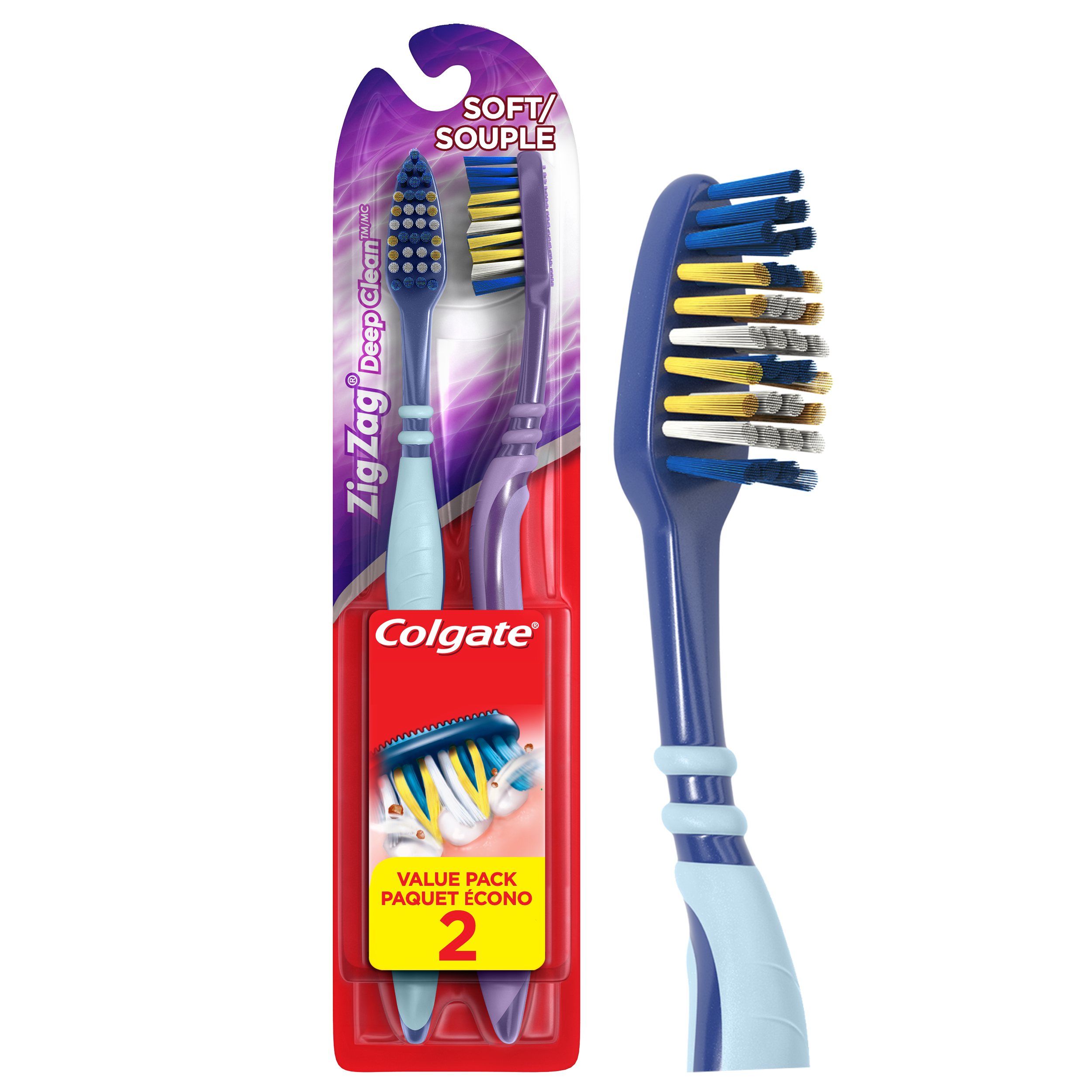 Colgate Zig Zag Deep Clean Soft Toothbrush with Soft Bristles, Adult Toothbrushes, 2 Pack