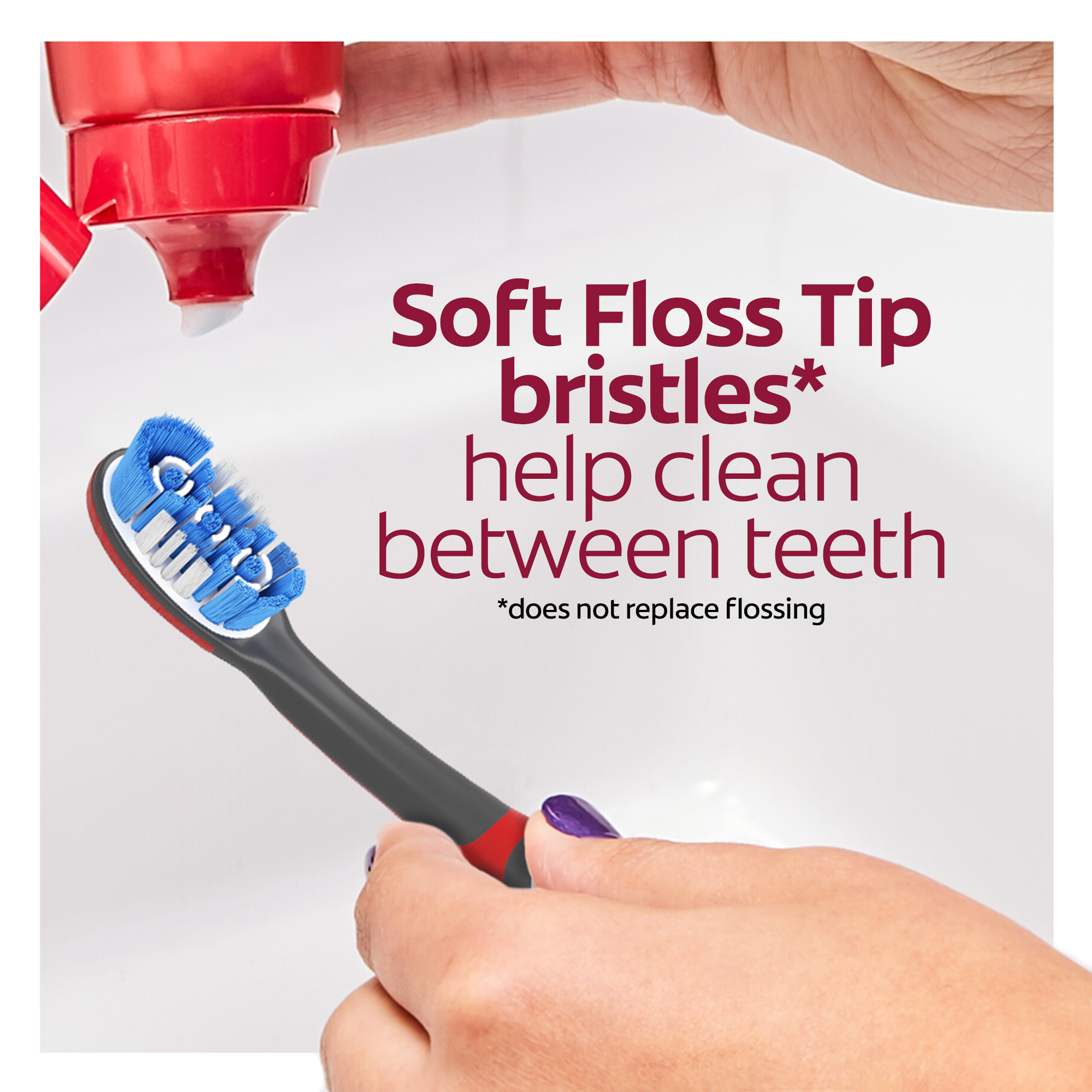 *vs. brushing teeth alone with an ordinary flat trim toothbrush**does not replace flossing***vs. a manual toothbrush