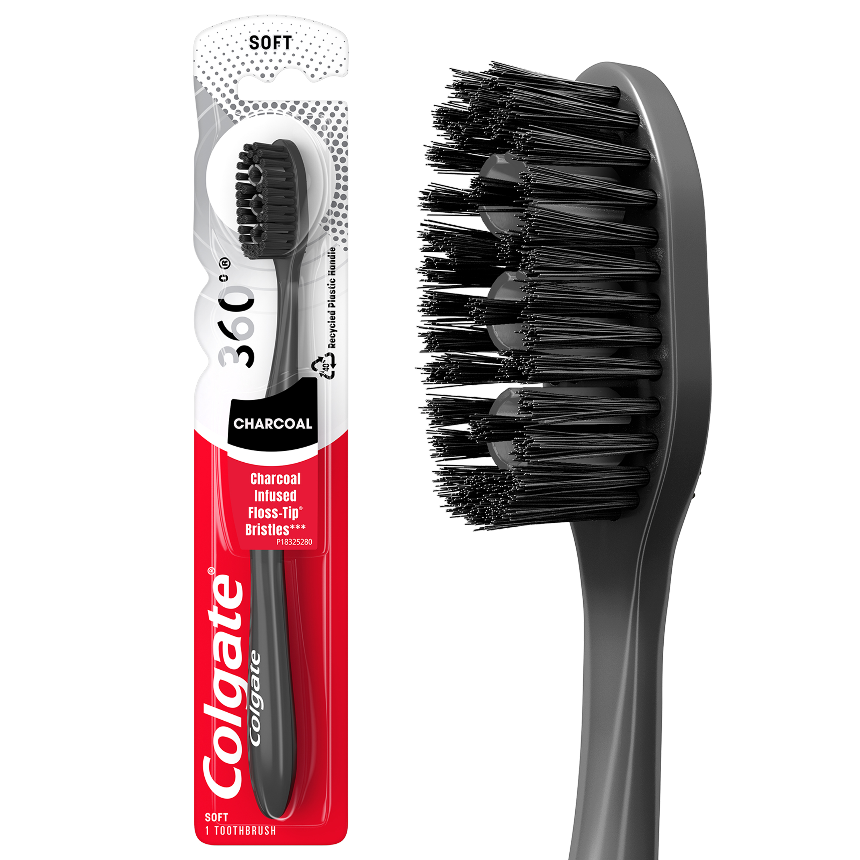 SKU CN07241A Consumer Unit - GTIN 00035000470881 Case - GTIN 10035000470888 Product Category Oral Care Product Sub Category Manual TB Product Equity (Brand) Colgate Product Sub Brand Colgate 360 Man TB Product Title Colgate 360 Charcoal Toothbrush Slimmer Tip Soft Bristles - 1 Count Product Description Colgate® 36® Charcoal Soft Toothbrush Charcoal-infused tapered bristles Cleans 2x deeper along the gum line (vs an ordinary flat trim toothbrush) Cleans your teeth, tongue, cheeks, and gums Remember to change your toothbrush every 3 months eCommerce Copy- Long Description Colgate® 360® Charcoal Soft Toothbrush Charcoal-infused tapered bristles Cleans 2x deeper along the gum line (vs an ordinary flat trim toothbrush) Cleans your teeth, tongue, cheeks, and gums Remember to change your toothbrush every 3 months Bullet 1 Charcoal-infused tapered bristles Bullet 2 Cleans 2x deeper along the gumline (vs. an ordinary flat trim toothbrush) Bullet 3 Cleans your teeth, tongue, cheeks, and gums Bullet 4 Remember to change your toothbrush every 3 months Bullet 5 Soft toothbrush bristles