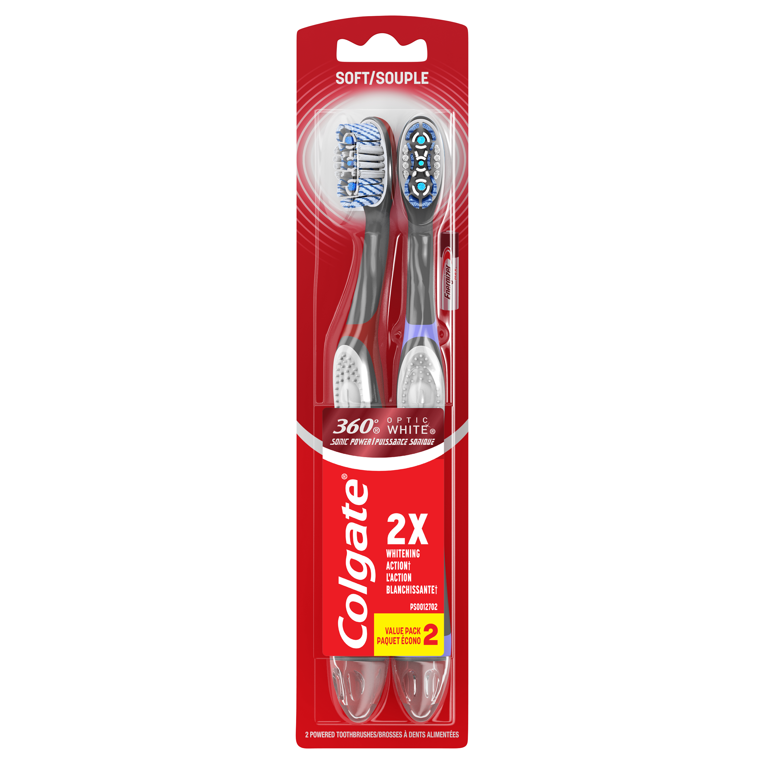 Colgate 360 Optic White Sonic Powered Vibrating Toothbrush, Soft - 2 Count