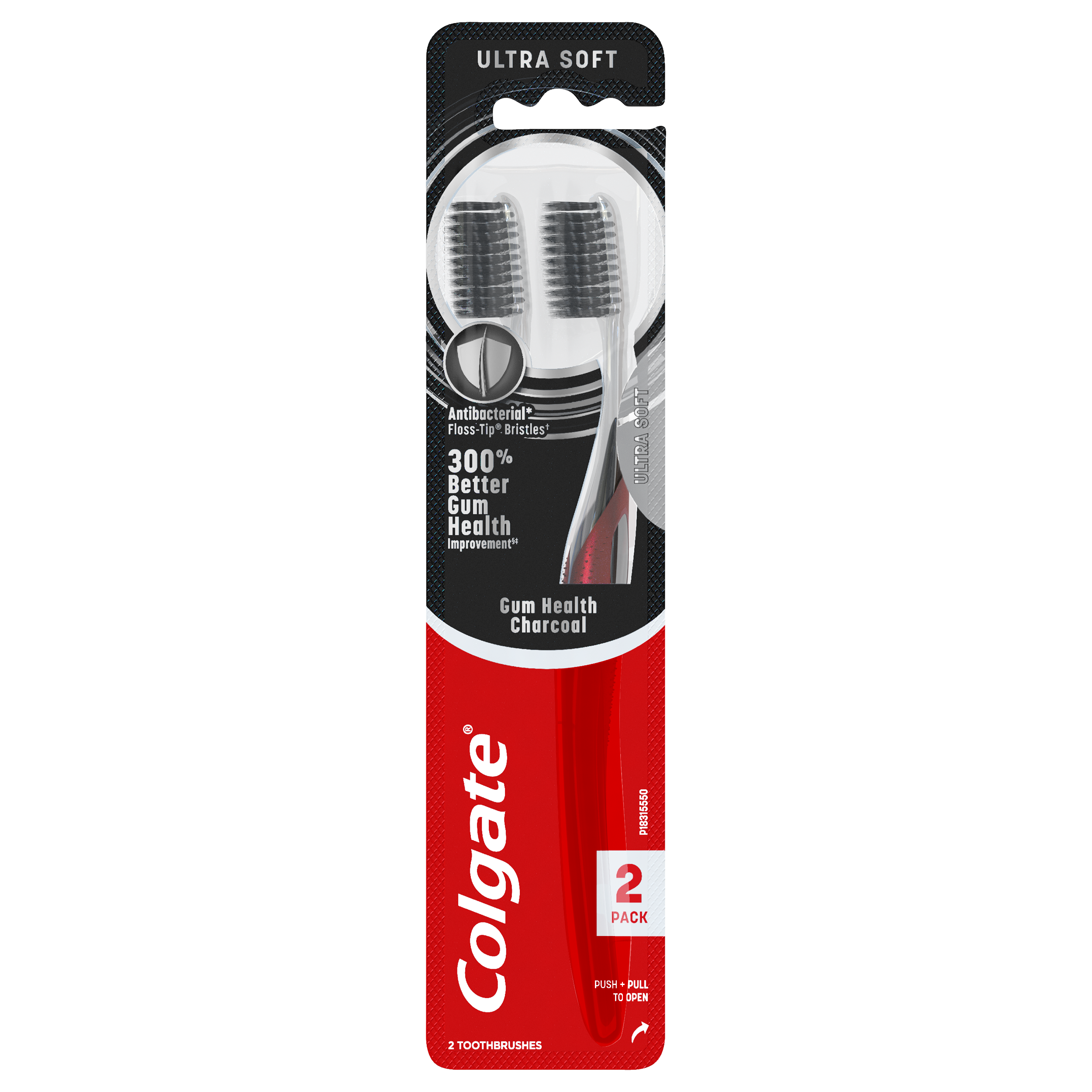 SKU CN08206A Consumer Unit - GTIN 00035000985262 Case - GTIN 10035000985269 Product Category Oral Care Product Sub Category Manual TB Product Equity (Brand) Colgate Product Sub Brand Colgate Gum Health Man TB Product Title Colgate Gum Health Charcoal Adult Manual Toothbrush, Ultra Soft, 2 Pack Product Description Colgate Gum Health Charcoal Adult Manual Toothbrush, 2 Pack The Colgate Gum Health Charcoal Toothbrush encourages healthier gums and provides a clinically-proven deeper clean! Specially designed, this charcoal toothbrush features ultra-soft, ultra-fine tipped bristles less than .01mm in diameter to clean 2.4 X deeper in between teeth versus an ordinary toothbrush. The Gum Health Charcoal toothbrush will help reduce gum bleeding and gingivitis. Gum Health in Mind When we think of oral health, our focus tends to be on our pearly whites. Colgate Gum Health Charcoal Adult Manual Toothbrush for Sensitive Gums and Teeth features our Ultra Slim, Floss-Tip bristles. This ultra-soft charcoal toothbrush features antibacterial bristles* that help prevent bacteria growth on bristles*. A study has shown 300% better gum health improvement*** over time, which means a reduction in gum bleeding. A Healthy Smile With Colgate At Colgate, we make products that promote healthy smiles. Not only because having a healthy smile is important to your overall health, but because when you have a healthy smile, you actually smile more – and that’s a powerful thing. Smiles are the simplest form of optimism, something we need now more than ever. That’s why we’re championing optimism – we are committed to creating a healthier planet and working every day to create healthy smiles for all. Everyone has the right to a bright, problem-free smile. That’s why we’re committed to raising oral healthcare standards everywhere. Whether it’s building healthy new habits as kids or learning something new from the experts, we’re here to give your oral health a boost. eCommerce Copy- Long Description "Colgate Gum Health Charcoal Adult Manual Toothbrush, 2 Pack The Colgate Gum Health Charcoal Toothbrush encourages healthier gums and provides a clinically-proven deeper clean! Specially designed, this charcoal toothbrush features ultra-soft, ultra-fine tipped bristles less than .01mm in diameter to clean 2.4 X deeper in between teeth versus an ordinary toothbrush. The Gum Health Charcoal toothbrush will help reduce gum bleeding and gingivitis. Gum Health in Mind When we think of oral health, our focus tends to be on our pearly whites. Colgate Gum Health Charcoal Adult Manual Toothbrush for Sensitive Gums and Teeth features our Ultra Slim, Floss-Tip bristles. This ultra-soft charcoal toothbrush features antibacterial bristles* that help prevent bacteria growth on bristles*. A study has shown 300% better gum health improvement*** over time, which means a reduction in gum bleeding. A Healthy Smile With Colgate At Colgate, we make products that promote healthy smiles. Not only because having a healthy smile is important to your overall health, but because when you have a healthy smile, you actually smile more – and that’s a powerful thing. Smiles are the simplest form of optimism, something we need now more than ever. That’s why we’re championing optimism – we are committed to creating a healthier planet and working every day to create healthy smiles for all. Everyone has the right to a bright, problem-free smile. That’s why we’re committed to raising oral healthcare standards everywhere. Whether it’s building healthy new habits as kids or learning something new from the experts, we’re here to give your oral health a boost." Bullet 1 The Colgate Gum Health Ultra Soft Manual toothbrushf features 100% Ultra Slim, Floss-Tip® Bristles** . ** this brush does not replace flossing Bullet 2 Helps clean along the gum line. Deep cleaning and healthier gums* *reduction in gingival bleeding vs. ordinary flat trim toothbrush Bullet 3 Designed to gently clean 2.4x deeper between teeth and gums than an ordinary flat trim toothbrush. Bullet 4 A study has shown 300% better gum health improvement† over time, which means a reduction in gum bleeding. Bullet 5 A study has shown 300% better gum health improvement over time† which means a reduction in gum bleeding. Walmart RPC 587675418 Walmart URL (Computed) https://www.walmart.com/ip/a/587675418 Albertsons RPC 970329556 Albertsons URL https://www.albertsons.com/shop/product-details.970329556.html CVS RPC 484849 Family Dollar RPC 998241
