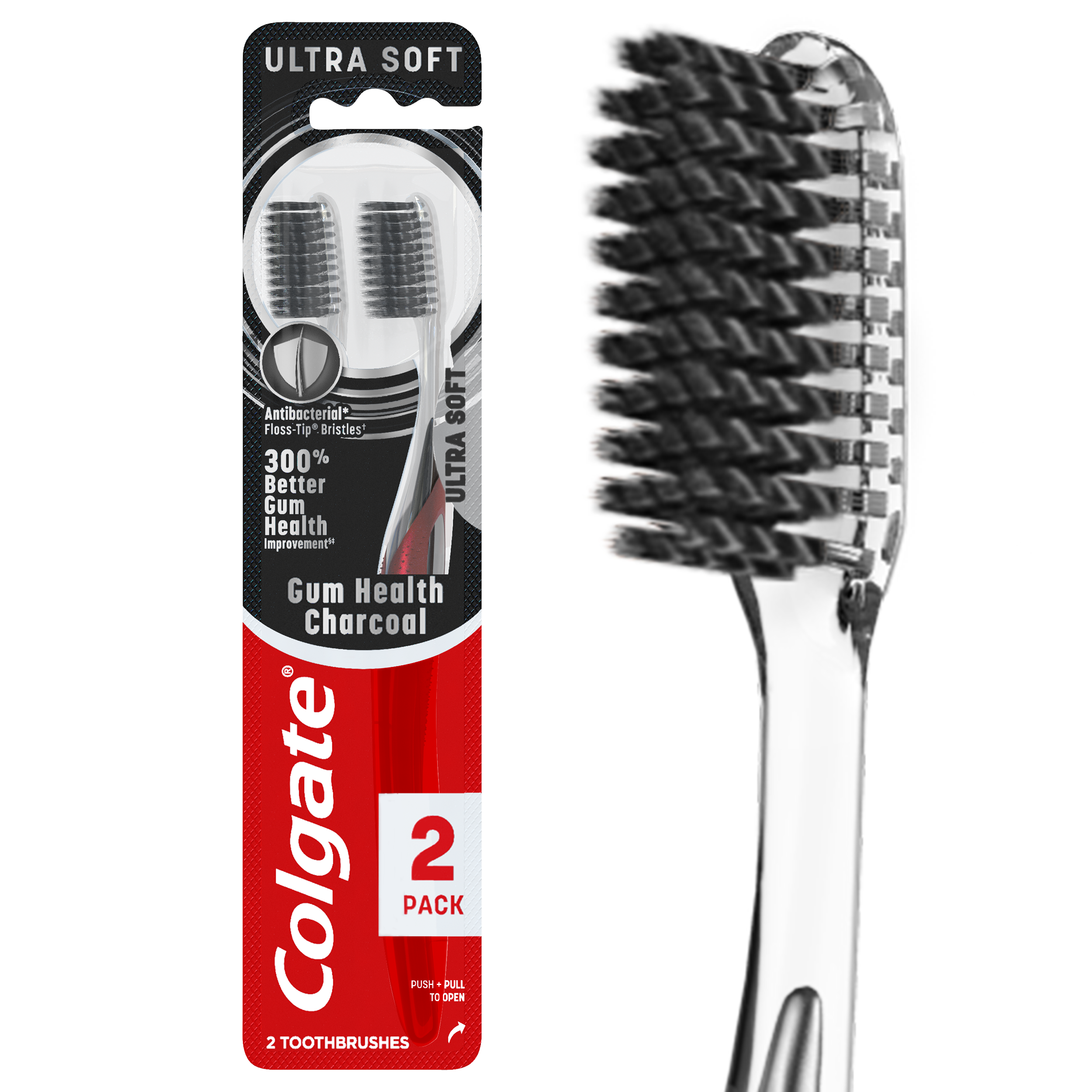 Colgate Gum Health Charcoal Adult Manual Toothbrush, Ultra Soft, 2 Pack