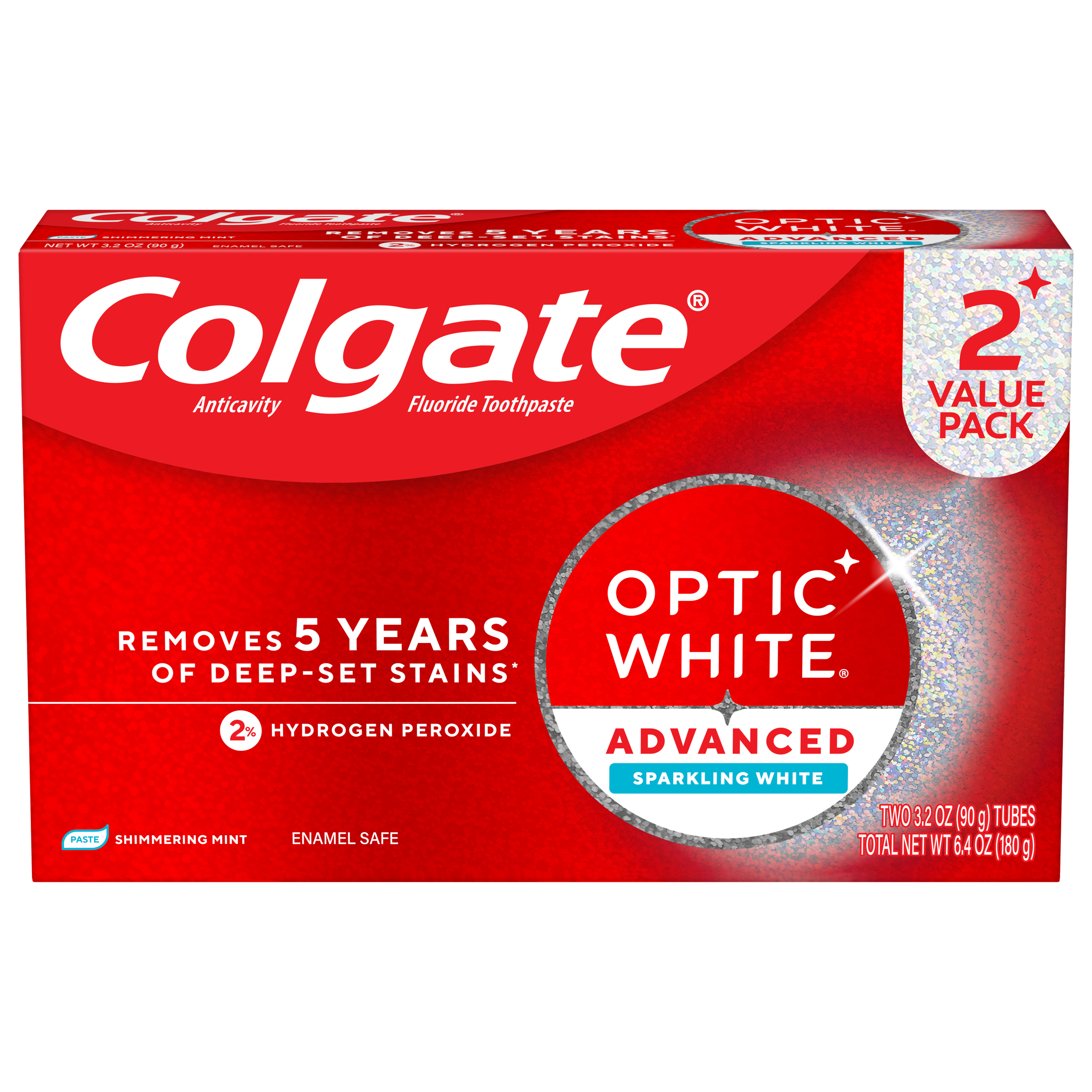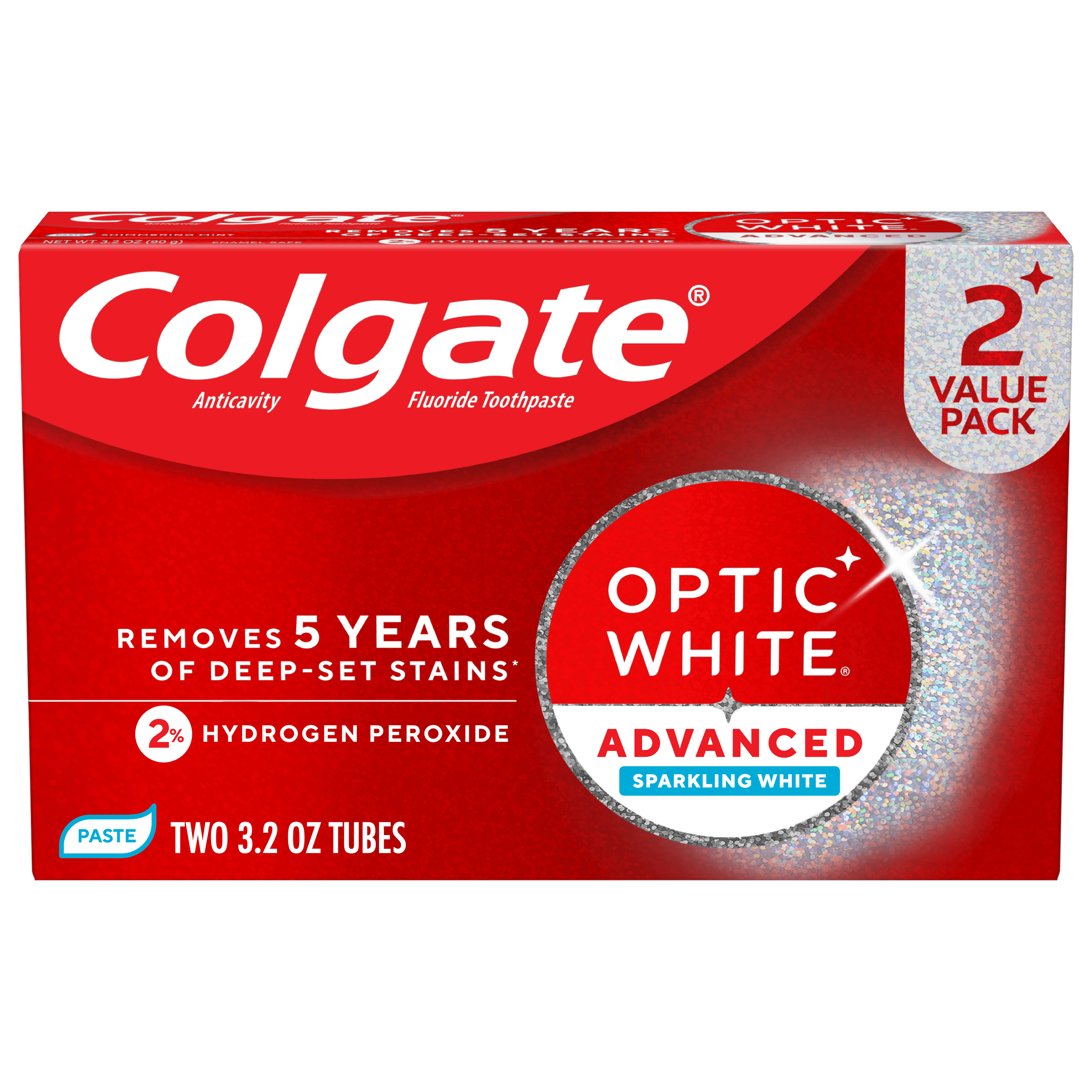Colgate Optic White Advanced Sparkling White Toothpaste with 2% Hydrogen Peroxide, 2 Pack, 3.2 OZ