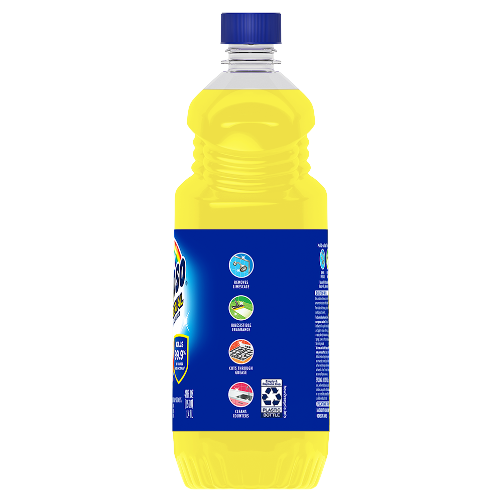 SKU MX07171A Consumer Unit - GTIN 00035000985576 Case - GTIN 10035000985573 Product Category Home Care Product Sub Category Cleaners Liquid / Gel Product Equity (Brand) Fabuloso Product Sub Brand Fabuloso Antibacterial BDC Cln Product Title Fabuloso Antibacterial Multi-Purpose Cleaner, Sparkling Citrus Scent, 48 oz Product Description Fabuloso Antibacterial multi-purpose cleaner cuts through grease and removes limescale. It also kills 99.9% of viruses and bacteria (7). Fabuloso Antibacterial is an all in one cleaner that can be used on floors, walls, bathrooms, living rooms, and almost every hard surface. For visibly soiled surfaces, preclean surfaces before sanitizing or disinfecting. To clean and sanitize hard, non-food, non-porous surfaces: Dilute 1/2 cup of Fabuloso Antibacterial in a gallon of sterile deionized water and apply to surfaces with a mop, cloth or sponge or apply directly to surfaces with a mop, cloth or sponge. Leave on surfaces for at least 5 minutes. No rinsing required. To clean and disinfect hard, non-food, non-porous surfaces: Dilute 1 part Fabuloso Antibacterial with equal parts tap water and apply to surfaces by sprayer. Spray 6-8 inches from the surface with 4 pumps or until visibly wet. Leave on surfaces for at least 10 minutes. Wipe with a cloth or sponge. Repeat as necessary. And let's not forget the unmistakable fragrance that fills your space with the citrus scent. Experience the power of cleanliness with every wipe! (7) Staph aureus, Salmonella enterica, SARS-CoV-2, Human Coronavirus, RSV, and Influenza A Virus on hard, non-porous, non-food surfaces eCommerce Copy- Long Description Fabuloso® Antibacterial Sparkling Citrus