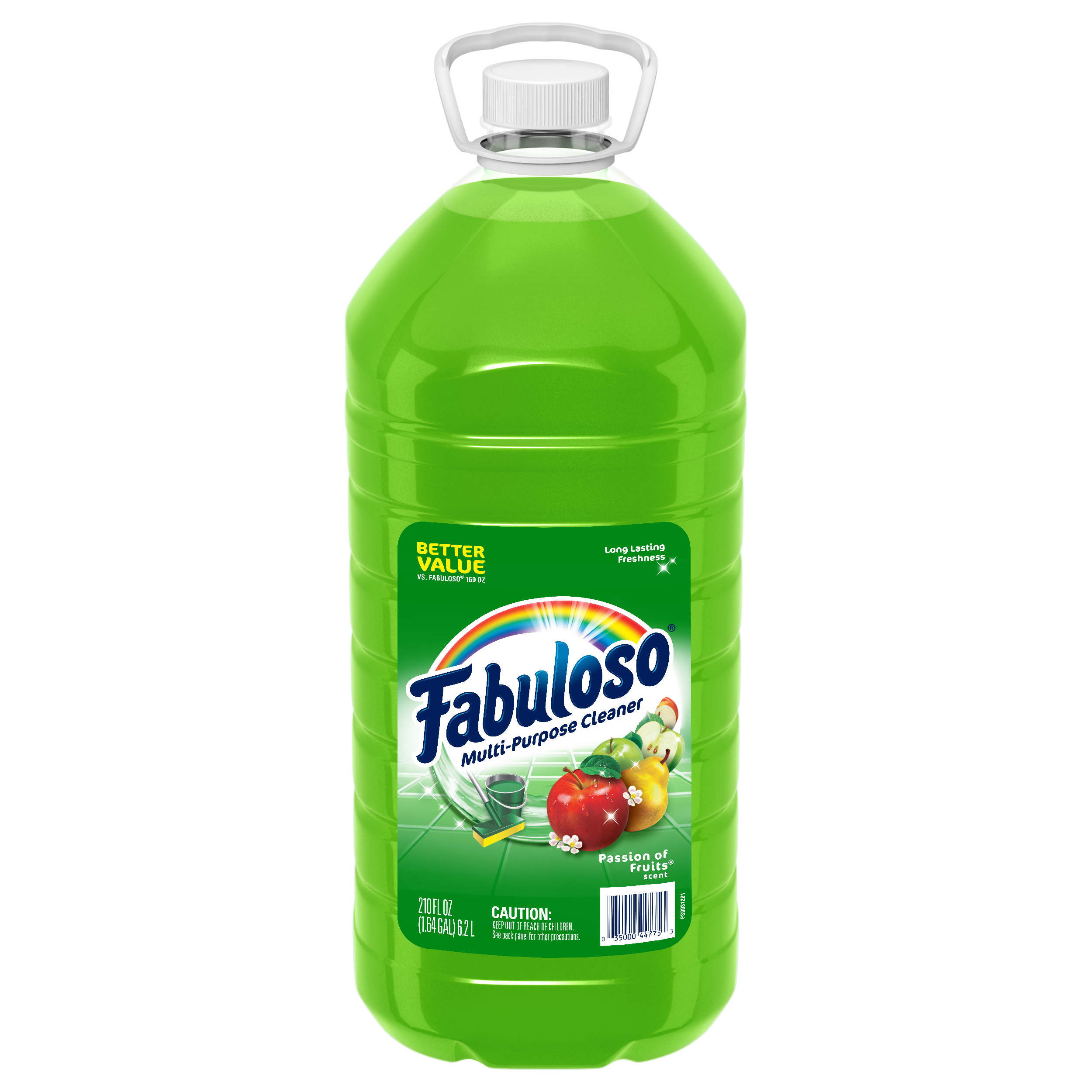 SKU US03980A Consumer Unit - GTIN 00035000447753 Case - GTIN 10035000447750 Product Category Home Care Product Sub Category Cleaners Liquid / Gel Product Equity (Brand) Fabuloso Product Sub Brand Fabuloso Liq Cln Product Title Fabuloso All Purpose Cleaner, Passion Fruit - 210 fluid ounce eCommerce Copy- Long Description Fabuloso Multi-Purpose Cleaner leaves a fresh scent that lasts. The Passion of Fruits fragrance leaves an irresistible scent your family and guests will notice. It comes in a convenient, easy-pour bottle. This Fabuloso cleaner is easy to use, so there is no need to rinse, and it leaves no visible residue. Discover the long-lasting freshness of Fabuloso Multi-Purpose Cleaner that leaves your home shiny, clean, fresh, and fragrant.
