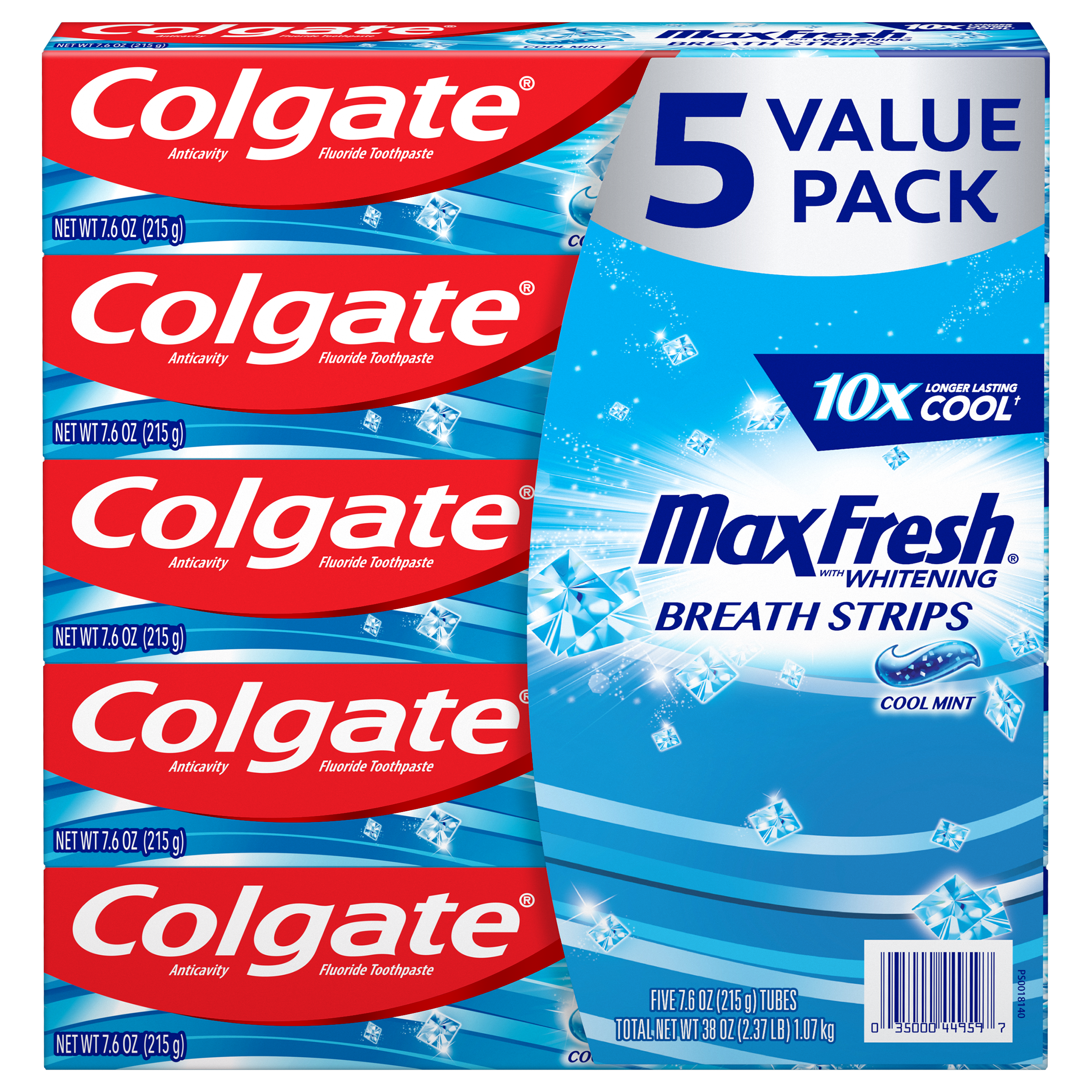 Colgate Max Fresh Toothpaste with Mini Breath Strips, Cool Mint - 7.6oz 5pk