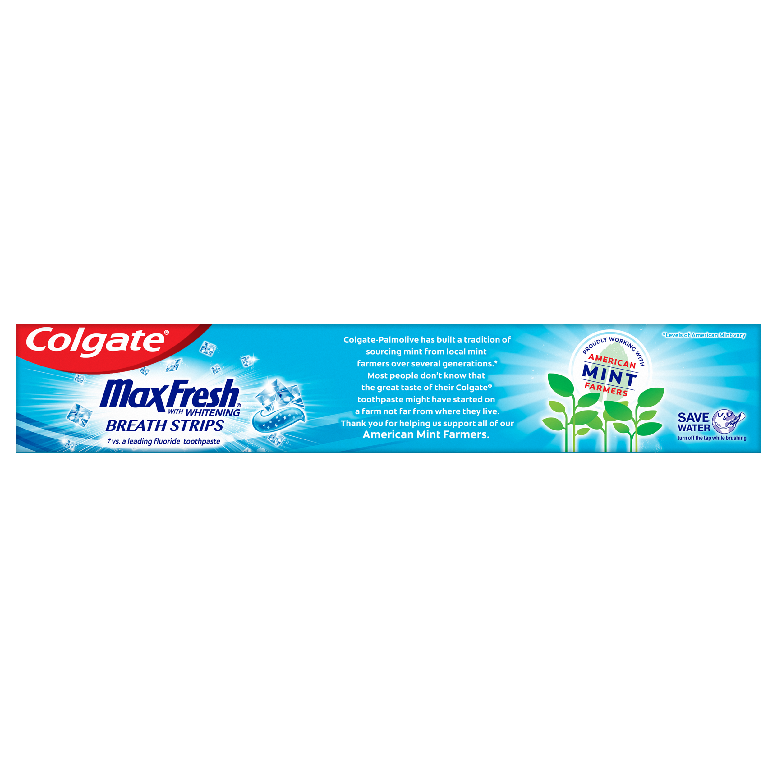 SKU US04138A Consumer Unit - GTIN 00035000449597 Case - GTIN 10035000449594 Product Category Oral Care Product Sub Category Toothpaste Product Equity (Brand) Colgate Product Sub Brand Colgate Max Fresh TP Product Title Colgate Max Fresh Toothpaste with Mini Breath Strips, Cool Mint - 7.6oz 5pk Active Ingredients Sodium Fluoride 0.24 % (0.15% w/v fluoride ion)