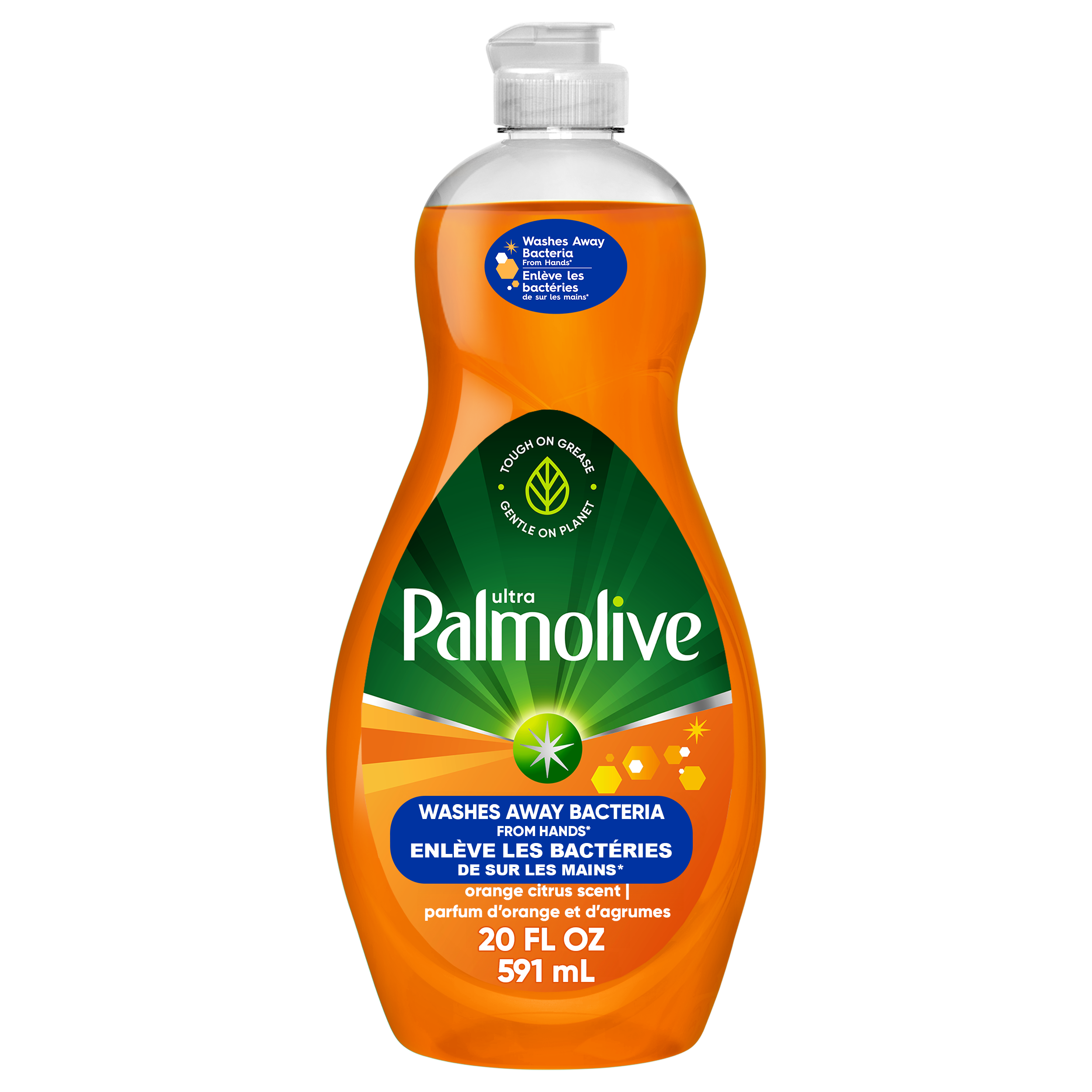 SKU US04364A Consumer Unit - GTIN 00058000140271 Case - GTIN 10058000140278 Product Category Home Care Product Sub Category Dish Hand Product Equity (Brand) Palmolive Product Sub Brand Palmolive Antibacterial Ultra HD Product Title Palmolive Ultra Dish Liquid, Orange Scent, 20 fl oz Bottle Product Description Palmolive Ultra Dish Liquid is tough on grease and washes away bacteria from hands (1). This orange surface cleaner has a fresh citrus scent and cleans more than just dishes. Keep your dishes sparkling clean and residue-free with this bottle of dish liquid. Our formula contains 0% parabens and is phosphate free. Palmolive Ultra contains plant-based active ingredients and this orange scented dish liquid is tough on grease. 50+ years trusted clean so you can enjoy every moment at home without stressing about the mess. (1) when used as hand soap, to wash away dirt and bacteria from hands, wash them for 20 seconds under clean running water eCommerce Copy- Long Description Palmolive Ultra Liquid Dish Soap, Orange Citrus Scent is the grease fighting dish soap that washes away bacteria from hands*. From stuck-on food to your greasiest dishes, Palmolive Ultra is there to help you tackle tough messes and delivers powerful grease cutting to make even your dirtiest dishes an easy clean. While Palmolive Ultra is tough on grease, it is made to be gentle on the earth, with a formula containing 100% biodegradable cleaning ingredients† in a bottle made with 100% recycled plastic. These eco friendly features make it a great addition to your household dishwashing supplies. Make a difference at home and on the environment with Palmolive Ultra. *Wash away dirt and bacteria for good hand hygiene. Healthcare agencies recommend to wet hands with clean water, lather, scrub for 20 seconds and rinse. †OECD 301 B,C,D / OCDE 301 B,C,D. Bullet 1 One 20 fl oz bottle of Palmolive Ultra Dish Liquid, Orange Scent Bullet 2 Tough on grease and washes away bacteria from hands (1) Bullet 3 This orange surface cleaner has a fresh citrus scent and cleans more than just dishes Bullet 4 Keep your dishes sparkling clean and residue-free with this bottle of Pamolive Ultra Bullet 5 Our dish soap formula contains 0% parabens and is phosphate free Bullet 6 50+ years trusted clean so you can enjoy every moment at home without stressing about the mess Active Ingredients Active Ingredient: L-Lactic Acid, 2.00%