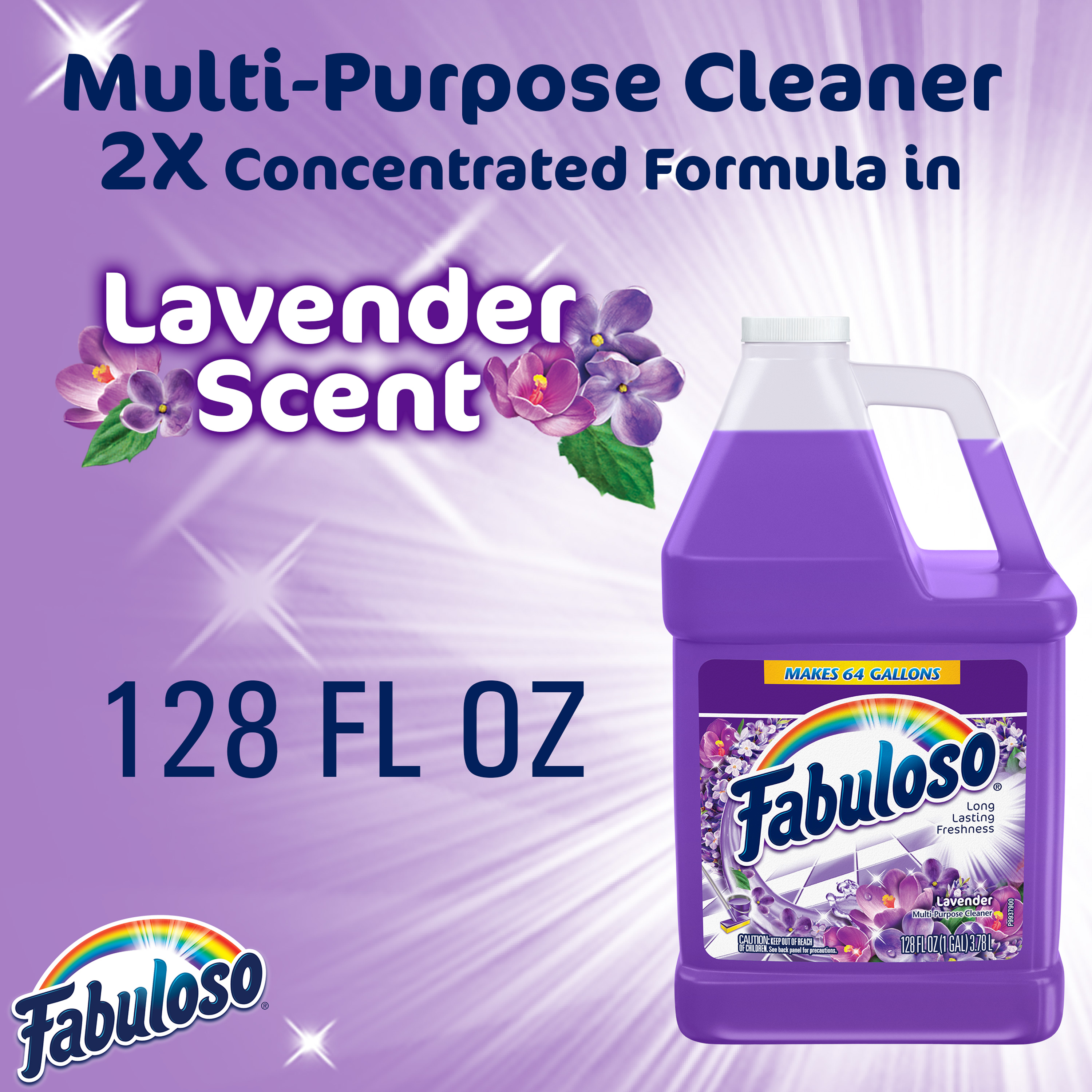 SKU US05032A Consumer Unit - GTIN 00035000999993 Product Category Home Care Product Sub Category Cleaners Liquid / Gel Product Equity (Brand) Fabuloso Product Sub Brand Fabuloso Liq Cln Product Title Fabuloso All Purpose Cleaner, Lavender - 128 fluid ounce Product Description Fabuloso Multi-Purpose Cleaner leaves a fresh scent that lasts. The Lavender fragrance leaves an irresistible scent your family and guests will notice. It comes in a convenient, easy-pour bottle. This Fabuloso cleaner is easy to use, so there is no need to rinse, and it leaves no visible residue. Discover the long-lasting freshness of Fabuloso Multi-Purpose Cleaner that leaves your home shiny, clean, fresh, and fragrant. Bullet 1 Fabuloso is powerful and safe for multi-surfaces Bullet 2 Use Fabuloso® on sinks, toliets, tubs, showers, floors, sealed wood surfaces, appliances, counters, windows, mirrors, walls, doorknobs, and furniture. Bullet 3 No visible residue, No rinsing required Bullet 4 100% Biodegradable Active Ingredients Bullet 5 Responsibly Made** (**to learn more, visit www.colgatepalmolive.com/responsibly-made)