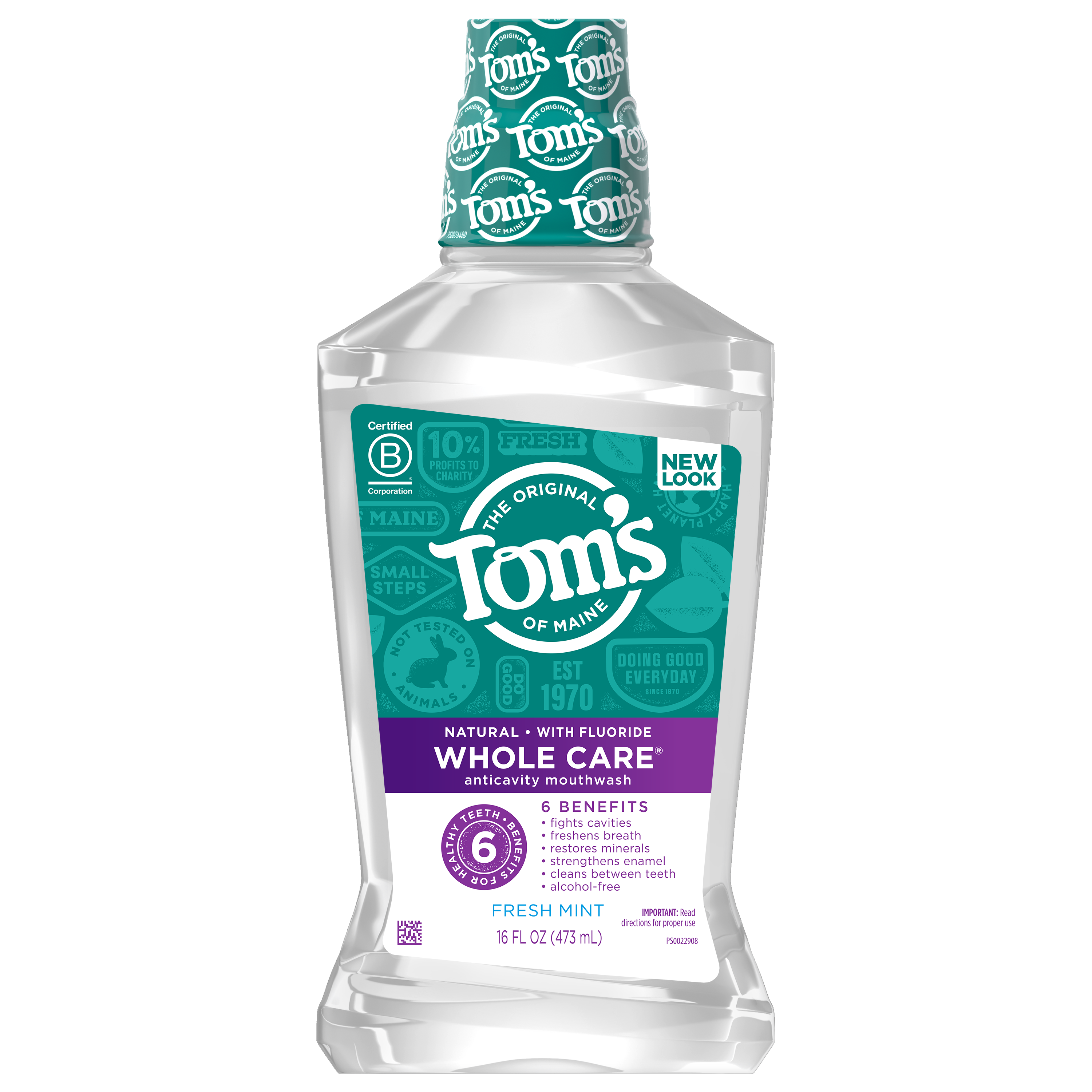 SKU US05033A Consumer Unit - GTIN 00077326457832 Case - GTIN 10077326457839 Product Category Oral Care Product Sub Category Mouthwash Product Equity (Brand) Tom's Product Sub Brand Tom's Fluoride MW Product Title Tom's of Maine Whole Care Natural Fluoride Mouthwash, Fresh Mint, 16 oz. Product Description Tackle bad breath, cavities and more with Tom's of Maine Whole Care Natural Mouthwash. This fluoride mouthwash gives six benefits in one: It fights cavities, restores minerals, freshens breath, cleans between teeth, strengthens enamel and is alcohol free*. Plus, it contains no artificial colors, sweeteners or preservatives. Enjoy the clean taste of Fresh Mint with every swish. Order Tom's of Maine mouthwash, and try their other natural dental care products. Tom's of Maine products use only ingredients that meet its stewardship standards for natural, sustainable and responsible, helping empower families to live more naturally. Tom's of Maine is a Certified B Corp and meets the highest standards of social and environmental performance, as well as public transparency. The company donates 1% of profits to charities committed to children's health, education and the environment. Thank you for supporting Tom's of Maine. *Product does not contain ethyl alcohol. eCommerce Copy- Long Description Tackle bad breath, cavities and more with Tom's of Maine Whole Care Natural Mouthwash. This fluoride mouthwash gives six benefits in one: It fights cavities, restores minerals, freshens breath, cleans between teeth, strengthens enamel and is alcohol free*. Plus, it contains no artificial colors, sweeteners or preservatives. Enjoy the clean taste of Fresh Mint with every swish. Order Tom's of Maine mouthwash, and try their other natural dental care products. Tom's of Maine products use only ingredients that meet its stewardship standards for natural, sustainable and responsible, helping empower families to live more naturally. Tom's of Maine is a Certified B Corp and meets the highest standards of social and environmental performance, as well as public transparency. The company donates 10% of profits to charities committed to children's health, education and the environment. Thank you for supporting Tom's of Maine. *Product does not contain ethyl alcohol. Bullet 1 WHAT YOU'LL GET: One 16-ounce bottles of Tom's of Maine Whole Care Natural Mouthwash in Fresh Mint Flavor in a recyclable bottle Bullet 2 CAVITY PROTECTION: Fluoride mouthwash offers clinically proven cavity protection Bullet 3 ALCOHOL-FREE MOUTHWASH: Freshen breath with minty flavor and no ethyl alcohol Bullet 4 STRENGTHENS TEETH: Natural mouthwash helps restore minerals to teeth and strengthen enamel Bullet 5 NATURAL & RESPONSIBLE: Contains no artificial sweeteners, preservatives, colors or flavors and is not tested on animals Bullet 6 Alcohol-free* *Product does not contain ethyl alcohol Bullet 7 Gluten free Active Ingredients Sodium Fluoride 0.02 % (0.01% w/v fluoride ion) Target RPC 52510478 Target URL https://www.target.com/p/a/-/A-52510478 CVS RPC 978594