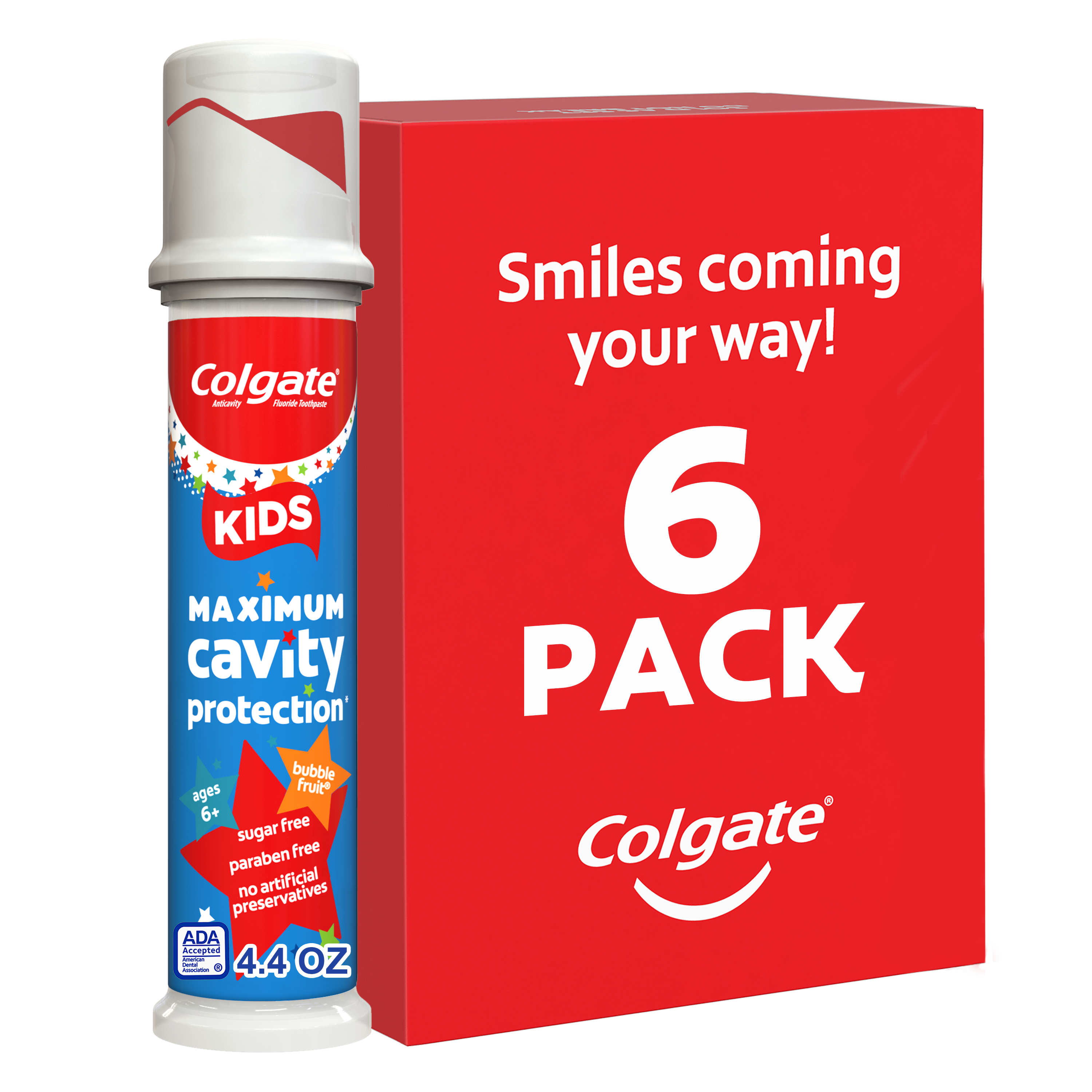Colgate Kids Toothpaste Pump with Fluoride, Anticavity & Cavity Protection Toothpaste, For Ages 6+, Mild Bubble Fruit Flavor, 4.4 Ounce (6 Pack)