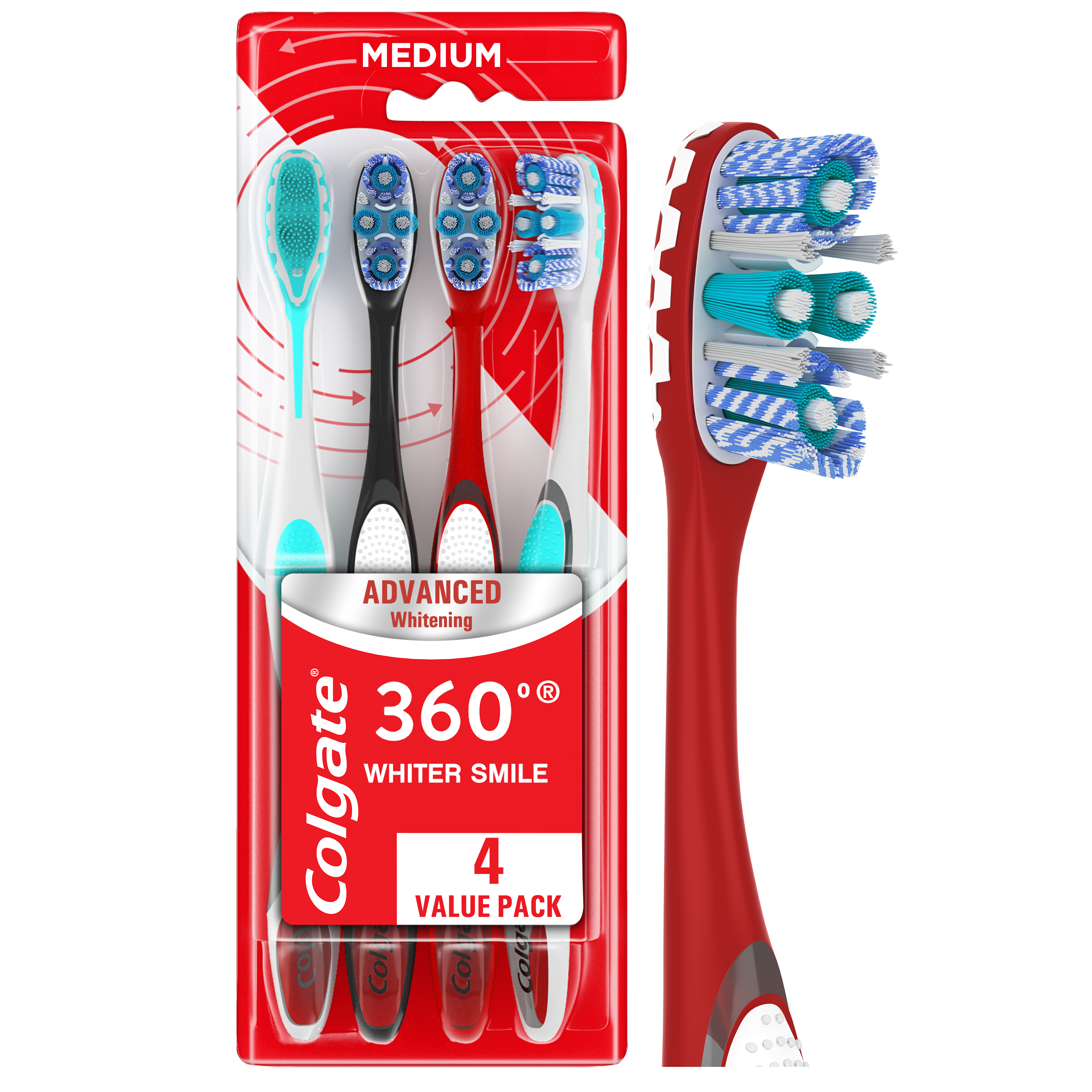 Colgate 360 Advanced Whitening Medium Toothbrush Pack, 4 Count