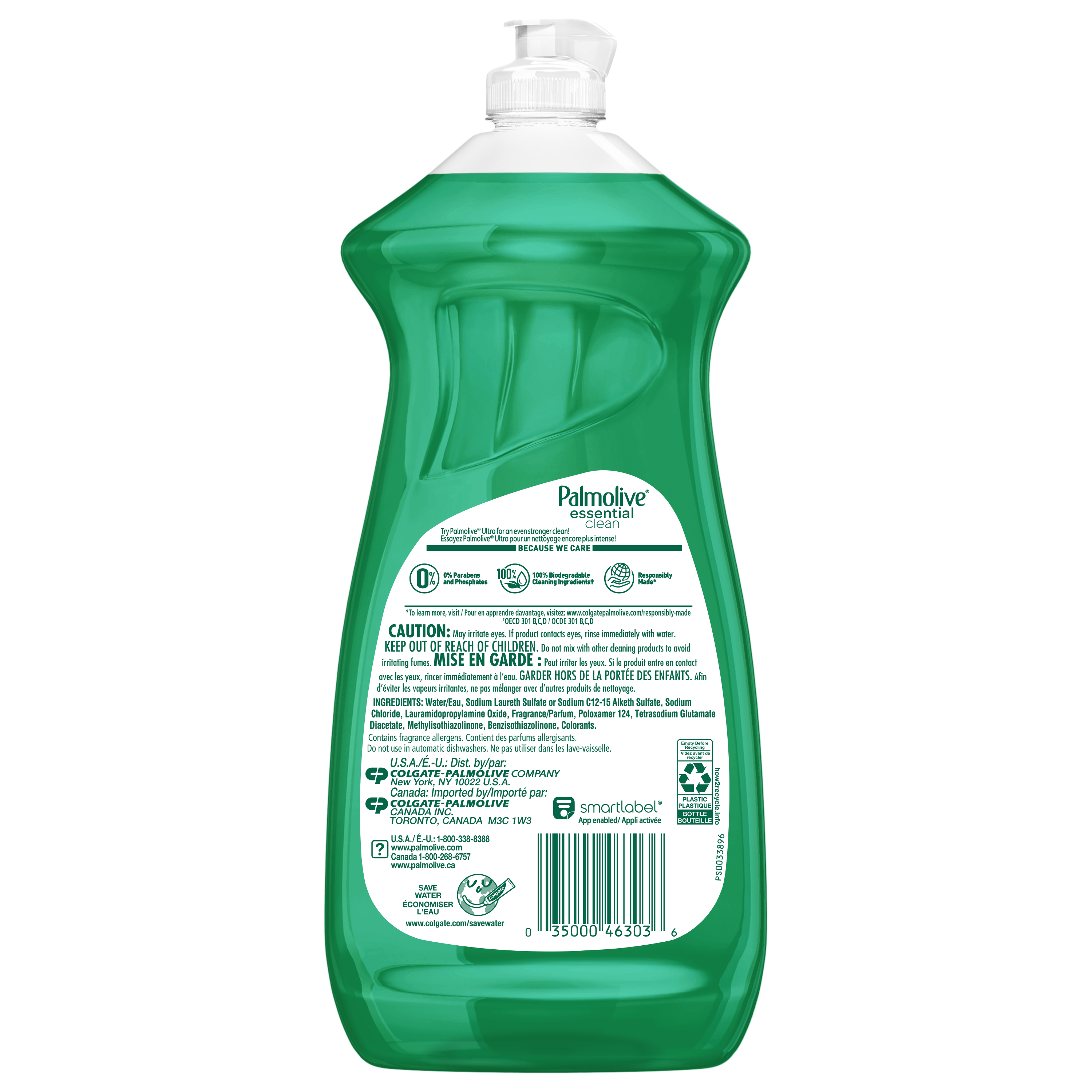 Made in 100% post-consumer recycled plastic bottles (for 46 oz and under) Made in a TRUE Zero Waste Certified Manufacturing Facility* Formulated with 100% biodegradable cleaning ingredients [OECD 301 B,C,D / OCDE 301 B,C,D] and 0% parabens and phosphatesNo matter which of our Palmolive Ultra or Essential Clean Dish Soaps you choose, you can rest assured you’re taking a small step towards making a big difference.