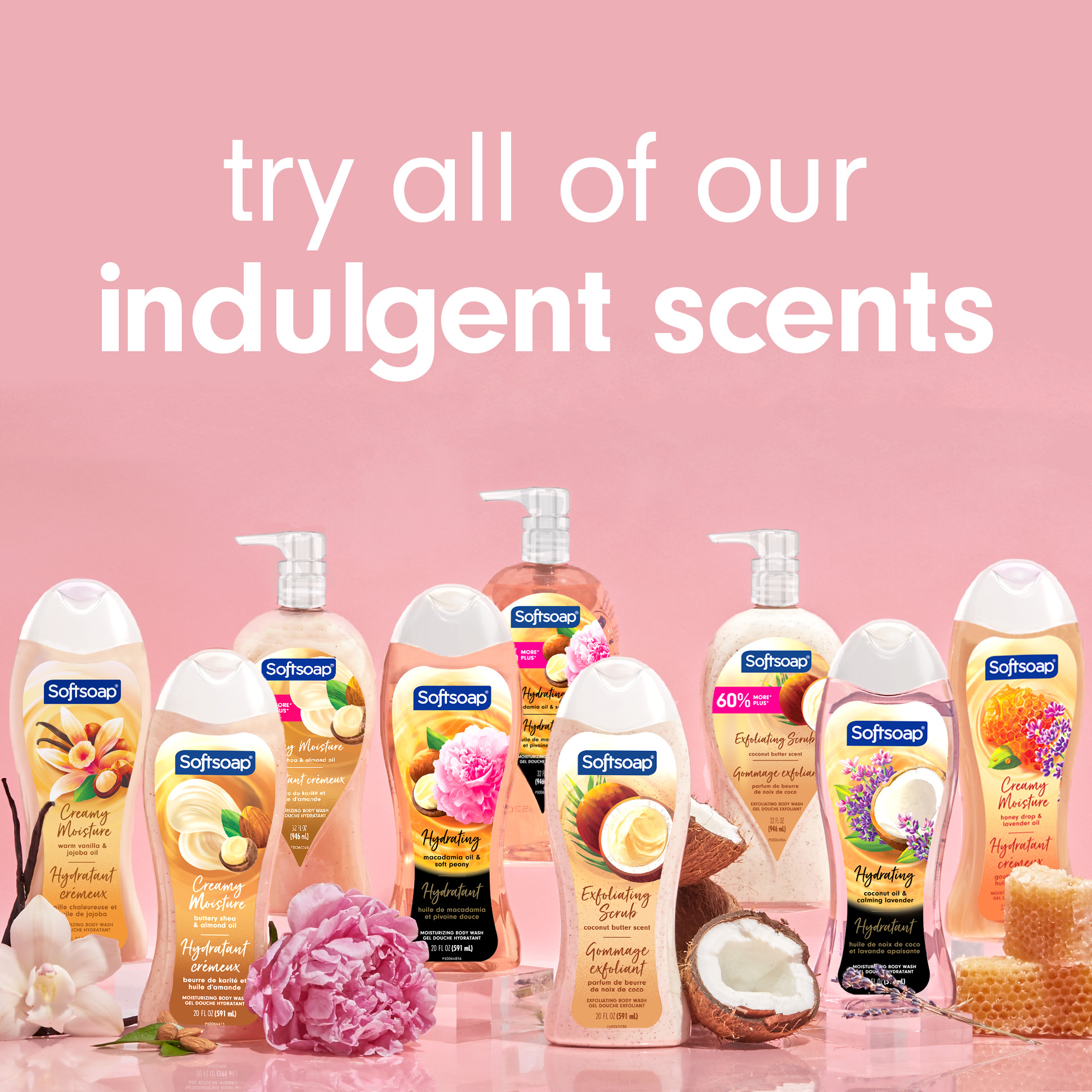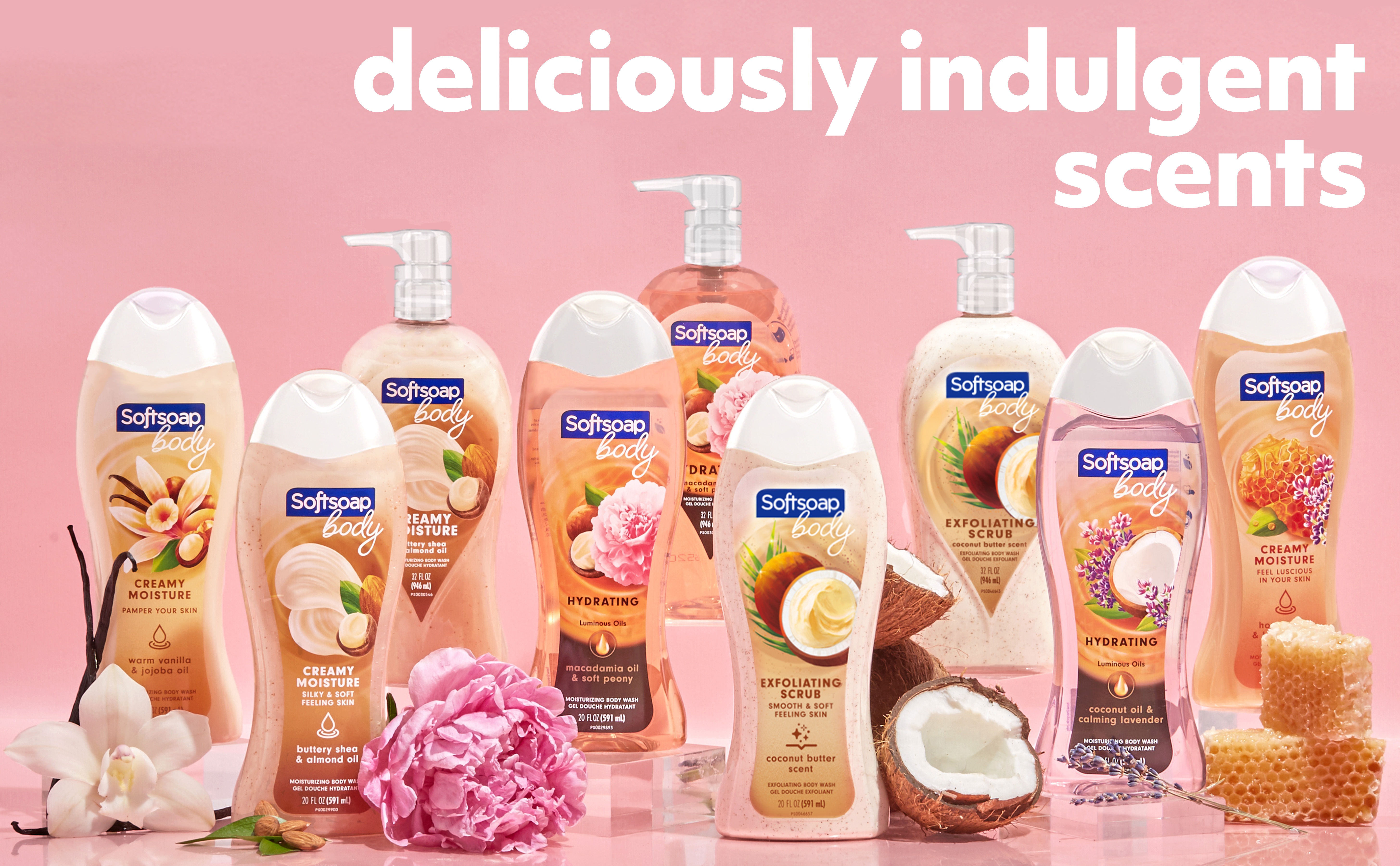 SKU US06076A Consumer Unit - GTIN 00074182473693 Case - GTIN 10074182473690 Product Category Personal Care Product Sub Category Body Wash Product Equity (Brand) Softsoap Product Sub Brand Softsoap Oils BW Product Title Softsoap Moisturizing Body Wash, Luminous Oils Macadamia Oil & Peony - 20 Fluid Ounce Product Description Show your skin some love with Softsoap Luminous Oils Body Wash, Macadamia & Peony, to leave your skin feeling radiant. This delightfully fragrant body wash is made with a touch of real macadamia oil and helps retain skins natural moisture. eCommerce Copy- Long Description Show your skin some love with Softsoap Luminous Oils Body Wash, Macadamia & Peony, to leave your skin feeling radiant. This delightfully fragrant body wash is made with a touch of real macadamia oil and helps retain skins natural moisture. Bullet 1 Moisturizing body wash Bullet 2 Formulated without parabens and phthalates Bullet 3 pH balanced for your skin Bullet 4 Retains skins natural moisture Bullet 5 Dermatologist Tested Bullet 6 with real macadamia oil Bullet 7 Biodegradable cleaning ingredients Bullet 8 Recyclable bottle Walmart RPC 956982203 Walmart URL (Computed) https://www.walmart.com/ip/a/956982203 Albertsons RPC 960549237 Albertsons URL https://www.albertsons.com/shop/product-details.960549237.html CVS RPC 379083 Family Dollar RPC 2007510