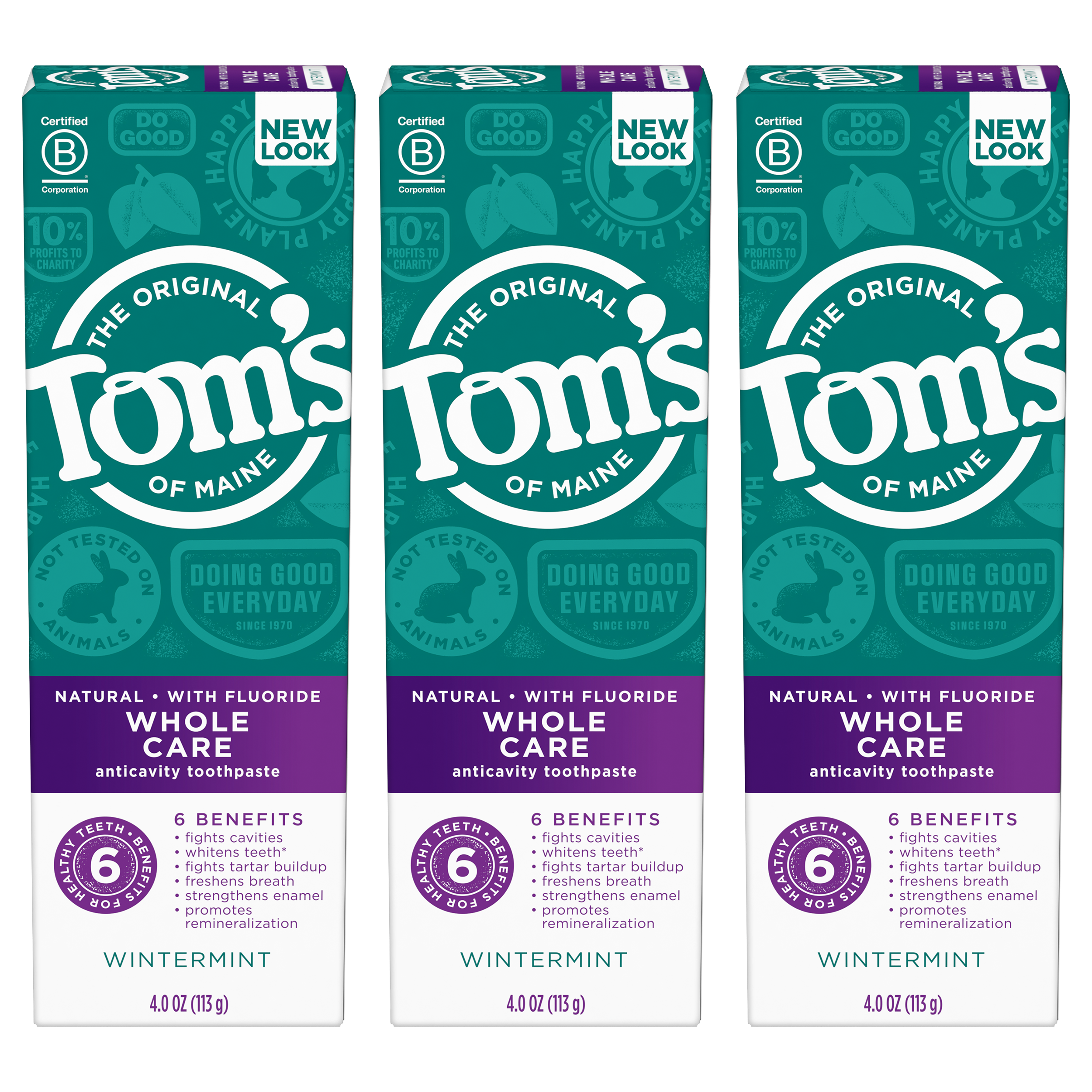 Tom's of Maine Whole Care Natural Toothpaste with Fluoride, Wintermint, 4 oz. 3-Pack