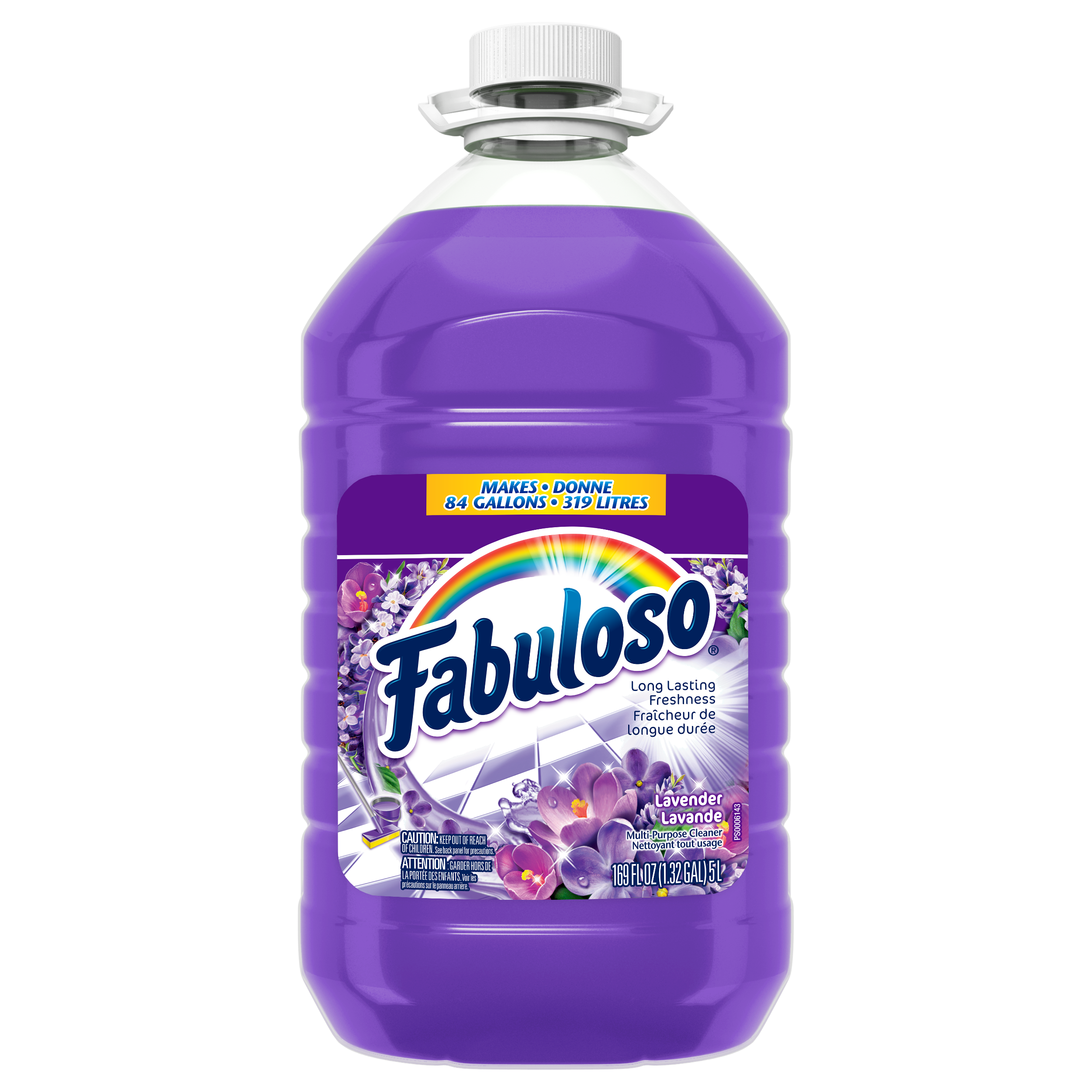 SKU US06249A Consumer Unit - GTIN 00035000999993 Product Category Home Care Product Sub Category Cleaners Liquid / Gel Product Equity (Brand) Fabuloso Product Sub Brand Fabuloso Liq Cln Product Title Fabuloso All Purpose Cleaner, Lavender - 169 fluid ounce Product Description Fabuloso Multi-Purpose Cleaner leaves a fresh scent that lasts. The Lavender fragrance leaves an irresistible scent your family and guests will notice. It comes in a convenient, easy-pour bottle. This Fabuloso cleaner is easy to use, so there is no need to rinse, and it leaves no visible residue. Discover the long-lasting freshness of Fabuloso Multi-Purpose Cleaner that leaves your home shiny, clean, fresh, and fragrant. Bullet 1 Fabuloso is powerful and safe for multi-surfaces Bullet 2 Use Fabuloso® on sinks, toliets, tubs, showers, floors, sealed wood surfaces, appliances, counters, windows, mirrors, walls, doorknobs, and furniture. Bullet 3 No visible residue, No rinsing required Bullet 4 100% Biodegradable Active Ingredients Bullet 5 Responsibly Made** (**to learn more, visit www.colgatepalmolive.com/responsibly-made)