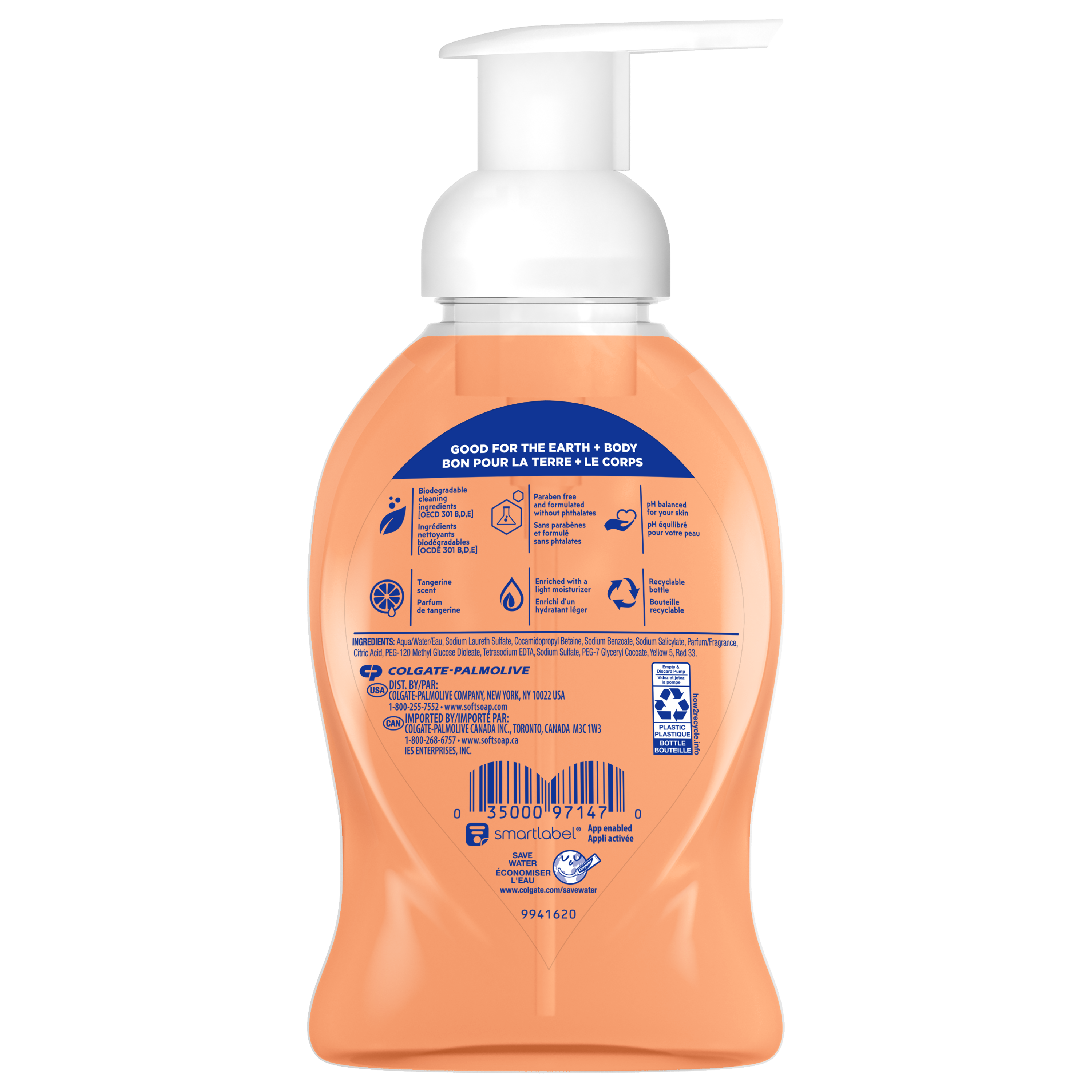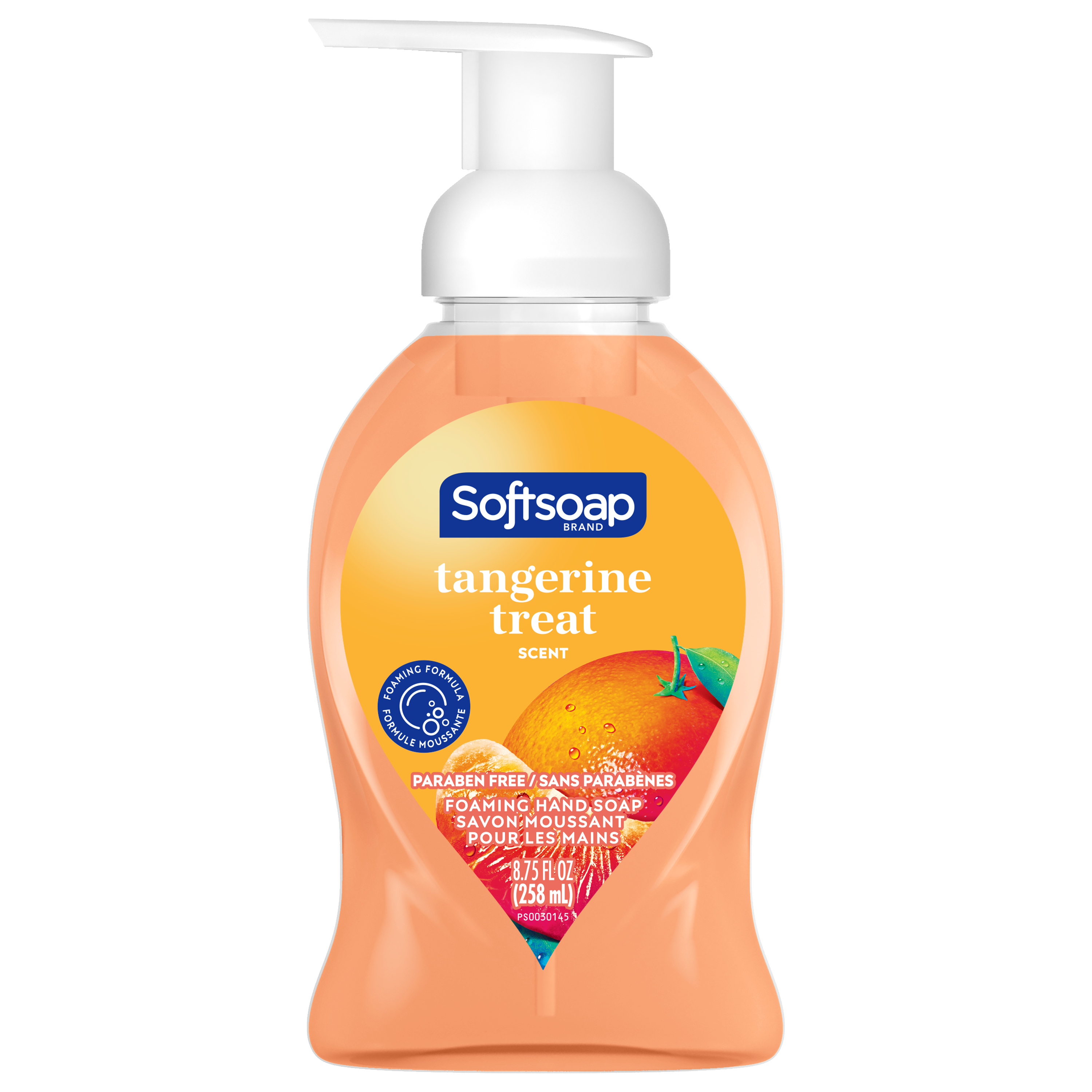 SKU US06391A Consumer Unit - GTIN 00035000971470 Case - GTIN 10035000971477 Product Category Personal Care Product Sub Category Liquid Hand Wash Product Equity (Brand) Softsoap Product Sub Brand Softsoap Companion Foam LHW Product Title Softsoap Foaming Hand Soap, Tangerine Treat - 8.75 Fluid Ounce Product Description Softsoap Foaming Hand Soap, Tangerine Treat makes every hand wash a delightful experience. Indulge your senses and pamper your skin with the decadent scent of tangerine. The fragrance makes every hand wash enjoyable, while rich foam gently cleans skin. Awaken your senses while cleansing your hands with Softsoap Foaming Hand Soap, Tangerine Treat. eCommerce Copy- Long Description Softsoap Foaming Hand Soap, Tangerine Treat makes every hand wash a delightful experience. Indulge your senses and pamper your skin with the decadent scent of tangerine. The fragrance makes every hand wash enjoyable, while rich foam gently cleans skin. Awaken your senses while cleansing your hands with Softsoap Foaming Hand Soap, Tangerine Treat. Bullet 1 Delightful tangerine fragrance Bullet 2 Rich foam to gently clean your hands Bullet 3 Good for the earth and body Bullet 4 Biodegradable cleaning ingredients Bullet 5 Dermatologist tested and pH balanced for your skin Bullet 6 Paraben free and formulated without phthalates Bullet 7 Retains skin's natural moisture Bullet 8 Recyclable bottle