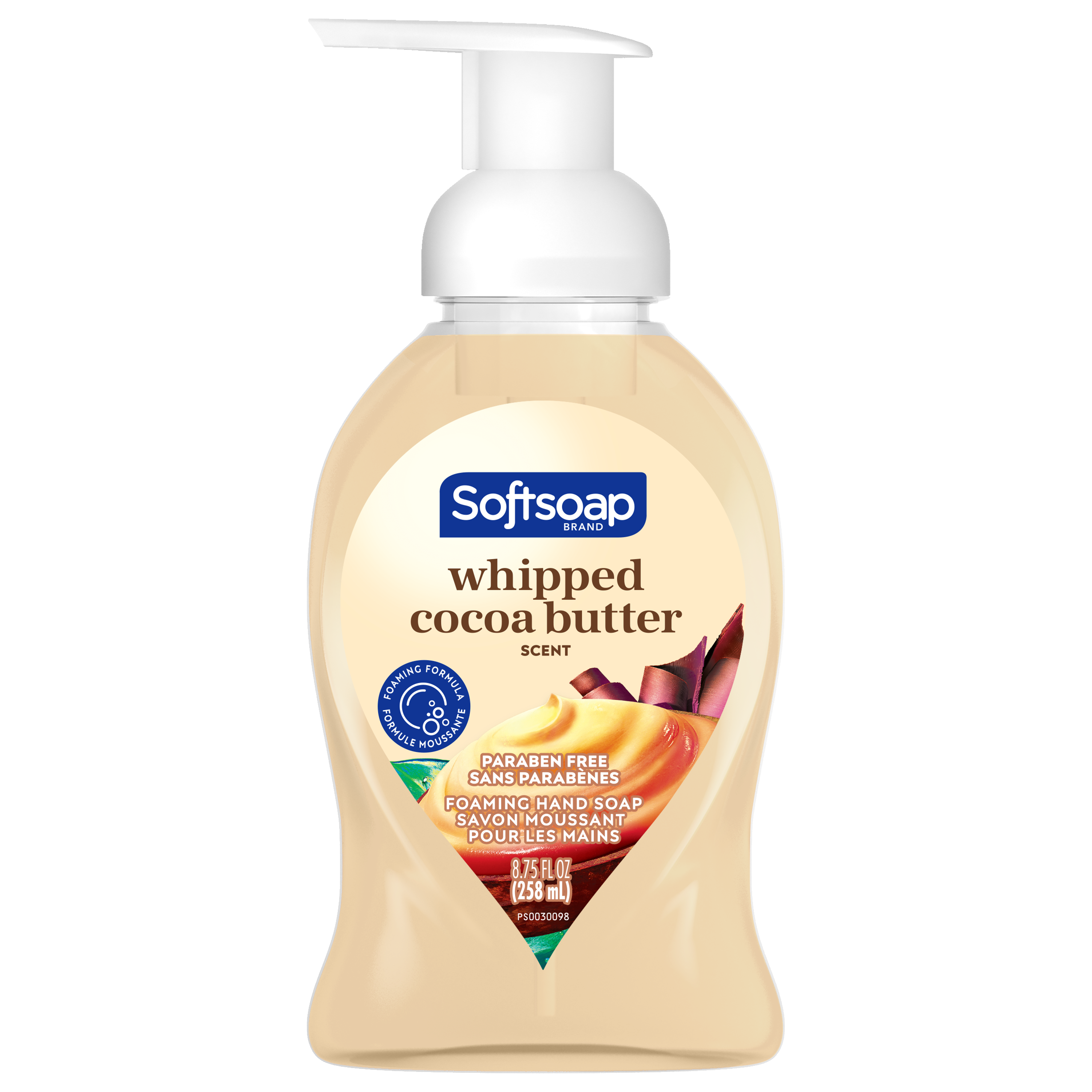 SKU US06392A Consumer Unit - GTIN 00035000971463 Case - GTIN 10035000971460 Product Category Personal Care Product Sub Category Liquid Hand Wash Product Equity (Brand) Softsoap Product Sub Brand Softsoap Companion Foam LHW Product Title Softsoap Foaming Hand Soap, Whipped Cocoa Butter - 8.75 Fluid Ounce Product Description Softsoap Foaming Hand Soap, Whipped Cocoa Butter makes every hand wash a delightful experience. Indulge your senses and pamper your skin with the decadent scent of cocoa butter. The fragrance makes every hand wash enjoyable, while rich foam gently cleans skin. Awaken your senses while cleansing your hands with Softsoap Foaming Hand Soap, Whipped Cocoa Butter. eCommerce Copy- Long Description Softsoap Foaming Hand Soap, Whipped Cocoa Butter makes every hand wash a delightful experience. Indulge your senses and pamper your skin with the decadent scent of cocoa butter. The fragrance makes every hand wash enjoyable, while rich foam gently cleans skin. Awaken your senses while cleansing your hands with Softsoap Foaming Hand Soap, Whipped Cocoa Butter. Bullet 1 Delightful whipped cocoa fragrance with cocoa butter extracts Bullet 2 Rich foam to gently clean your hands Bullet 3 Good for the earth and body Bullet 4 Biodegradable cleaning ingredients Bullet 5 Dermatologist tested and pH balanced for your skin Bullet 6 Paraben free and formulated without phthalates Bullet 7 Retains skin's natural moisture Bullet 8 Recyclable bottle