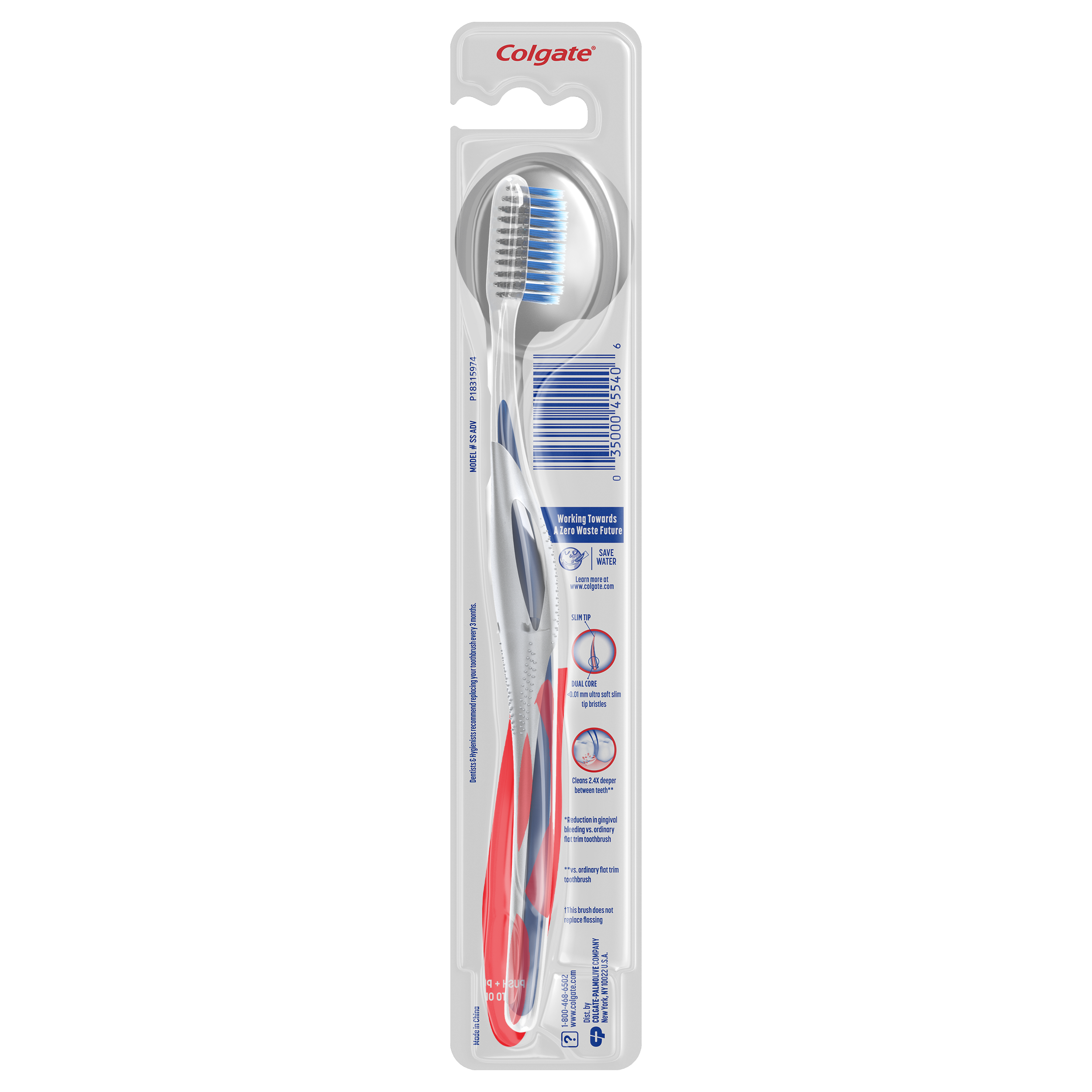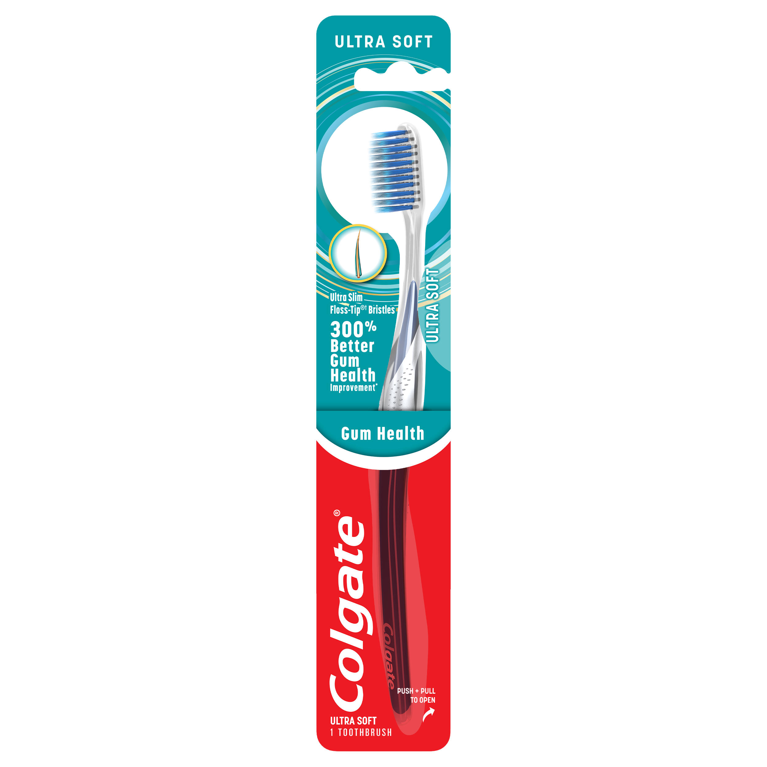 *** Ultra soft toothbrush reduces gingival bleeding vs. regular soft flat trim toothbrusheCommerce Copy- Long Description The Colgate Gum health extra soft toothbrush features 100% of our ultra Slim, Floss-Tip bristles* which cause significantly less gum irritation and yet clean 2.4x deeper between teeth**. A study has shown 300% better gum health improvement*** over time using this gum toothbrush, which means a reduction in gum bleeding.<lt/>br/<gt/><lt/>br/<gt/>*This brush does not replace flossing<lt/>br/<gt/> ** Vs. regular soft flat trim toothbrush <lt/>br/<gt/> *** Ultra soft toothbrush reduces gingival bleeding vs. regular soft flat trim toothbrush Bullet 1 Extra soft toothbrush bristles Bullet 2 Gently cleans 2.4x deeper between teeth* Bullet 3 Significantly less gum irritation & gum bleeding* Bullet 4 Helps remove odor-causing bacteria Bullet 5 Colors may vary Bullet 6 *vs. ordinary Colgate flat trim toothbrushes Amazon RPC B07YQL2C49 AMZ URL https://www.amazon.com/dp/B07YQL2C49