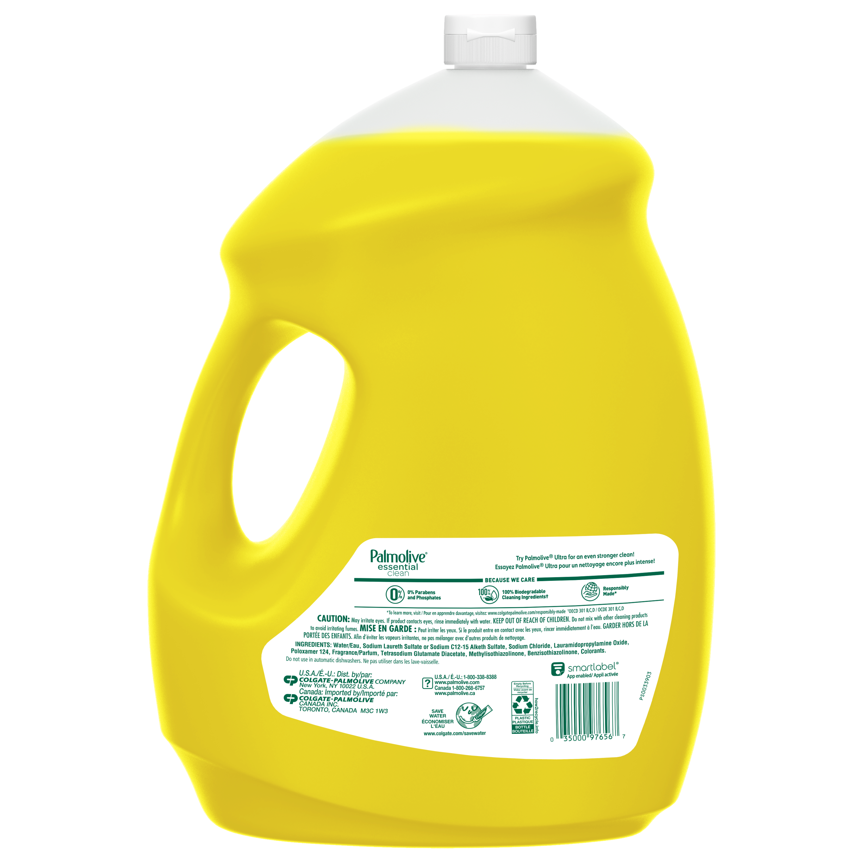 SKU US06723A Consumer Unit - GTIN 00035000976567 Case - GTIN 10035000976564 Product Category Home Care Product Sub Category Dish Hand Product Equity (Brand) Palmolive Product Sub Brand Palmolive Essential Clean HD Product Title Palmolive Essential Clean Liquid Dish Soap, Lemon Citrus Zest - 5 Liter Product Description Palmolive Essential Clean Original liquid dish soap is designed to be tough on grease but soft on hands. It removes stubborn food grime and particles from your plates. This phosphate-free dishwashing detergent with iconic Palmolive original green scent offers you a basic cleaning action you can always rely on! eCommerce Copy- Long Description Palmolive Essential Clean Original liquid dish soap is designed to be tough on grease but soft on hands. It removes stubborn food grime and particles from your plates. This phosphate-free dishwashing detergent with iconic Palmolive original green scent offers you a basic cleaning action you can always rely on! Bullet 1 Original Green Scent Bullet 2 Liquid Dish Soap Bullet 3 Tough on Grease, Soft on Hands Bullet 4 Phosphate free Bullet 5 Kosher