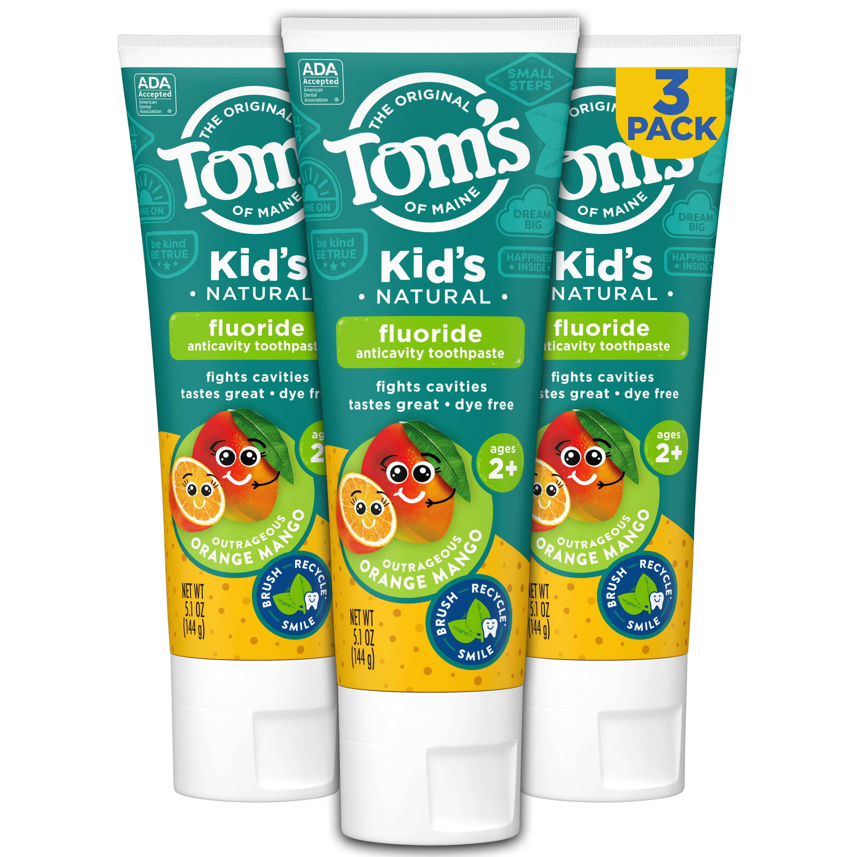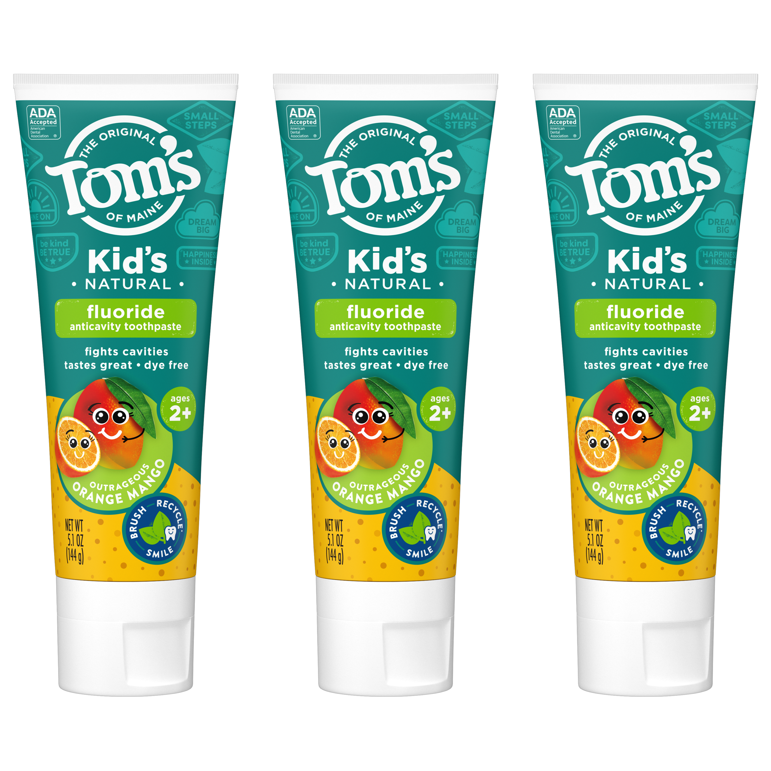 Tom's of Maine Kids Natural Toothpaste with Fluoride for Ages 2+, ADA Approved, Outrageous Orange Mango, 5.1 ounces (3 Pack)