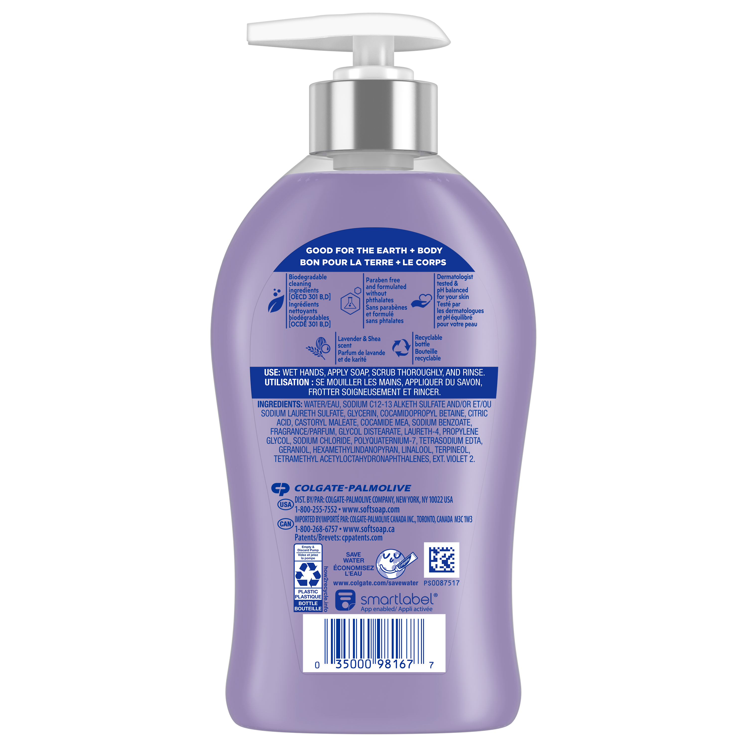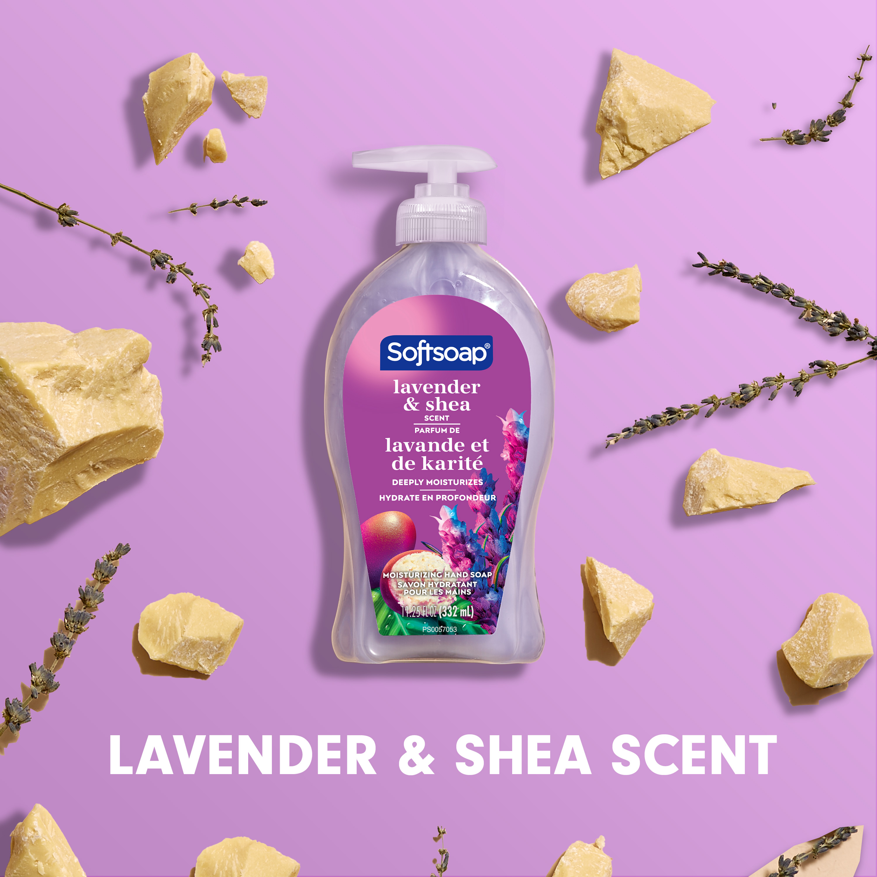 SKU US07058A Consumer Unit - GTIN 00035000981677 Case - GTIN 10035000981674 Product Category Personal Care Product Sub Category Liquid Hand Wash Product Equity (Brand) Softsoap Product Sub Brand Softsoap LHW Product Title Softsoap Lavender and Shea Moisturizing Liquid Hand Soap, 11.25 oz Bottle Product Description From the #1 liquid hand soap brand (1) comes a deeply moisturizing hand soap with a lavender and shea scent. With its beautiful bottle design and modern pump head, Softsoap's Lavender and Shea Moisturizing Liquid Hand Soap perfectly complements the elegance of your bathroom or kitchen sink. This fun pink hand soap with its sweet and floral scent will infuse joy into the smallest moments. This scented hand soap deeply moisturizes to hydrate dry skin, all while effectively washing away bacteria for clean and fresh hands. The creamy formula hydrates dry skin, leaving your hands feeling soft and smooth. Our dermatologist tested formula retains skin’s natural moisture and is formulated without parabens and phthalates. This liquid hand soap is one you’ll want to keep on your sink to infuse every small moment with joy. (1) Based in part on data reported by Nielsen through its Market Track Service for the Liquid Hand Soap Category for the 52 week period ending 07/01/23, for the All Outlet market. Copyright © 2023 Nielsen. eCommerce Copy- Long Description From the #1 liquid hand soap brand† comes a deeply moisturizing hand soap with a Lavender & Shea scent. This Lavender & Shea scented Softsoap hand soap is one you’ll want to keep on your sink to infuse every small moment with joy. This moisturizing hand soap deeply moisturizes to hydrate dry skin, all while effectively washing away bacteria for clean and fresh hands. Feel the joy of clean with Softsoap hand soap! †Based in part on data reported by Nielsen through its Market Track Service for the Liquid Hand Soap Category for the 52 week period ending 12/23/23, for the All Outlet market. Copyright © 2023 Nielsen. Great Clean. For Everyone. Confidently wash your hands with Softsoap while enjoying fragrant scents and fun labels that will bring you joy. For everyone, every mood, and every sink, Softsoap hand soap is designed to make you feel joyfully clean. Use Softsoap Lavender & Shea scented liquid hand soap in the bathroom or the kitchen to uplift every small moment while keeping your hands clean. Feel Good About Washing Your Hands This liquid hand soap washes away bacteria and is an effective way to keep hands clean. Plus, this liquid soap is paraben free and formulated without phthalates, and retains skin’s natural moisture, so you can feel good about washing your hands. Feel the Joy of Clean We believe that the little moments throughout your day should be fun! With delightful bubbles and fragrant scents, every trip to the sink and every shower leaves you feeling uplifted. Enjoy those small moments of joy, get brilliantly clean with our liquid hand soaps and body washes—now, you’re ready to take on the world! Bullet 1 One 11.25 oz Bottle of Softsoap Lavender and Shea Moisturizing Liquid Hand Soap Pump - The #1 Liquid Hand Soap Brand (1) Bullet 2 This fun pink hand soap with it's sweet and floral scent will infuse joy into the smallest moments Bullet 3 With its beautiful bottle design and modern pump head, it perfectly complements the elegance of your bathroom or kitchen sink Bullet 4 The creamy formula hydrates dry skin, leaving your hands feeling soft and smooth Bullet 5 Elevate your senses while effectively washing away bacteria with this moisturizing hand soap Amazon RPC B08KK953ZL AMZ URL https://www.amazon.com/dp/B08KK953ZL Walmart RPC 950326862 Walmart URL (Computed) https://www.walmart.com/ip/a/950326862 Albertsons RPC 970066557 Albertsons URL https://www.albertsons.com/shop/product-details.970066557.html CVS RPC 452248 Family Dollar RPC 2094393