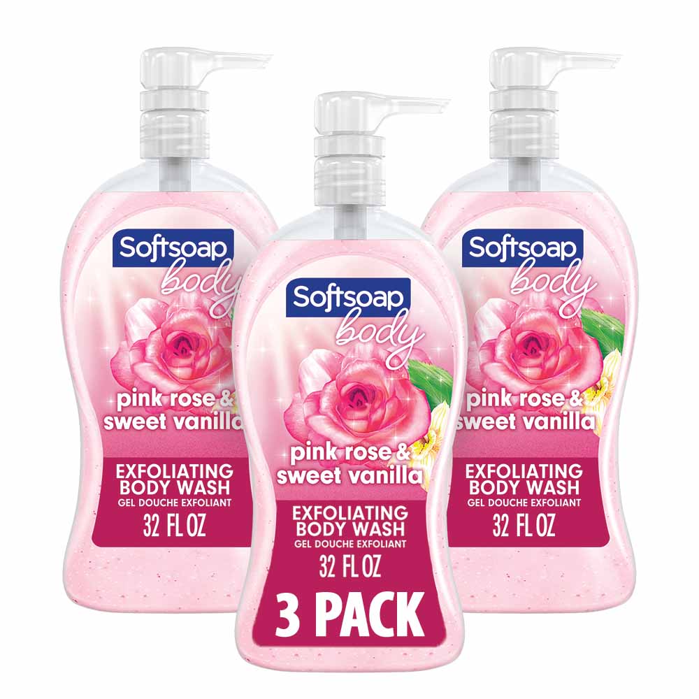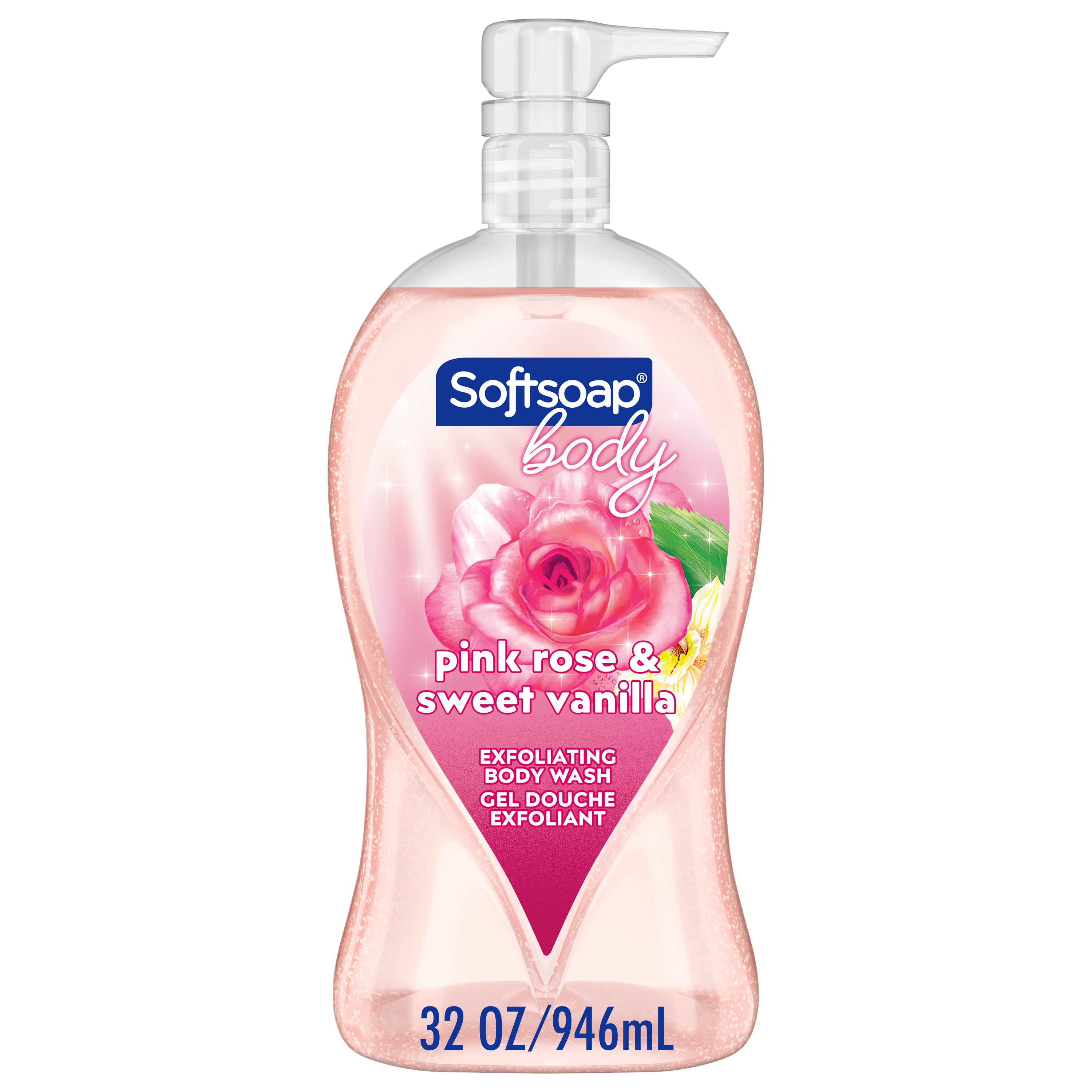 Softsoap Body Pink Rose & Sweet Vanilla Scent Body Wash, Exfoliating Body Wash - 32 Fluid Ounce Pump
