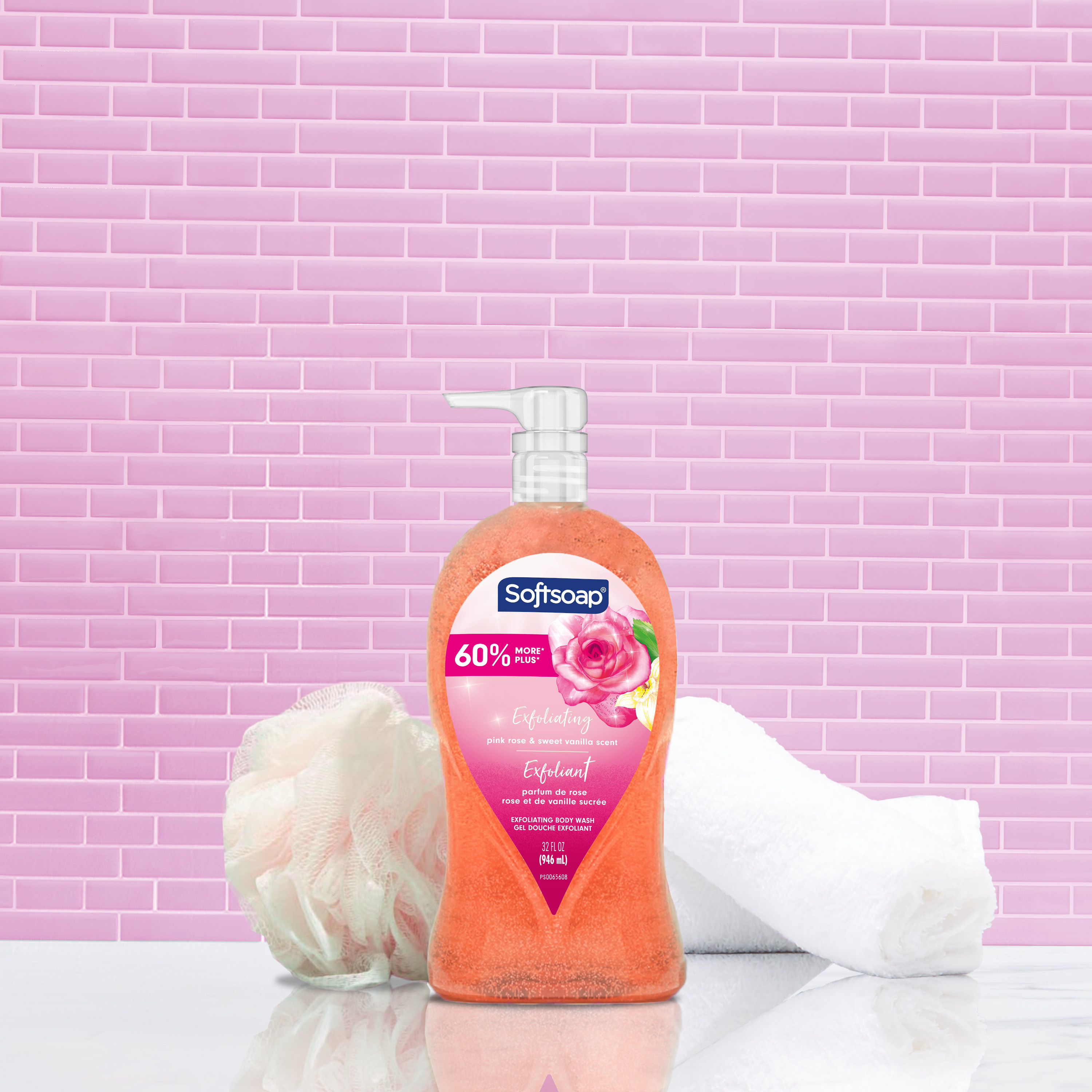 Softsoap Exfoliating Body Wash Scrub Pink Rose and Sweet Vanilla Scent, 32 oz Pump Bottle