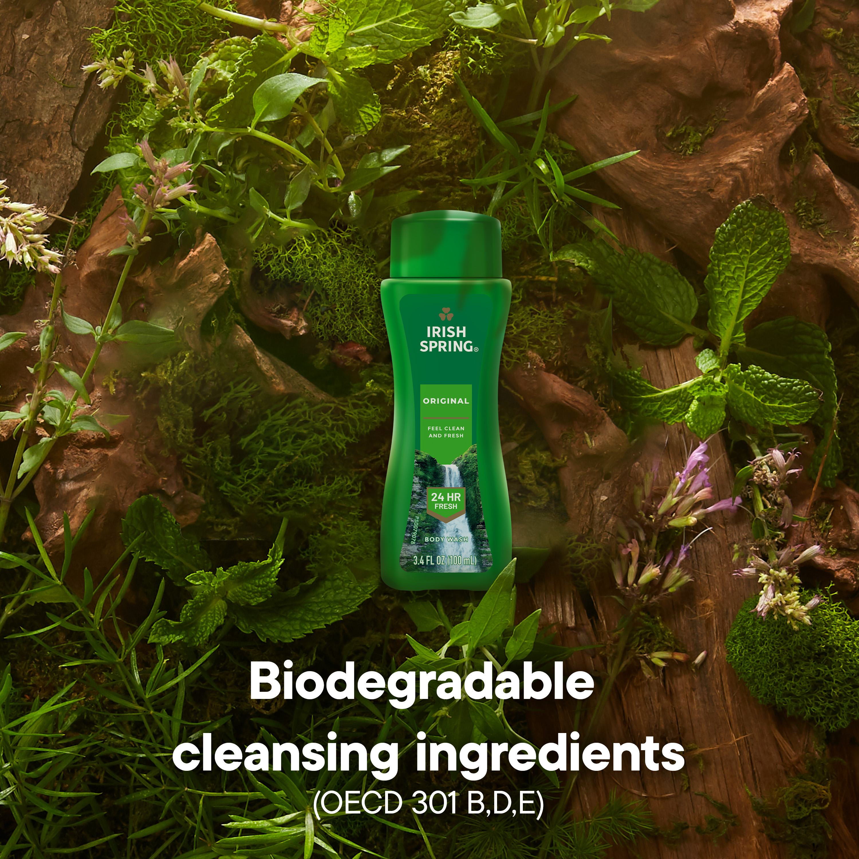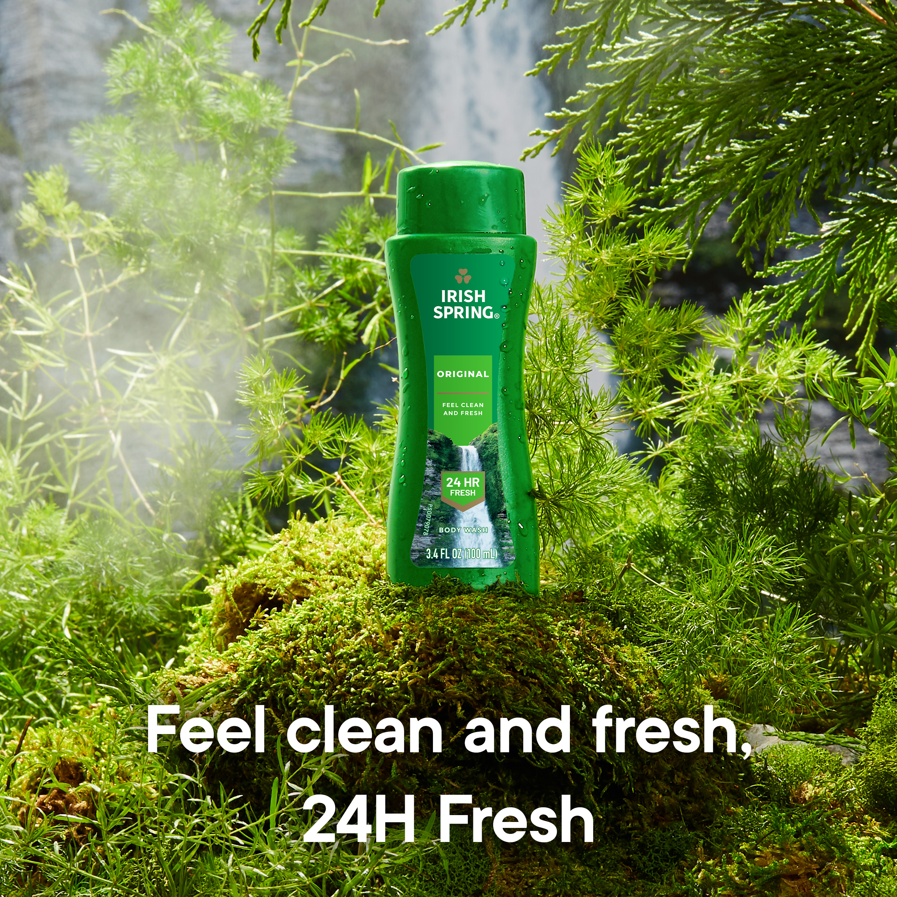 Irish Spring Original Moisturizing Body Wash for Men, 24-Hour Fresh, Face and Body Wash, Men’s Body Wash, Biodegradable Ingredients, Paraben Free, Cool Fresh Scent, 3.4 fl oz Bottle