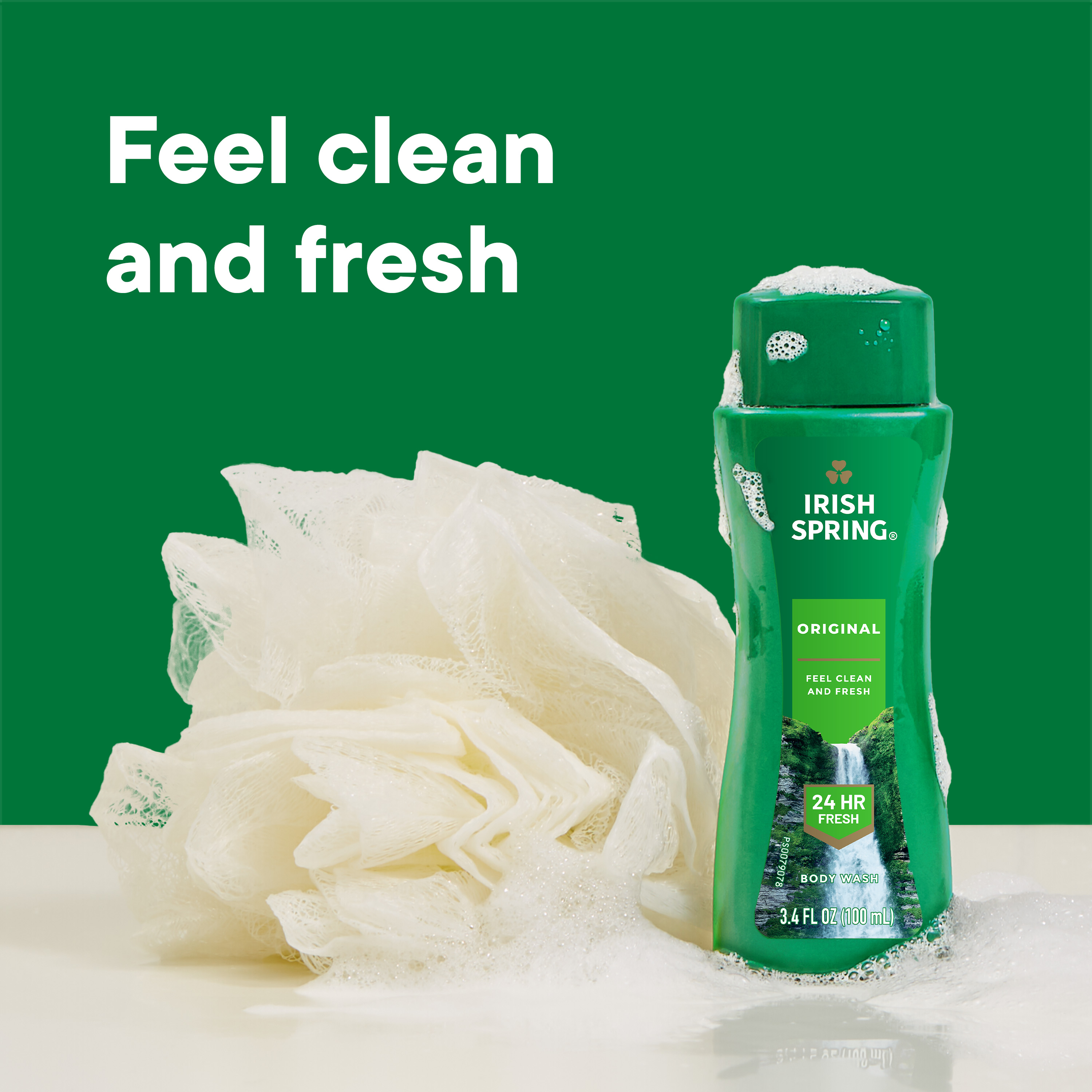 SKU US07258A Consumer Unit - GTIN 00035000984494 Case - GTIN 10035000984491 Product Category Personal Care Product Sub Category Body Wash Product Equity (Brand) Irish Spring Product Sub Brand Irish Spring BW Product Title Irish Spring Original Moisturizing Body Wash for Men, 24-Hour Fresh, Face and Body Wash, Men’s Body Wash, Biodegradable Ingredients, Paraben Free, Cool Fresh Scent, 3.4 fl oz Bottle Product Description Start your day with the invigorating clean of Irish Spring Original Body and Face Wash for Men, designed to provide 24 hours of long-lasting freshness. Infused with a cool, outdoor-fresh scent, it brings the essence of nature to every wash, so you are ready to take on the day. It’s also paraben free and formulated without phthalates. Our body wash for men is specially crafted to retain your skin’s natural moisture. Designed for use on both the face and body, it simplifies your daily routine while delivering the same refreshing experience you expect from Irish Spring. Irish Spring has a new cap with leak-proof design ensuring you stay fresh no matter where your journey takes you. eCommerce Copy- Long Description Feel clean, smell serene with Irish Spring Body Wash. Count on Irish Spring Original Body Wash, formerly our Original body wash, to leave your skin feeling clean — our original body wash for men retains skin’s natural moisture while keeping you fresh for 24 hours. Our bottle might have a new design, but it’s still the same great body wash you love to smell. Our packaging refresh is all part of our master plan to bring the amazing places you love to smell straight to your bathroom. Plus, the larger size body wash bottle gives you more smell in a sleeker design, so you don’t have to replace it as often. Irish Spring Original Body Wash has a sudsy lather that washes away bacteria, so you can use it as a face wash or hand soap and feel good while washing from head-to-toe with Irish Spring. Made with biodegradable cleansing ingredients, this men’s shower gel is paraben free and formulated without phthalates. Get as fresh as the great outdoors and add some adventure to your everyday with the whole Spring of bar soaps and body washes for men. Smell like you came from a nice-smelling place with the new Irish Spring. Bullet 1 What’s Included: One 3.4 fl oz trial size bottle of Irish Spring Original Face and Body Wash for Men Bullet 2 Feel Clean and Fresh: Enjoy 24 hours of long-lasting freshness Bullet 3 Retains Skin’s Natural Moisture: Use as a men’s body wash or face wash Bullet 4 Cap With Leak-Proof Design: Comes with a new cap with leak-proof design so you can stay fresh no matter where your journey takes you Bullet 5 Feeling Clean: Formulated without phthalates and parabens leaving you clean Bullet 6 Refreshing Scent: That cool outdoor Freshness? We’ve got it bottled Bullet 7 No Luck Required: Fresh. Green. Irish Amazon RPC B09Q1L39F1 AMZ URL https://www.amazon.com/dp/B09Q1L39F1 Walmart RPC 943096067 Walmart URL (Computed) https://www.walmart.com/ip/a/943096067 Family Dollar RPC 2095730