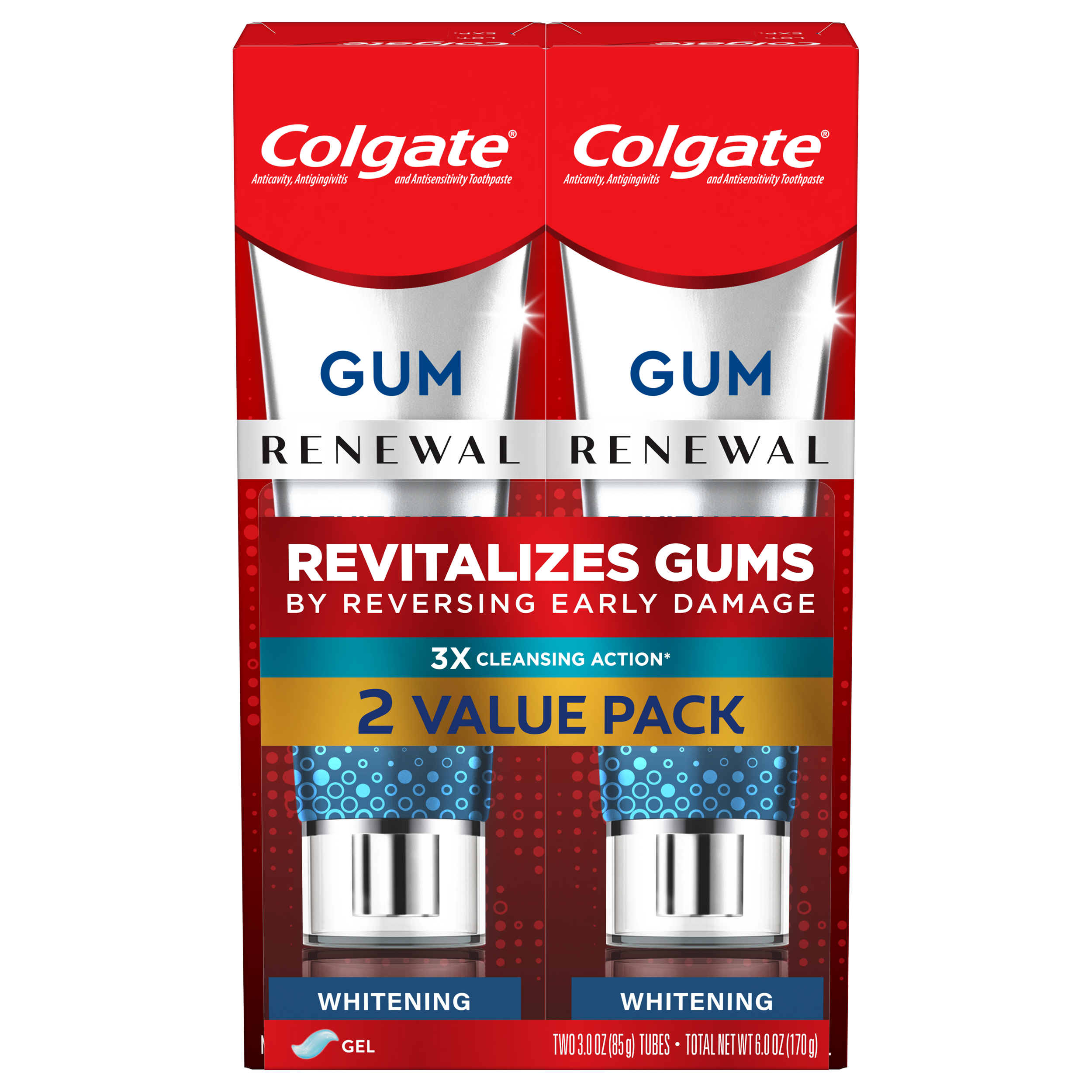 Colgate Renewal Gum Toothpaste, Whitening Restoration - Cool Mint Gel Formula (3 ounce, Pack of 2)