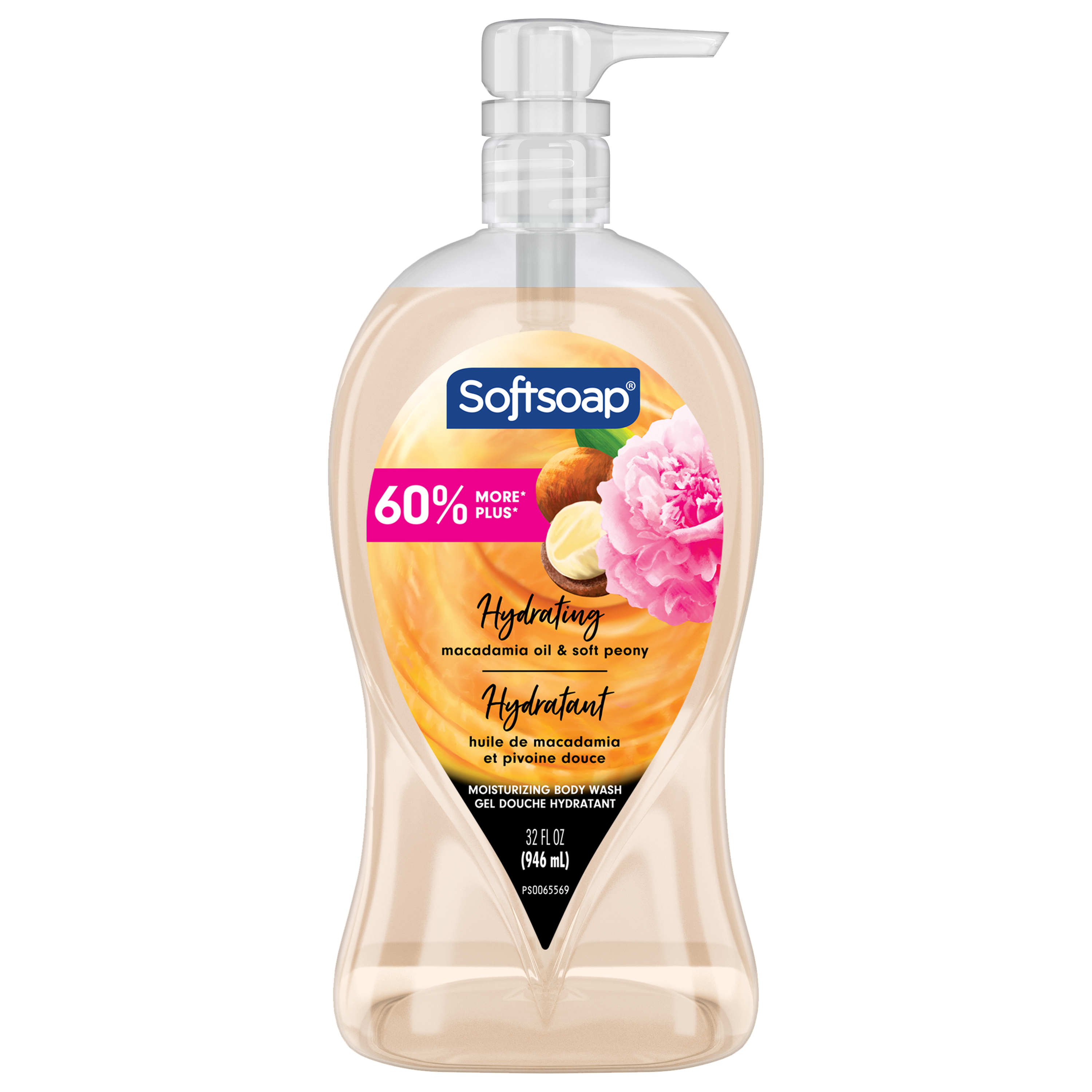 Product Title Softsoap Body Macadamia Oil & Soft Peony Scent Body Wash, 946 mL SKU 128352 SKU eCommerce Name Softsoap Body Macadamia Oil & Soft Peony Scent Body Wash, 946 mL Consumer Unit - GTIN 00074182283520 Case - GTIN 10074182283527 Product Category Personal Care Product Sub Category Body Wash Brand Softsoap Product Sub Brand Softsoap Oils BW Consumer Unit Gross Weight 1.084 KG / 2.390 LB Consumer Unit Net Weight 0.965 KG / 2.128 LB Consumer Unit Length 74.000 MM / 2.913 IN Consumer Unit Width 100.000 MM / 3.937 IN Consumer Unit Height 242.000 MM / 9.528 IN Consumer Unit Volume 1.756 C8 / 0.062 CF Product Title Softsoap Body Macadamia Oil & Soft Peony Scent Body Wash, 946 mL eCommerce Copy Pamper your skin and senses with Softsoap Luminous Oils Body Wash, Macadamia & Peony. Made with real macadamia oil, this formula will leave your skin feeling radiant and soft. eCommerce Copy- Long Description Softsoap Body Macadamia Oil & Soft Peony Scent, 946 mL Softsoap Body Macadamia Oil & Soft Peony Scent Body Wash gives you a delightfully moisturizing yet effective clean. This body wash is made with real macadamia oil. This luminous oil body wash retains skin’s moisture and is dermatologist tested and pH balanced for your skin. Feel the joy of clean with Softsoap Body! New Look, Same Great Clean Softsoap labels may have a fresh look, but they still deliver the same great clean and same great scents. Confidently wash with Softsoap Body while enjoying fragrant scents and fun labels that will bring you joy. For everyone, every mood, and every shower, Softsoap Body is designed to make you joyfully clean. Softsoap Body Macadamia Oil & Soft Peony Scent body wash is the perfect way to add a moment of joy to your life. Feel Good About Your Body Wash This body wash formula retains skin’s natural moisture and is made with biodegradable cleaning ingredients. Plus, this body wash is formulated without parabens or phthalates, so you can feel good about your body wash. Feel the Joy of Clean At Softsoap, we believe that the little moments throughout your day should be fun! With delightful bubbles and surprisingly fragrant scents, every trip to the sink and every shower leaves you feeling uplifted. Enjoy those small moments of joy and get brilliantly clean with Softsoap liquid hand soaps and body washes—now, you’re ready to take on the world! Keywords (eCommerce) bodywash, best, womens, bath gel, bath wash, body gel, hydrating, creamy, great scent, dry skin, sensitive, non-irritating, shower gel, great smelling, soft skin, non-greasy, rich, premium, thick, healthy skin, pump, value size Walmart Bullet 1 Moisturizing body wash pump Walmart Bullet 2 Formulated without parabens and phthalates Walmart Bullet 3 pH balanced for your skin Walmart Bullet 4 Retains skins natural moisture Walmart Bullet 5 Dermatologist Tested Walmart Bullet 6 with real macadamia oil Walmart Bullet 7 Biodegradable cleaning ingredients Walmart Bullet 8 Recyclable bottle Walmart Bullet 9 Suitable for all ages and all skin types.