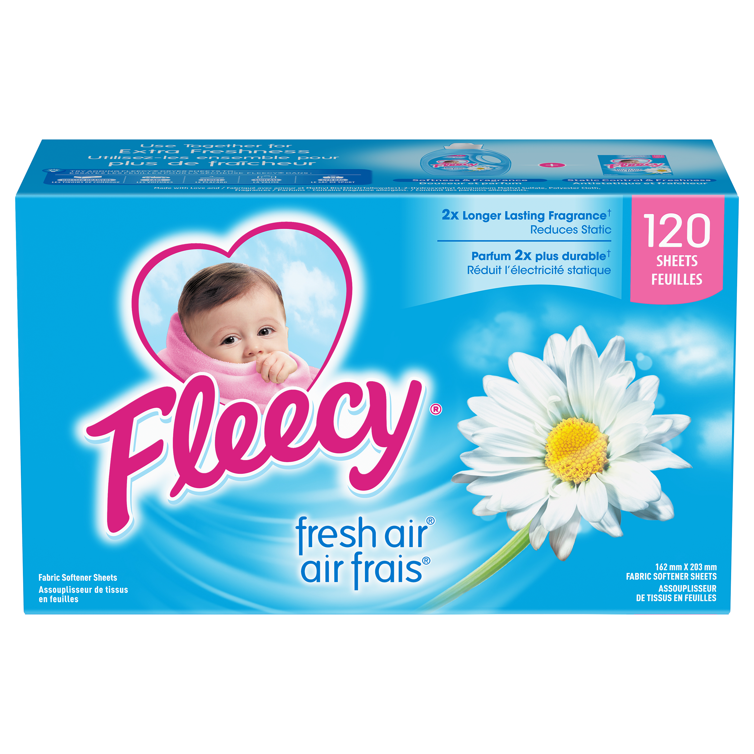 Fleecy Fabric Softener Dryer Sheets, Fresh Air, 120 sheets