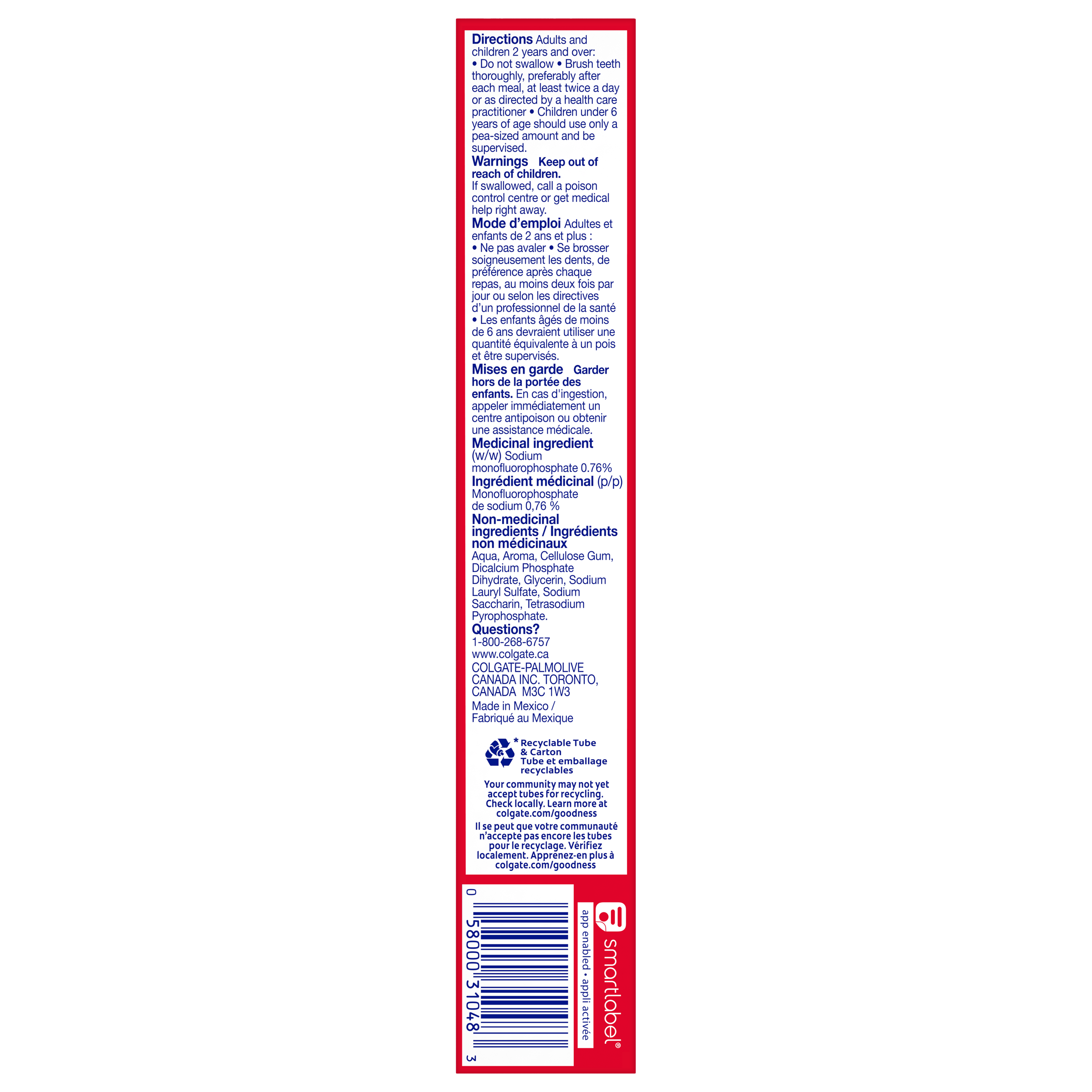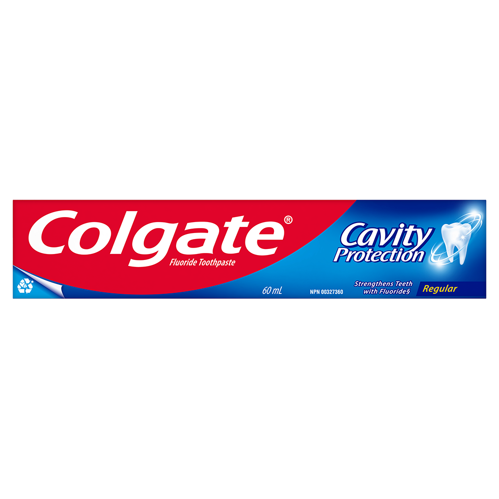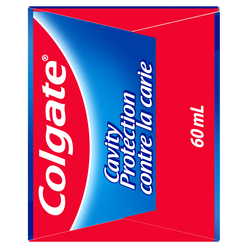Product Title Colgate Cavity Protection Fluoride Toothpaste, Regular, Travel Size, 60 mL SKU 313498 SKU eCommerce Name Colgate Cavity Protection Fluoride Toothpaste, Regular, Travel Size, 60 mL Consumer Unit - GTIN 00058000310483 Case - GTIN 00058000134980 Product Category Oral Care Product Sub Category Toothpaste Brand Colgate Product Sub Brand Colgate Maximum Cavity Protection TP Consumer Unit Gross Weight 0.104 KG / 0.229 LB Consumer Unit Net Weight 0.087 KG / 0.192 LB Consumer Unit Length 39.000 MM / 1.535 IN Consumer Unit Width 184.000 MM / 7.244 IN Consumer Unit Height 32.000 MM / 1.260 IN Consumer Unit Volume 0.224 C8 / 0.008 CF Product Title Colgate Cavity Protection Fluoride Toothpaste, Regular, Travel Size, 60 mL eCommerce Copy- Long Description Colgate Cavity Protection provides trusted cavity protection for the entire family. Formulated with fluoride, it is clinically proven to help strengthen teeth by repairing weak spots and leaves your mouth feeling fresh and clean. Plus, it comes with a great mint taste that the whole family will enjoy. Keywords (eCommerce) tooth paste, toothpastes, paste, best, odor, great taste, mint, halitosis, teeth, tooth wash, clean, foaming, stain removal, whitening, gumline, tartar control, fluoride, anticavity, adult, value, family, fresh breath, freshens, clean mouth, whitening, whiter teeth, stain removal