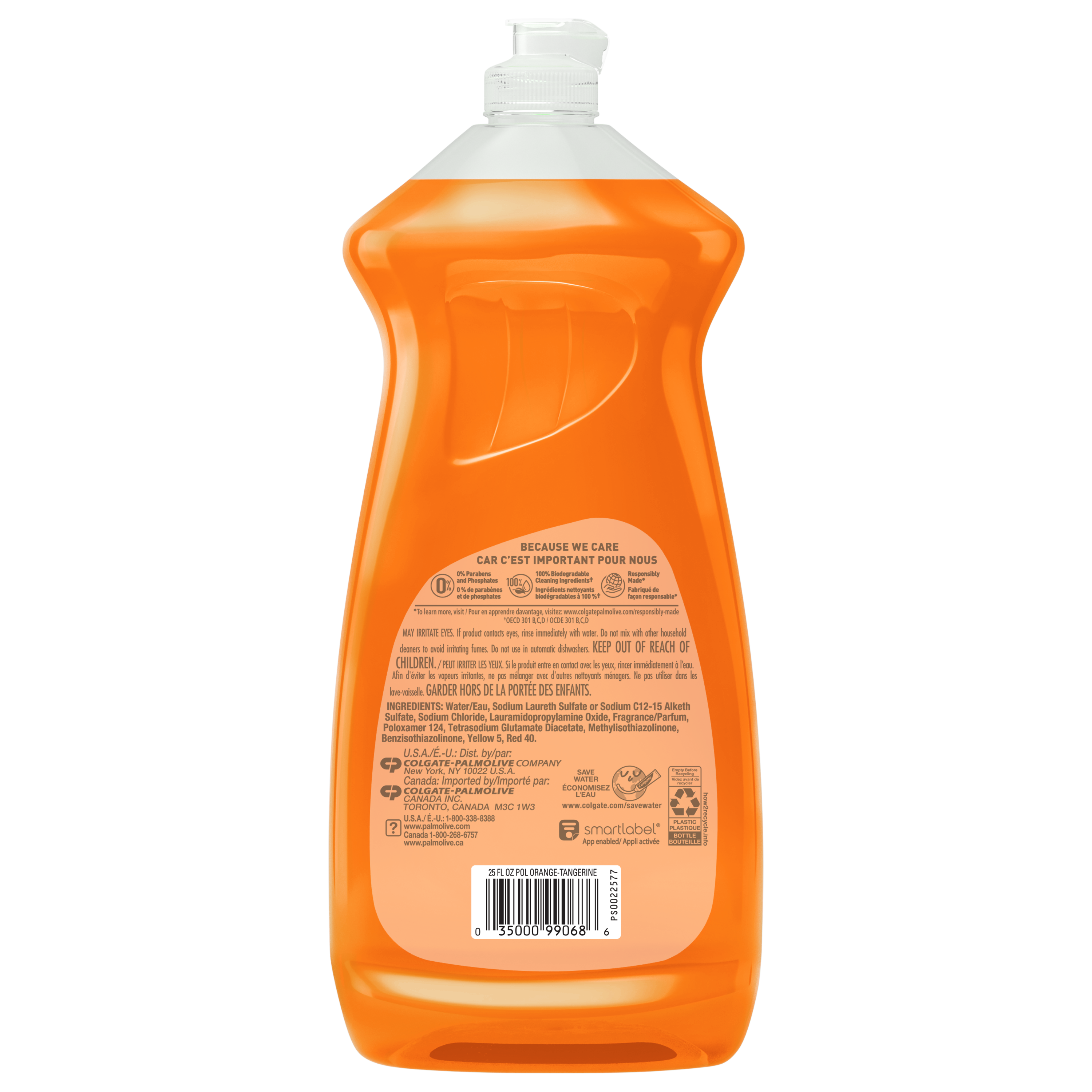 Product Title Palmolive Essential Clean Liquid Dish Soap, Orange Tangerine Scent - 739 mL SKU 61012539 SKU eCommerce Name Palmolive Essential Clean Liquid Dish Soap, Orange Tangerine Scent - 739 mL Consumer Unit - GTIN 00035000990686 Case - GTIN 10035000990683 Product Category Home Care Product Sub Category Dish Hand Brand Palmolive Product Sub Brand Palmolive Essential Clean HD Consumer Unit Gross Weight 0.783 KG / 1.727 LB Consumer Unit Net Weight 0.762 KG / 1.680 LB Consumer Unit Length 54.000 MM / 2.126 IN Consumer Unit Width 99.000 MM / 3.898 IN Consumer Unit Height 266.000 MM / 10.472 IN Consumer Unit Volume 1.422 C8 / 0.050 CF Product Title Palmolive Essential Clean Liquid Dish Soap, Orange Tangerine Scent - 739 mL eCommerce Copy Palmolive Essential Clean Liquid Dish Soap is tough on grease, yet gentle on hands. This phosphate-free, Orange Tangerine-scented dish soap delivers cleaning action you can always count on! eCommerce Copy- Long Description Palmolive Essential Clean Orange Tangerine Scent: Tough on Grease, Soft on Hands