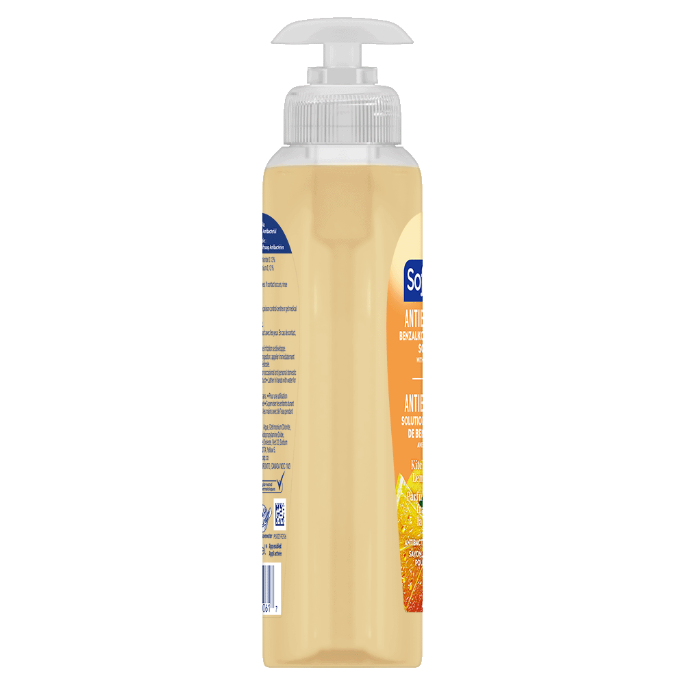 Product Title Softsoap Antibacterial Liquid Hand Soap, Kitchen Fresh Hand Soap, 332 mL SKU 61020131 SKU eCommerce Name Softsoap Antibacterial Liquid Hand Soap, Kitchen Fresh Hand Soap, 332 mL Consumer Unit - GTIN 00827854000617 Case - GTIN 10827854000614 Product Category Personal Care Product Sub Category Liquid Hand Wash Brand Softsoap Product Sub Brand Softsoap LHW Consumer Unit Gross Weight 0.376 KG / 0.829 LB Consumer Unit Net Weight 0.335 KG / 0.739 LB Consumer Unit Length 45.000 MM / 1.772 IN Consumer Unit Width 84.000 MM / 3.307 IN Consumer Unit Height 184.000 MM / 7.244 IN Consumer Unit Volume 0.680 C8 / 0.024 CF Product Title Softsoap Antibacterial Liquid Hand Soap, Kitchen Fresh Hand Soap, 332 mL eCommerce Copy Softsoap Antibacterial Liquid Hand Soap, Kitchen Fresh Hands contains benzalkonium chloride which is proven to kill harmful bacteria/germs. The fresh lemon scent of this antibacterial hand soap makes this the perfect addition to any kitchen or bathroom. Due to its antibacterial formula, the liquid hand soap pump should only be refilled with Softsoap Antibacterial Liquid Hand Soap. It is best to wash hands with soap and clean running water for 30 seconds eCommerce Copy- Long Description From the #1 liquid hand soap brand†, comes Softsoap Antibacterial Kitchen Fresh Hands Scented Liquid Hand Soap. With a clean citrus scent, this antibacterial hand soap effectively cleans hands while infusing small moments with joy. Softsoap Antibacterial Kitchen Fresh liquid hand soap is enriched with moisturizers and helps protect skin’s natural barrier by retaining skin’s natural moisture. Feel the joy of clean with Softsoap hand soap! †Based in part on data reported by Nielsen through its Market Track Service for the Liquid Hand Soap Category for the 52 week period ending 1/1/22, for the All Outlet market. Copyright © 2022 Nielsen. OS Amazon Product Title Softsoap Antibacterial Liquid Hand Soap, Kitchen Fresh Hands Lemon Scent Hand Soap, 332 ml Bottle OS Amazon Product Description From the #1 liquid hand soap brand (1), comes Softsoap Antibacterial Kitchen Fresh Hands Liquid Hand Soap which eliminates 99.9% of bacteria (2). With a fresh lemon scent, this antibacterial hand soap effectively cleans hands while infusing small moments with joy. Our liquid bathroom hand soap is enriched with moisturizers and helps protect skin’s natural barrier by retaining skin’s natural moisture. This special formula leaves skin feeling soft. This fresh kitchen hand soap is paraben free, formulated without phthalates, and dermatologist tested. Feel the joy of clean with Softsoap hand soap! (1) Based in part on data reported by Nielsen through its Market Track Service for the Liquid Hand Soap Category for the 52 week period ending 15/02/2025, for the All Outlet market. Copyright © 2025 Nielsen. (2) in a handwashing test vs. the following common harmful bacteria: S. aureus & E. coli. OS Amazon Bullet 1 One 332 ml Bottle of Softsoap Kitchen Fresh Hands Antibacterial Liquid Hand Soap OS Amazon Bullet 2 Our trusted formula is designed to eliminate 99.9% of bacteria (2), ensuring your hands are clean OS Amazon Bullet 3 With a fresh lemon scent, this antibacterial hand soap effectively cleans hands while infusing small moments with joy OS Amazon Bullet 4 Our orange hand soap is enriched with moisturizers and helps protect skin’s natural barrier by retaining skin’s natural moisture OS Amazon Bullet 5 This bathroom hand soap is paraben free, formulated without phthalates, and dermatologist tested OS Amazon On Page Keywords hand soap, lemon, antibacterial hand soap, liquid hand soap, kitchen hand soap, bathroom hand soap, moisturizers, orange hand soap, antibacterial liquid hand soap OS Walmart Product Title Softsoap Antibacterial Liquid Hand Soap, Lemon Scent Hand Soap, 332 ml Bottle OS Walmart Product Description From the #1 liquid hand soap brand (1), comes Softsoap Antibacterial Kitchen Fresh Hands Liquid Hand Soap which eliminates 99.9% of bacteria (2). With a fresh lemon scent, this antibacterial hand soap effectively cleans hands while infusing small moments with joy. Our liquid hand soap is enriched with moisturizers and helps protect skin’s natural barrier by retaining skin’s natural moisture. This special formula leaves skin feeling soft. This fresh kitchen hand soap is paraben free, formulated without phthalates, and dermatologist tested. Feel the joy of clean with Softsoap hand soap! (1) Based in part on data reported by Nielsen through its Market Track Service for the Liquid Hand Soap Category for the 52 week period ending 15/02/2025, for the All Outlet market. Copyright © 2025 Nielsen. (2) in a handwashing test vs. the following common harmful bacteria: S. aureus & E. coli. OS Walmart Bullet 1 One 332 ml Bottle of Softsoap Kitchen Fresh Hands Antibacterial Liquid Hand Soap OS Walmart Bullet 2 Our trusted formula is designed to eliminate 99.9% of bacteria (2), ensuring your hands are clean OS Walmart Bullet 3 With a fresh lemon scent, this antibacterial hand soap effectively cleans hands while infusing small moments with joy OS Walmart Bullet 4 Our orange hand soap is enriched with moisturizers and helps protect skin’s natural barrier by retaining skin’s natural moisture OS Walmart Bullet 5 This bathroom hand soap is paraben free, formulated without phthalates, and dermatologist tested OS Walmart On Page Keywords hand soap, lemon, antibacterial hand soap, liquid hand soap, kitchen hand soap, bathroom hand soap, moisturizers, orange hand soap, antibacterial liquid hand soap Walmart Bullet 1 One 11.25 oz Bottle of Softsoap Crisp Clean Antibacterial Liquid Hand Soap Walmart Bullet 2 Our trusted formula is designed to eliminate 99.9% of bacteria (2), ensuring your hands are clean Walmart Bullet 3 With a crisp clean scent, this antibacterial hand soap effectively cleans hands while infusing small moments with joy Walmart Bullet 4 Our orange hand soap is enriched with moisturizers a