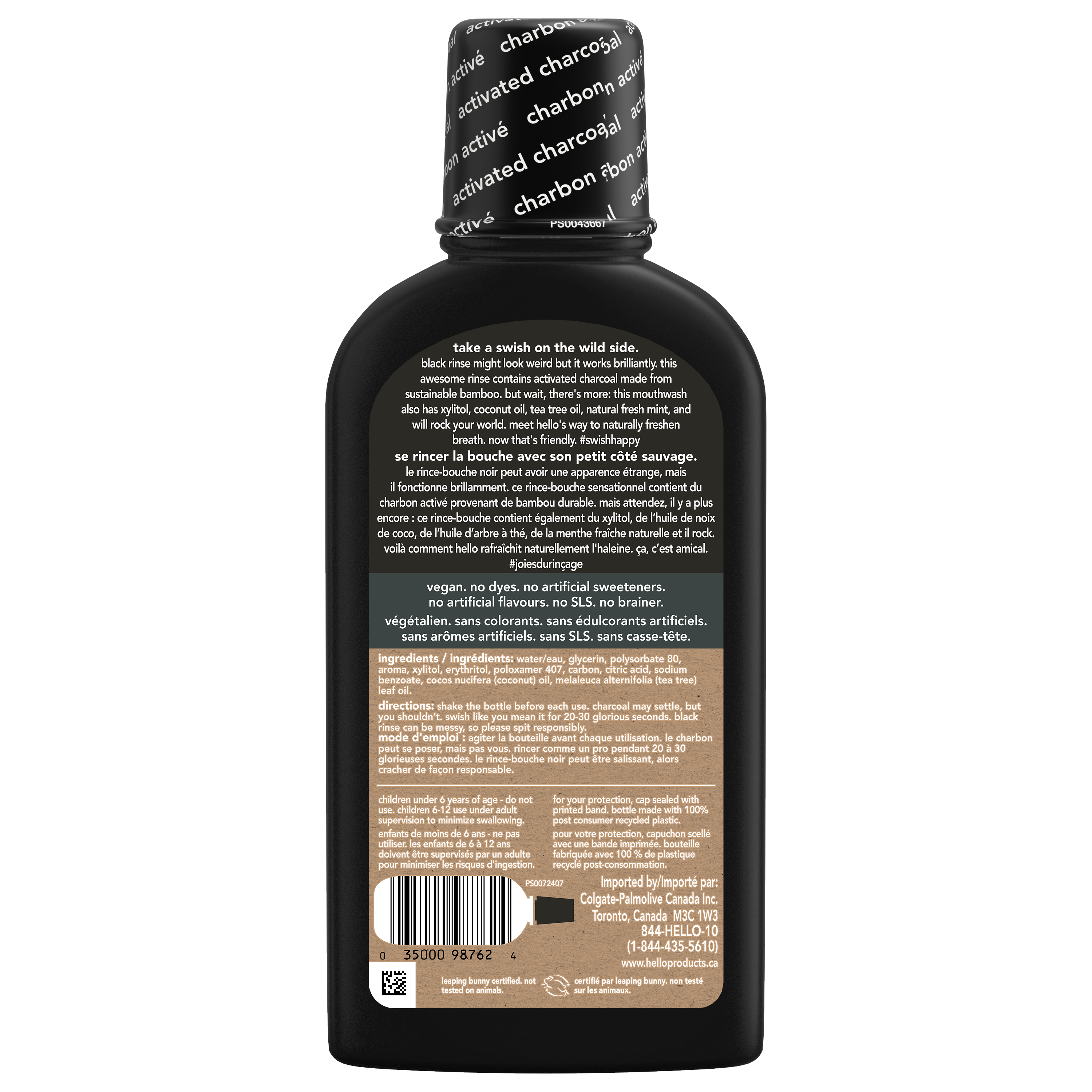Product Title hello Activated Charcoal Mouthwash, Natural Fresh Mint, 16 Fl Oz Bottle SKU 61024046 SKU eCommerce Name hello Activated Charcoal Mouthwash, Natural Fresh Mint, 16 Fl Oz Bottle Consumer Unit - GTIN 00035000987624 Case - GTIN 10035000987621 Product Category Oral Care Product Sub Category Mouthwash Brand hello Product Sub Brand Hello Adult MW Consumer Unit Gross Weight 0.513 KG / 1.131 LB Consumer Unit Net Weight 0.503 KG / 1.109 LB Consumer Unit Length 45.000 MM / 1.772 IN Consumer Unit Width 93.000 MM / 3.661 IN Consumer Unit Height 220.000 MM / 8.661 IN Consumer Unit Volume 0.921 C8 / 0.033 CF Product Title hello Activated Charcoal Mouthwash, Natural Fresh Mint, 16 Fl Oz Bottle Product Description Reinvigorate your senses with the epic freshening power of hello Alcohol Free Activated Charcoal Mouthwash, a minty alcohol free mouthwash* that will rock your taste buds. This thoughtfully crafted non-alcoholic mint mouthwash helps keep your mouth feeling cool, clean, and irresistibly refreshed. hello Activated Charcoal Mouthwash is a fresh breath mouthwash that delivers a rush of freshness with every swish. Whether you have a big day ahead of you or just need a little extra zing in your day, hello Activated Charcoal Mouthwash ensures you’re always on top of your game. hello Charcoal Alcohol Free Mouthwash is vegan and made with no artificial flavours or artificial sweeteners, no dyes, no parabens, no gluten, and no SLS, making this hello mouthwash for bad breath a no-brainer. Plus, this non-alcoholic oral rinse is not tested on animals. Get ready to rock your taste buds with extra freshening hello Activated Charcoal Mouthwash. *this formula does not contain ethyl alcohol eCommerce Copy Reinvigorate your senses with the epic freshening power of hello Activated Charcoal Mouthwash, a minty alcohol free mouthwash* that will rock your taste buds. This thoughtfully crafted non-alcoholic mint mouthwash helps keep your mouth feeling cool, clean, and irresistibly refreshed. hello Activated Charcoal Mouthwash is a fresh breath mouthwash that delivers a rush of freshness with every swish. Whether you have a big day ahead of you or just need a little extra zing in your day, hello Activated Charcoal Mouthwash ensures you’re always on top of your game. hello Charcoal No Alcohol Mouthwash is vegan and made with no artificial flavours or artificial sweeteners, no dyes, no parabens, no gluten, and no SLS, making this hello mouthwash for bad breath a no-brainer. Plus, this non-alcoholic oral rinse is not tested on animals. Get ready to rock your taste buds with extra freshening hello Activated Charcoal Mouthwash. *this formula does not contain ethyl alcohol eCommerce Copy- Long Description Reinvigorate your senses with the epic freshening power of hello Activated Charcoal Mouthwash, a minty alcohol free mouthwash* that will rock your taste buds. This thoughtfully crafted non-alcoholic mint mouthwash helps keep your mouth feeling cool, clean, and irresistibly refreshed. hello Activated Charcoal Mouthwash is a fresh breath mouthwash that delivers a rush of freshness with every swish. Whether you have a big day ahead of you or just need a little extra zing in your day, hello Activated Charcoal Mouthwash ensures you’re always on top of your game. hello Charcoal No Alcohol Mouthwash is vegan and made with no artificial flavours or artificial sweeteners, no dyes, no parabens, no gluten, and no SLS, making this hello mouthwash for bad breath a no-brainer. Plus, this non-alcoholic oral rinse is not tested on animals. Get ready to rock your taste buds with extra freshening hello Activated Charcoal Mouthwash. *this formula does not contain ethyl alcohol Bullet 1 Includes one (1) 473 mL bottle of hello Activated Charcoal Mouthwash, Natural Fresh Mint Alcohol Free Mouthwash* Bullet 2 Experience epic minty freshness without the harshness using this alcohol free hello mouthwash Bullet 3 Get ready to rock your taste buds with hello Activated Charcoal Mouthwash, an epic mint mouthwash that reinvigorates the senses Bullet 4 Keep your breath feeling next-level fresh with this minty hello Activated Charcoal Mouthwash Bullet 5 This vegan mouthwash is made with no artificial flavours, sweeteners, parabens, dyes, gluten, or SLS Keywords (eCommerce) activated charcoal, charcoal mouthwash, fresh breath mouthwash, alcohol free mouthwash, mint mouthwash, hello mouthwash, no alcohol mouthwash OS Amazon Product Title hello Alcohol Free Activated Charcoal Mouthwash, Minty No Alcohol Mouthwash, SLS Free, Keeps Mouth Cool and Clean, No Artificial Flavours or Sweeteners, No Dyes, Natural Fresh Mint, 473 mL OS Amazon Product Description Reinvigorate your senses with the epic freshening power of hello Alcohol Free Activated Charcoal Mouthwash, a minty alcohol free mouthwash* that will rock your taste buds. This thoughtfully crafted non-alcoholic mint mouthwash helps keep your mouth feeling cool, clean, and irresistibly refreshed. Hello Activated Charcoal Mouthwash is a fresh breath mouthwash that delivers a rush of freshness with every swish. Whether you have a big day ahead of you or just need a little extra zing in your day, Hello Activated Charcoal Mouthwash ensures you’re always on top of your game. Hello Charcoal Alcohol Free Mouthwash is vegan and made with no artificial flavours or artificial sweeteners, no dyes, no parabens, no gluten, and no SLS, making this hello mouthwash for bad breath a no-brainer. Plus, this non-alcoholic oral rinse is not tested on animals. Get ready to rock your taste buds with extra freshening hello Activated Charcoal Mouthwash. *this formula does not contain ethyl alcohol OS Amazon Bullet 1 WHAT I’M GETTING: One (1) 473 mL bottle of hello Activated Charcoal Mouthwash, Natural Fresh Mint Alcohol Free Mouthwash* OS Amazon Bullet 2 ALCOHOL FREE MOUTHWASH: Experience epic minty freshness without the harshness using this alcohol free hello mouthwash OS Amazon Bullet 3 ROCK YOUR TASTEBUDS: G
